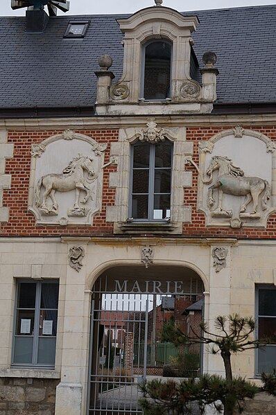 L'hôtel de ville de Crécy-sur-Serre, situé dans la commune éponyme de l'Aisne au nord de Laon, occupe un ancien relais de poste construit au XVIIIe siècle. Le bâtiment, inscrit au titre des monuments historiques en 1928, s'élève sur deux niveaux : le rez-de-chaussée est en pierre blanche et le premier étage en brique. Un porche donne accès à une cour intérieure. Sur la façade, au premier niveau, un cheval sculpté en bas-relief orne chaque côté de la fenêtre centrale.