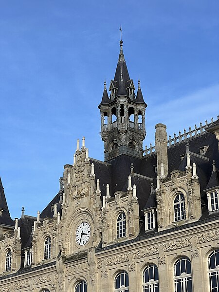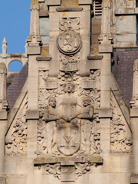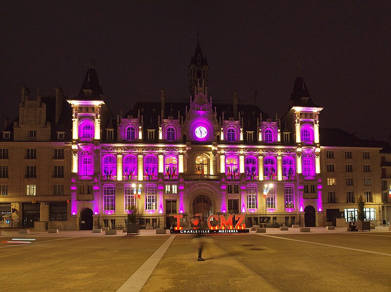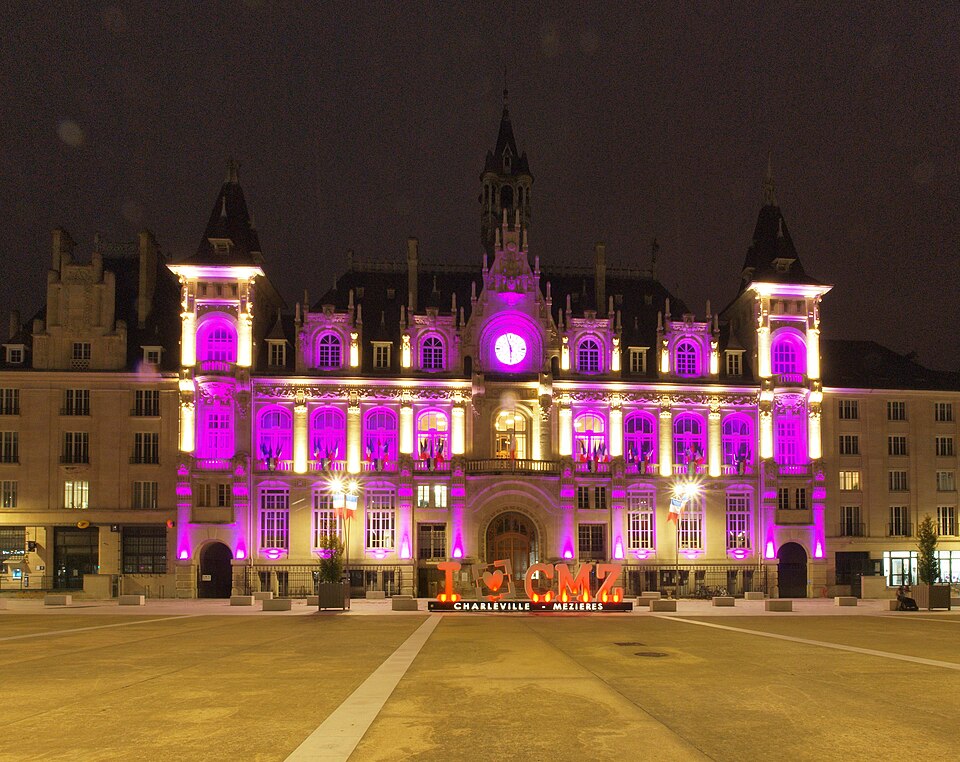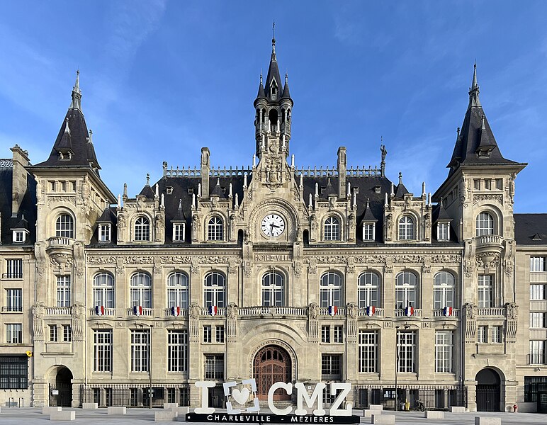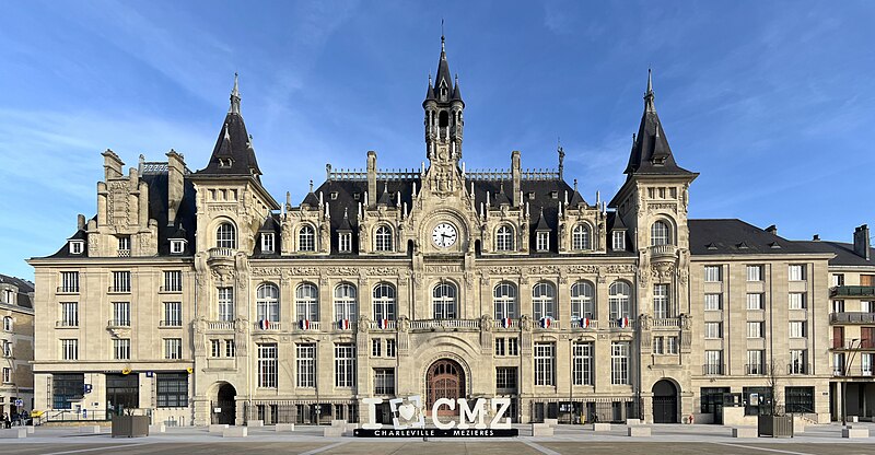 L'hôtel de ville de Mézières, situé place de l'Hôtel de Ville à Charleville-Mézières, est l'ancien hôtel de ville de la commune de Mézières, en vis‑à‑vis de l'hôtel de préfecture des Ardennes. Le bâtiment d'origine remonte au XVIIe siècle, mais la ville ayant été en grande partie rasée par les bombardements de novembre 1918, sa reconstruction fut décidée dès 1923. Les architectes Marie‑Eugène Chifflot et Robert Colle sont à l'origine du nouvel édifice. La date 1930, sculptée sur le fronton qui surmonte l'horloge, marque l'achèvement des travaux de maçonnerie ; l'inauguration a eu lieu le 16 juillet 1933 en présence du président Albert Lebrun et de Sir William Walker, maire de Manchester, qui avait aidé la reconstruction. Par ses hautes lucarnes ouvragées et ses clochetons, la façade renvoie à l'architecture municipale de la fin du Moyen Âge pour souligner l'importance historique de la cité. Elle est dominée par la représentation de la Liberté, de l'Égalité et de la Fraternité et porte les noms et les armes d'autres grandes villes des Ardennes. Le décor comprend une frise sculptée d'animaux sous la corniche, des personnages grotesques sur les lucarnes et, en faîtage, la figure de Bayard rappelant la résistance de Mézières au siège de Charles Quint. Le style néo‑médiéval de la façade contraste avec l'Art déco du vestibule d'entrée et de la grande cage d'escalier. À l'arrière, moins visible, la pierre de taille a été remplacée par la brique. La place qui met en valeur le bâtiment accueille en face une construction de même style décorée d'une sculpture représentant la chasse au sanglier. En 1966, la fusion des communes a fait de l'ancien hôtel de ville de Mézières l'hôtel de ville de Charleville‑Mézières ; son appellation reste historique : il sert aujourd'hui d'annexe à la mairie et rassemble plusieurs services municipaux. La place a été rénovée et modernisée entre 2018 et 2020, et la façade a fait l'objet de travaux achevés en 2021. L'édifice est inscrit au titre des monuments historiques par arrêté du 7 juillet 2022. Il ne doit pas être confondu avec l'hôtel de ville de Charleville situé sur la Place Ducale, où se trouve la mairie actuelle.