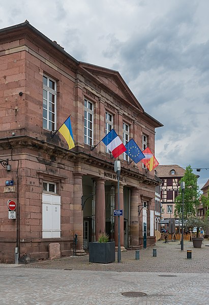 L'hôtel de ville de Sélestat, situé 9 place d'Armes, est un monument historique du Bas-Rhin inscrit en 1937. Il a été construit en 1787–1788 par Gouget, architecte de la ville, pour remplacer l'ancien hôtel de ville détruit en 1779 sur ordre du magistrat en raison de son mauvais état. L'ancien édifice, élevé en 1425–1426, avait été transformé en 1537, puis en 1604 et en 1771. Sur l'emplacement de cet ancien hôtel de ville, des maisons furent bâties avec un important recul de l'alignement. Le nouvel hôtel de ville a été élevé à l'emplacement d'un corps de garde en cours de construction ; ce corps de garde fut agrandi et surélevé, et les travaux furent adjugés à l'entrepreneur Schultz, déjà chargé des travaux du corps de garde. La réception du bâtiment eut lieu le 2 avril 1791. Des documents et images sont disponibles sur Wikimedia Commons ; voir aussi les listes des monuments historiques de Sélestat et du Bas-Rhin.