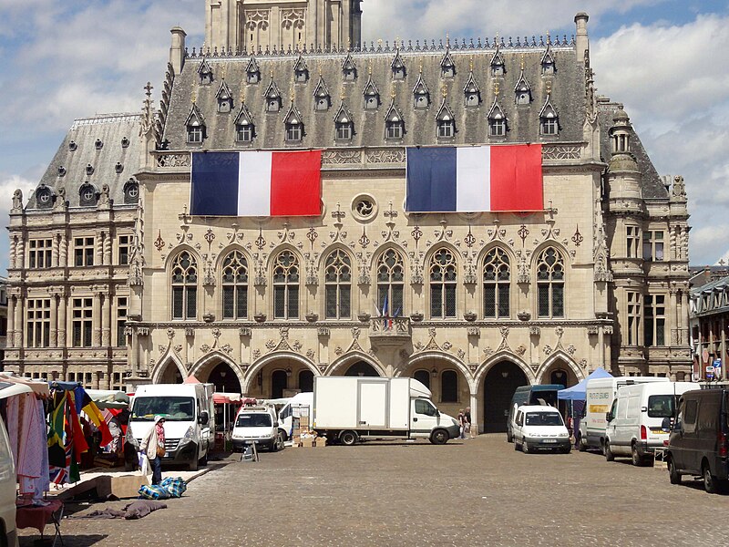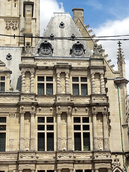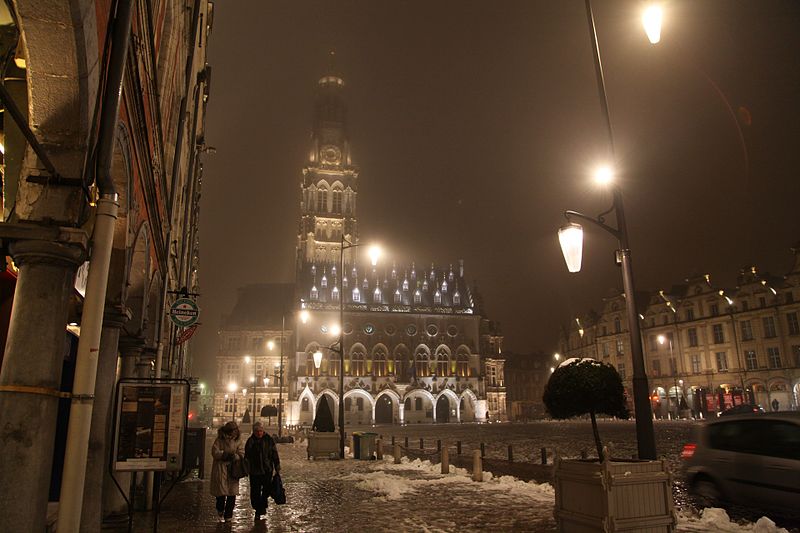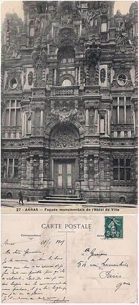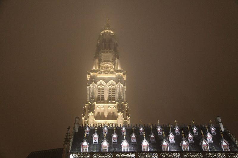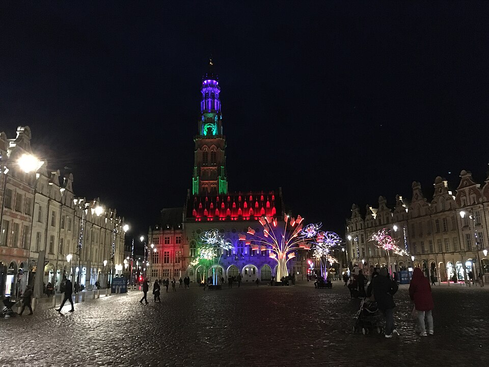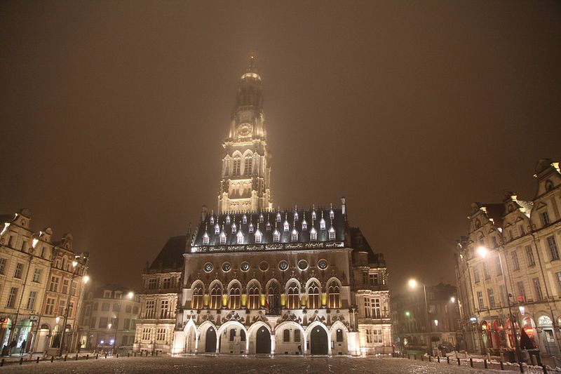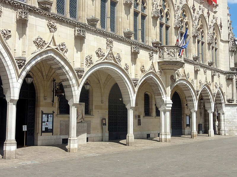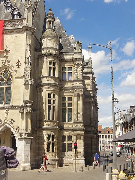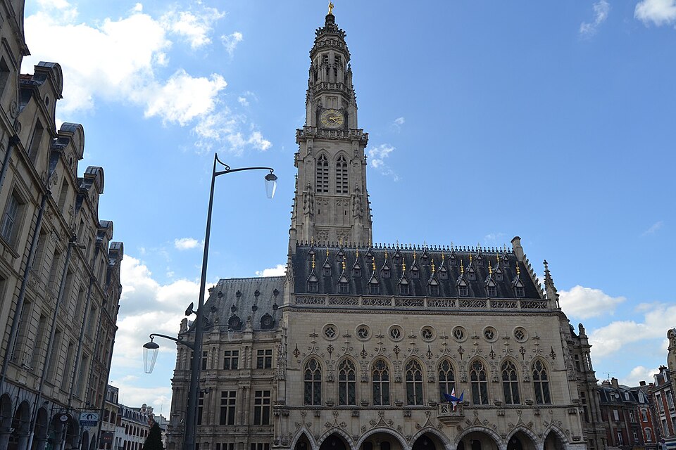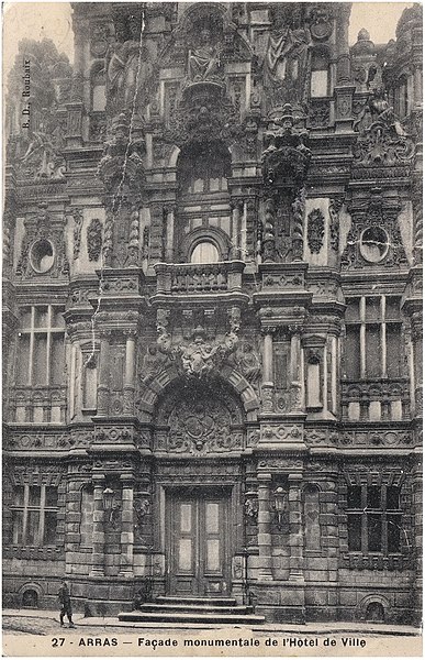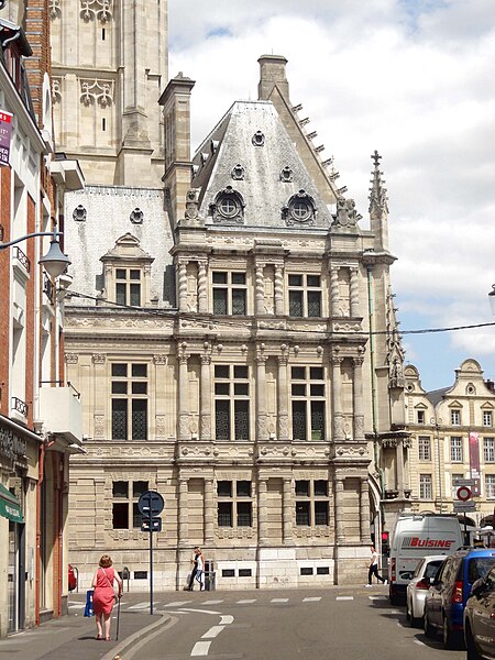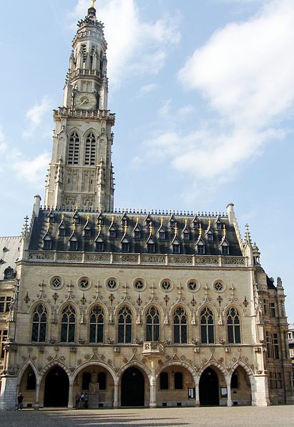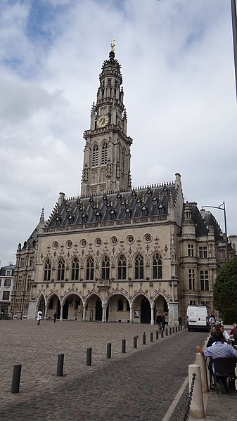 L'hôtel de ville d'Arras, situé place des Héros dans le Pas-de-Calais, est un monument historique adossé au beffroi inscrit au patrimoine mondial de l'Unesco. Sa construction a commencé en 1501 sur la Petite Place, en même temps que le beffroi, après la décision de remplacer l'ancien échevinage en ruine. À l'origine, l'édifice reposait sur deux contreforts et six piliers ouvrant sur sept arcades en arc brisé ; le premier étage présentait sept fenêtres en arc brisé avec archivoltes fleuries sous des œils-de-bœuf. Le toit aigu, couvert d'ardoises, comportait trois rangées de lucarnes ; le style s'inspire de l'hôtel de ville de Saint-Quentin et le maître d'ouvrage en 1513 fut Mahieu Martin. Rapidement insuffisant, l'hôtel de ville fut agrandi perpendiculairement à l'arrière pour ajouter des salles et pièces nécessaires, agrandissement qui déplaça l'entrée du beffroi au premier étage. En 1572, un pavillon de style Renaissance réalisé par l'Artésien Mathias Tesson fut ajouté, donnant sur la place et la rue Vinocq. Restauré et enrichi de décors néo-Renaissance et néo-gothiques, l'hôtel de ville fut inauguré en présence de Napoléon III en 1867. L'édifice fut incendié par l'artillerie allemande pendant la Première Guerre mondiale, brûlé le 7 octobre 1914, puis reconstruit après la guerre de manière fidèle à l'aspect extérieur de la fin du XVIe siècle sous la direction de Pierre Paquet, architecte des monuments historiques chargé de la reconstruction à Arras. L'intérieur reconstruit mêle des éléments néogothiques, néo-Renaissance flamande et art déco, avec des voûtes en croisées d'ogives dans l'entrée, une tapisserie marouflée dans la salle des fêtes, des grilles en fer forgé, un escalier et des bureaux aux étages ; Pierre Seguin fut chargé en 1924 des sculptures de la façade, de la cheminée en pierre et des 132 panneaux sculptés en chêne de la salle des fêtes. Les façades de l'édifice sont classées au titre des monuments historiques par arrêté du 17 juillet 1921. L'hôtel de ville se compose de deux parties : une première halle gothique flamboyant, construite à partir de 1501 et s'élançant vers la place, et des pavillons Renaissance en retrait qui se prolongent vers la place de la Vacquerie. L'intérieur comprend notamment une salle des mariages et une salle des fêtes ornée de fresques et d'une cheminée sculptée. Des souterrains appelés boves, creusés depuis le IXe siècle pour exploiter la craie puis utilisés au XIIe siècle comme espaces de stockage et de liaison entre caves, s'étendent sous la ville et se visitent depuis le sous-sol de l'office de tourisme installé dans l'hôtel de ville. Avant la bataille d'Arras en 1917, des travaux permirent d'y installer 24 000 soldats de l'Empire britannique, et pendant la Seconde Guerre mondiale des habitants s'y réfugièrent lors des bombardements. Les boves sont situées à 12 mètres sous la surface, forment une vingtaine de kilomètres, et y règnent une température d'environ 11 °C avec un taux d'hygrométrie de 80 %. Une scène du film La Liste de mes envies (2014) a été tournée dans le beffroi de l'hôtel de ville. L'hôtel de ville historique ne doit pas être confondu avec la mairie contemporaine, située un peu plus au nord au 6 place Guy-Mollet.