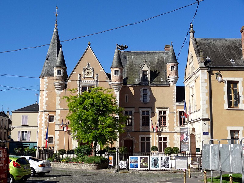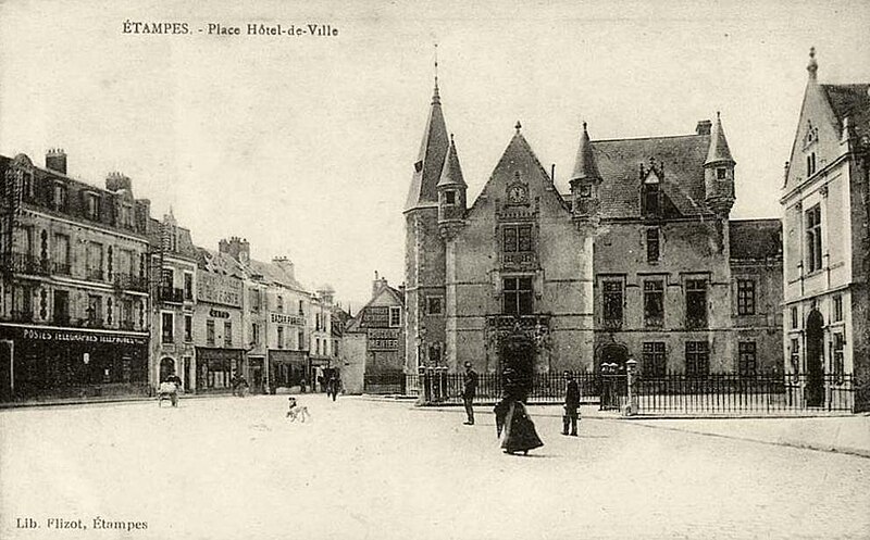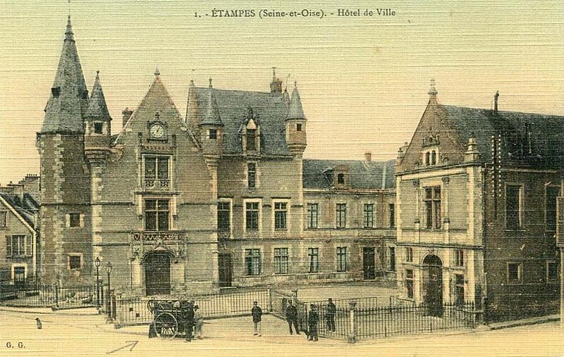 L'hôtel de ville d'Étampes, situé place de l'Hôtel-de-Ville, rue des Marionnettes et au 15 rue Saint-Mars (Essonne), réunit plusieurs maisons anciennes. Ces bâtiments, parmi lesquels la maison de la Treille anciennement dite de Saint-Christophe et une maison dotée d'un grenier à sel et d'un escalier en vis, ont été construits vers 1500 puis acquis par la ville en 1522 et 1538 pour former la maison de ville ; le grenier à sel a été démoli en 1847. Entre 1847 et 1850, des projets de restauration et d'agrandissement ont été menés par Pierre Magne, Auguste Magne et Daniel Ramée ; le projet définitif d'Auguste Magne, avec J. B. Lassus comme architecte-conseil, a été adopté en août 1850. Les travaux ont été exécutés sous la direction de Pierre Magne entre 1851 et 1853, avec une modification du projet en 1852 (date portée : 1851). Le vestibule et son escalier, la bibliothèque, la salle du conseil et le grand salon relèvent du troisième quart du XIXe siècle et présentent d'importants décors intérieurs réalisés sous la direction d'Auguste Magne. Les façades et toitures, y compris celles des ailes du XIXe siècle, ont été inscrites au titre des monuments historiques par arrêté du 30 avril 1982, tandis que le vestibule, l'escalier, la bibliothèque, la salle du conseil et le grand salon ont fait l'objet d'une inscription par arrêté du 9 février 1987. Le remaniement du XIXe siècle est l'œuvre d'Auguste Magne, Daniel Ramée et de l'architecte municipal Pierre Magne.