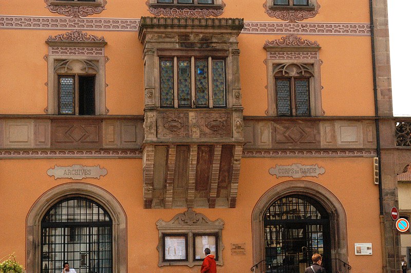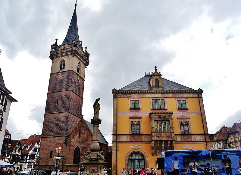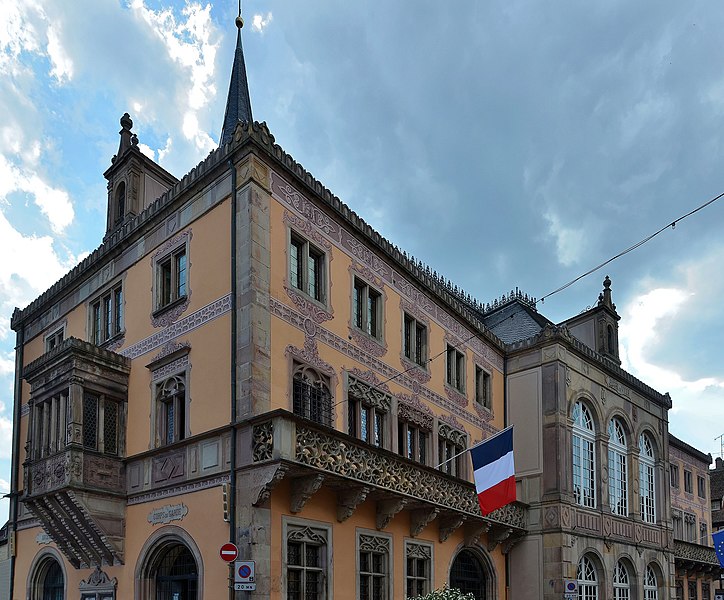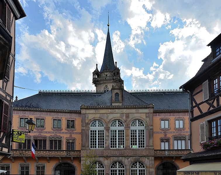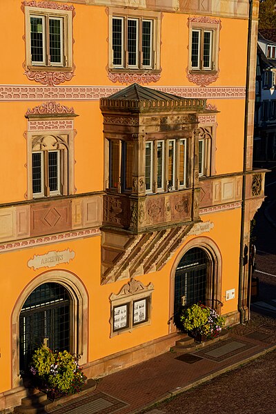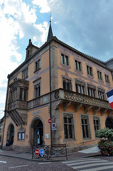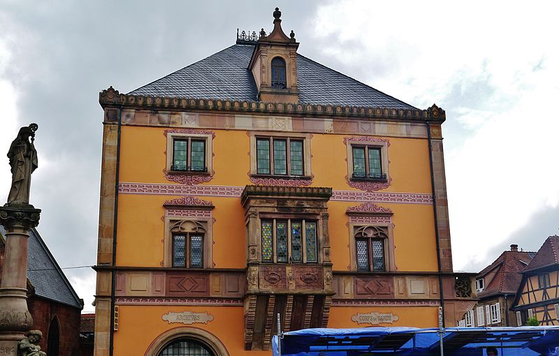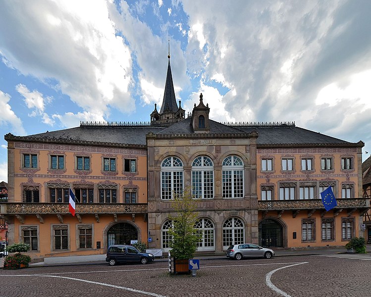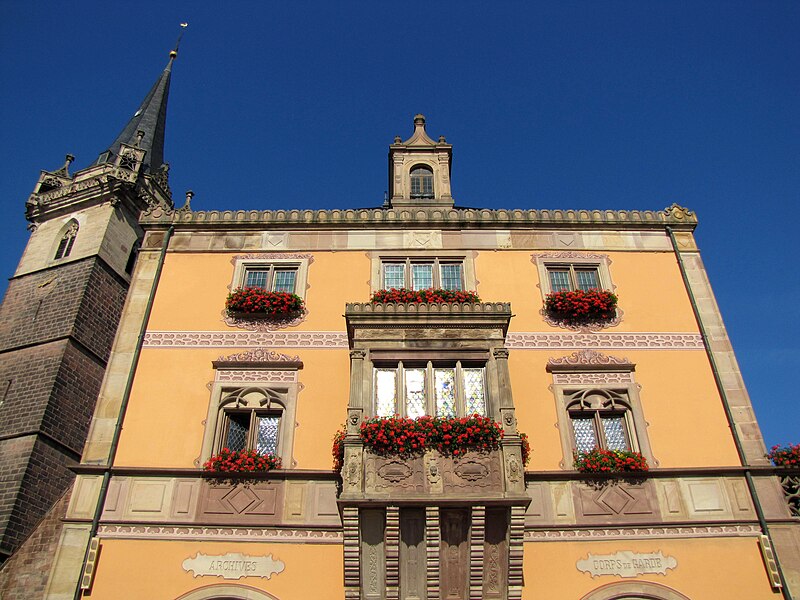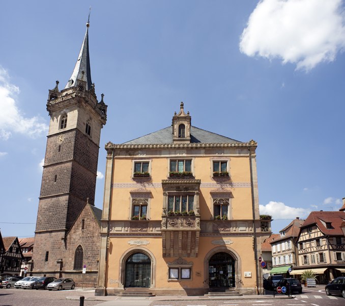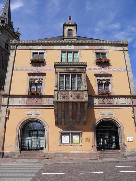 L'hôtel de ville d'Obernai, situé rue du Général‑Gouraud dans le Bas‑Rhin, est classé au titre des monuments historiques depuis 1900. Le site a accueilli dès 1370 une première construction, attestée par une pierre de fondation, puis fait l'objet d'une reconstruction mentionnée dans les comptes communaux de 1462. En 1523, la « chancellerie », correspondant à l'actuelle aile nord‑est, est édifiée par Hans Jungling (date portée sur une fenêtre) ; Martin Kurzel réalise des vitraux pour la salle du conseil, dont le seul vestige subsistant est le vitrail dit de Niedermunster. En 1604, Georg Wildemann ajoute sur la façade nord un balcon avec garde‑corps et consoles sculptées, tandis que Melchior Beutel exécute des peintures extérieures. Entre 1604 et 1610, la salle du conseil est décorée : lambris, portes avec serrures réalisées par Lienhardt Haffner, vitrail par Barthélémy Link et peintures par Miller et Bartenschlager, qui réalisent aussi en 1610 un cadran solaire sur la façade. Des extensions vers la place du marché sont réalisées en 1681 et 1691, mais elles sont détruites en 1847. Des projets de transformation au milieu du XVIIIe siècle restent sans suite; une nouvelle initiative voit le jour en 1839 avec un projet d'Albert Haas, puis en 1844 Antoine Ringeisen propose un projet qui conserve en partie l'édifice ancien. Des travaux sont effectués en 1847 et 1848.