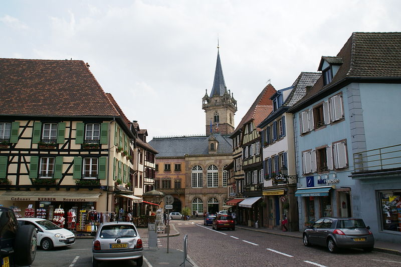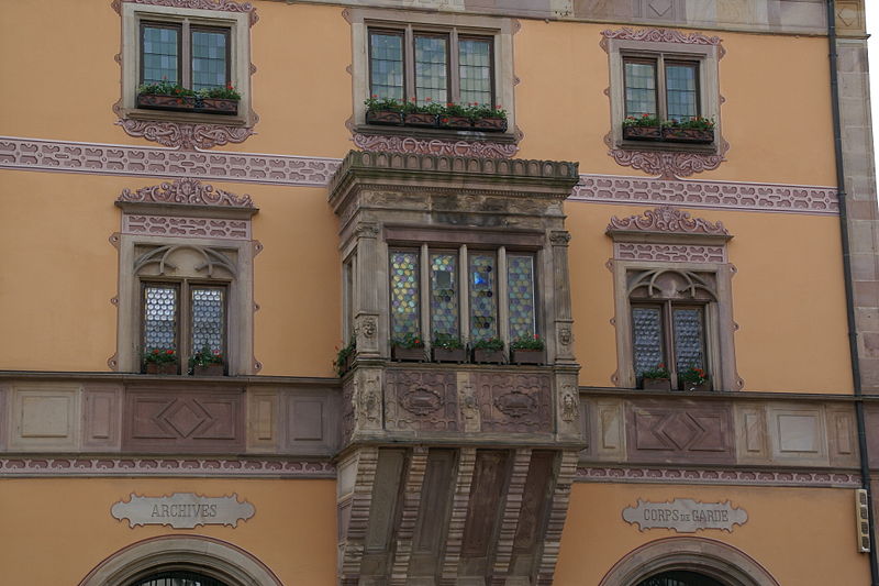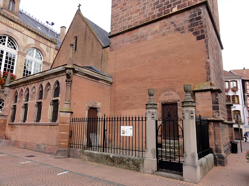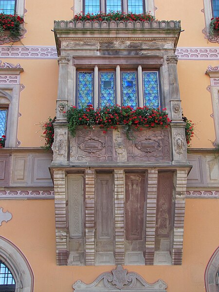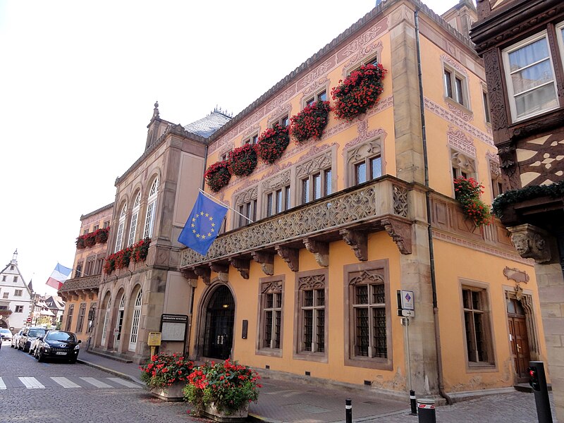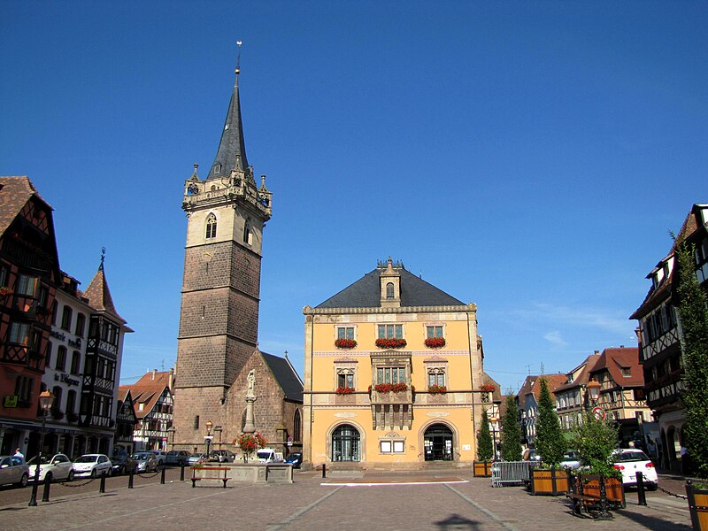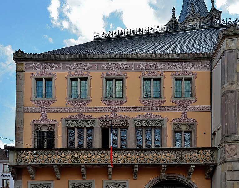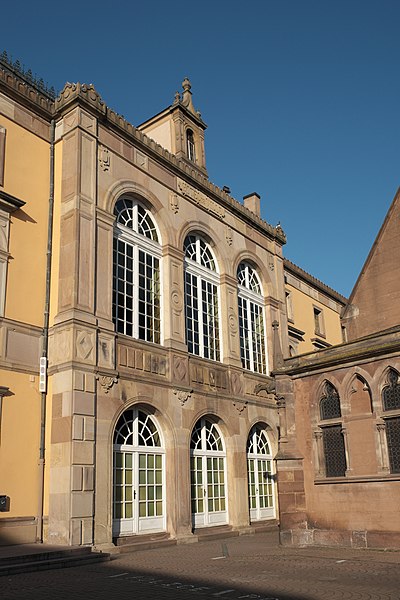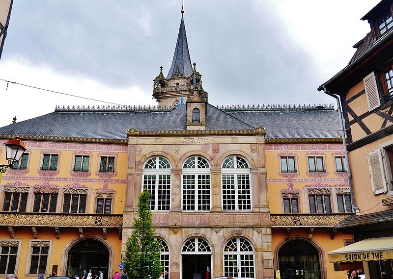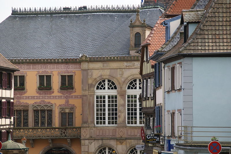 L'hôtel de ville d'Obernai, situé rue du Général‑Gouraud dans le Bas‑Rhin, est classé au titre des monuments historiques depuis 1900. Le site a accueilli dès 1370 une première construction, attestée par une pierre de fondation, puis fait l'objet d'une reconstruction mentionnée dans les comptes communaux de 1462. En 1523, la « chancellerie », correspondant à l'actuelle aile nord‑est, est édifiée par Hans Jungling (date portée sur une fenêtre) ; Martin Kurzel réalise des vitraux pour la salle du conseil, dont le seul vestige subsistant est le vitrail dit de Niedermunster. En 1604, Georg Wildemann ajoute sur la façade nord un balcon avec garde‑corps et consoles sculptées, tandis que Melchior Beutel exécute des peintures extérieures. Entre 1604 et 1610, la salle du conseil est décorée : lambris, portes avec serrures réalisées par Lienhardt Haffner, vitrail par Barthélémy Link et peintures par Miller et Bartenschlager, qui réalisent aussi en 1610 un cadran solaire sur la façade. Des extensions vers la place du marché sont réalisées en 1681 et 1691, mais elles sont détruites en 1847. Des projets de transformation au milieu du XVIIIe siècle restent sans suite; une nouvelle initiative voit le jour en 1839 avec un projet d'Albert Haas, puis en 1844 Antoine Ringeisen propose un projet qui conserve en partie l'édifice ancien. Des travaux sont effectués en 1847 et 1848.