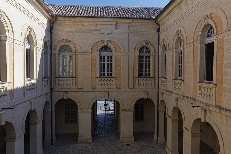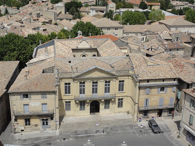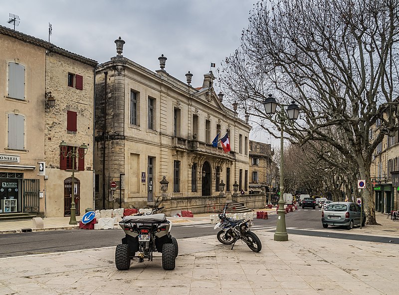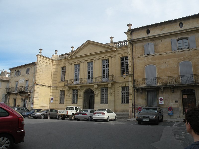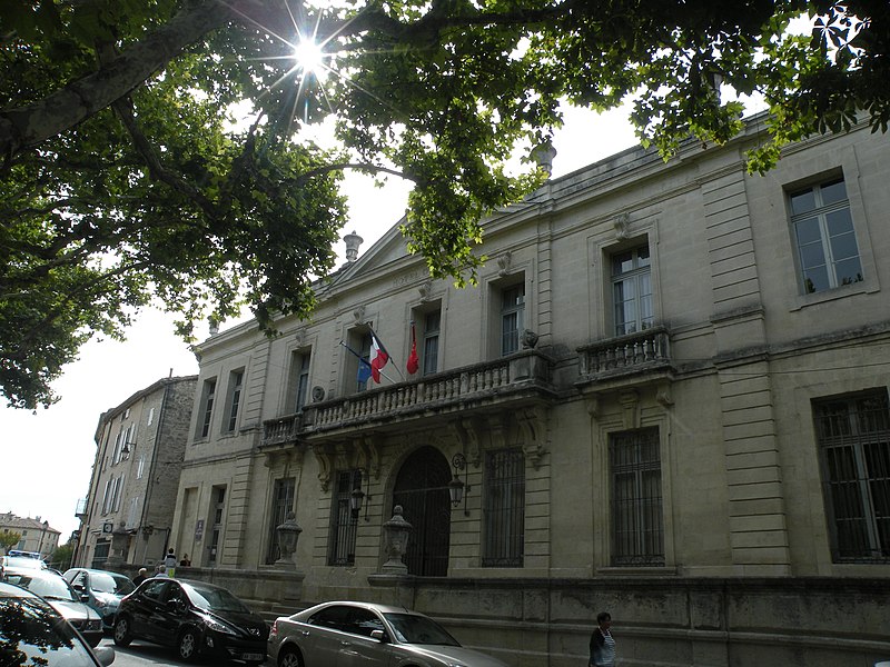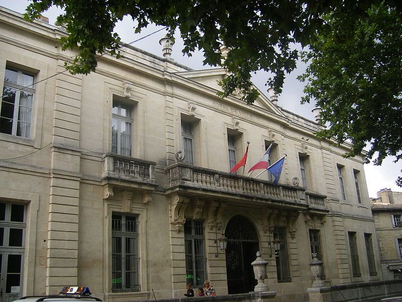 L'hôtel de ville d'Uzès, siège des institutions municipales, se situe rue du Sénéchal, rue du Salin, place du Duché et boulevard Charles-Gide, à Uzès dans le département du Gard (région Languedoc-Roussillon). Le bâtiment primitif, installé de l'autre côté de la ville, fut détruit en 1763 par l'explosion de barils de poudre provoquée par la foudre. L'édifice actuel a été construit d'après les plans de l'architecte Boudon ; pour cela une portion des remparts a été démolie et la façade nord élevée sur leurs fondations. Les travaux, commencés en 1767, se sont achevés en 1773. La façade nord a été reprise à partir du premier étage en 1900 et entièrement transformée. La façade sud présente une partie centrale encadrée par deux ailes disposées en carré et ouvrant sur une cour intérieure. Les fenêtres sont entourées de pilastres ioniques qui portent un entablement surmonté d'un fronton triangulaire dont la base a la largeur des trois fenêtres du motif central. Les ailes latérales encadrent un perron de cinq marches. La cour intérieure est bordée d'une galerie rappelant un cloître, composée de trois arcades à clé de voûte dans la largeur et de cinq dans la longueur. Une seconde galerie parcourait également la cour au premier étage, éclairée par des fenêtres situées au‑dessus des arcades du rez‑de‑chaussée. L'hôtel de ville est inscrit au titre des monuments historiques depuis 1983. Le mobilier comprend sept stèles antiques inscrites au titre d'objets des monuments historiques (inscriptions datées du 4 avril 1939, du 30 septembre 1982 et du 5 novembre 1982).