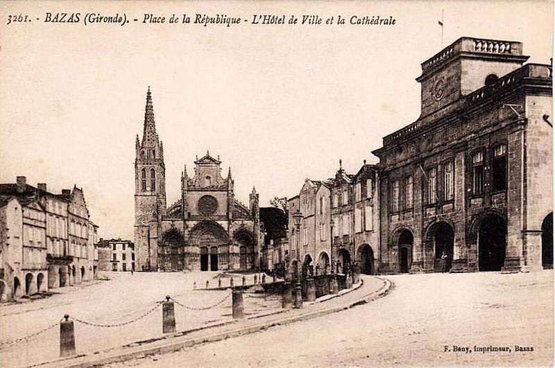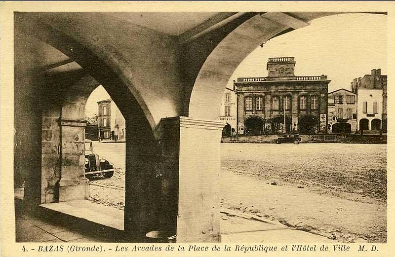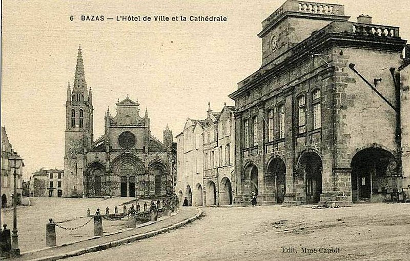 L'hôtel de ville de Bazas est un bâtiment municipal situé au n°2 de la place de la Cathédrale, en centre‑ville de la Gironde. Le premier palais présidial, érigé en 1553, était séparé de la place par une halle. En 1729, un édifice en pierre de taille intégrant cette halle fut construit, jugé « plus convenable pour la commodité du public, celle des officiers et pour la décoration de la ville ». L'établissement est inscrit au titre des monuments historiques par arrêté du 12 avril 1965 pour le sol des portiques, sa façade et ses toitures. Des documents et illustrations complémentaires sont consultables, notamment dans la base Mérimée, sur le site de la commune et sur Wikimedia Commons.
