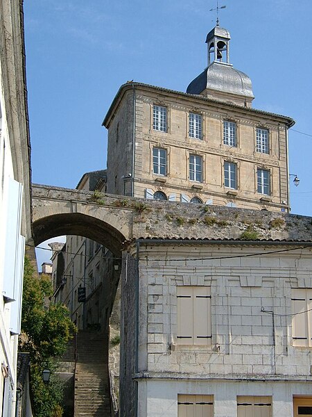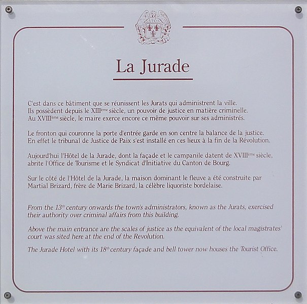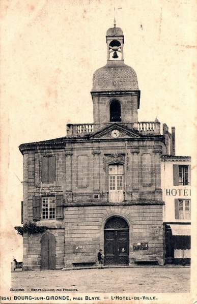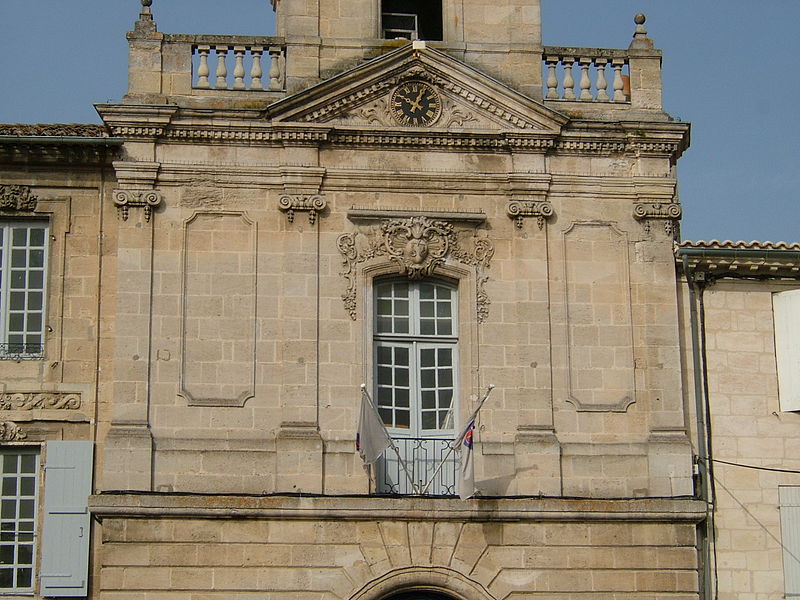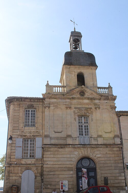 L'hôtel de la Jurade, appelé aussi hôtel de ville, fit l'objet d'une mise en adjudication pour réparations en juin 1749. La menuiserie a été exécutée par Jean Ollivier. En mars 1750, la façade et l'arceau formant pont-douve étaient achevés. La cloche municipale, précédemment celle de l'église Saint-Giron dont le clocher s'était effondré, y fut installée. En avril 1766, une députation des jurats obtint du duc de Richelieu l'autorisation de décorer la salle du conseil avec les armes du roi et celles des Richelieu. La façade, de style classique, est couronnée d'un clocher à pans renflés coiffé d'un clocheton. Au premier étage, l'encadrement est constitué de pilastres dont les chapiteaux sont ornés de guirlandes séparées par des tableaux en relief.