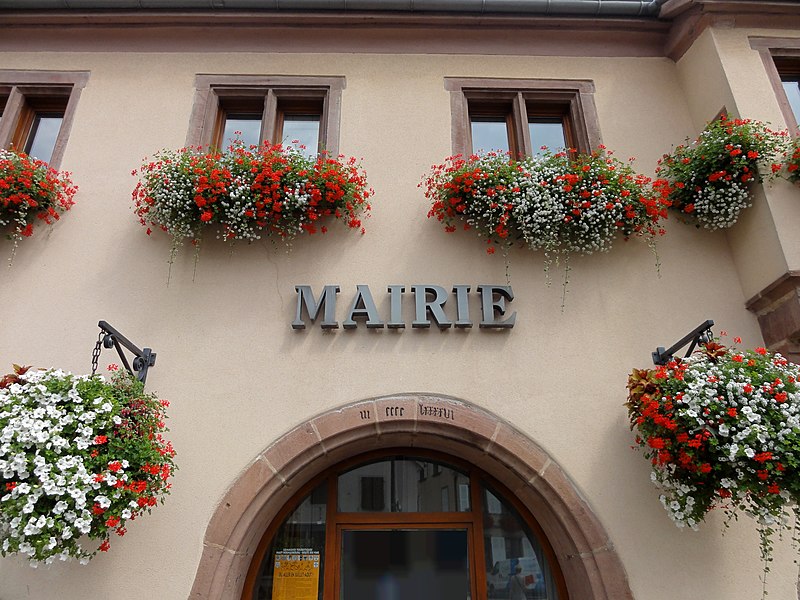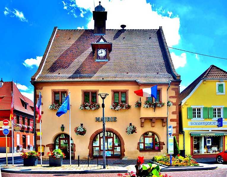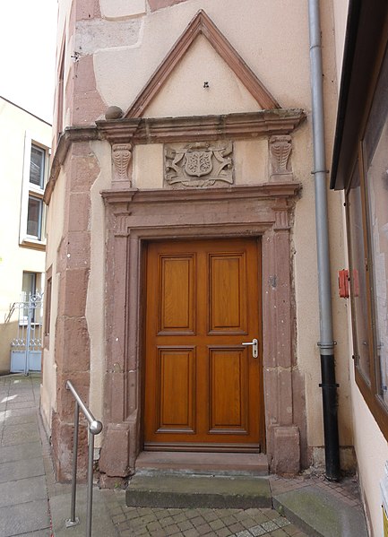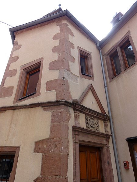 L'hôtel de ville de Châtenois, situé aux 2, rue Clemenceau et 81, rue du Maréchal-Foch (Bas-Rhin), porte la date 1493 sur sa porte principale. D'après A. Ruff, la tourelle d'escalier aurait été élevée en 1575 ; cette datation n'a cependant pas été relevée lors de la campagne d'inventaire, mais le style de la porte de la tourelle y correspond. Sur cette porte figurent les armes de la ville de Châtenois, martelées pendant la Révolution puis resculptées au XXe siècle. La distribution intérieure a été complètement remaniée en 1989. L'édifice fait l'objet d'une inscription au titre des monuments historiques depuis 1989. Référence : Pierre Walter, « Cinq siècles d'histoire : la mairie de Châtenois », Annuaire de la Société des amis de la Bibliothèque de Sélestat, 2007, n° 57, p. 153-154.