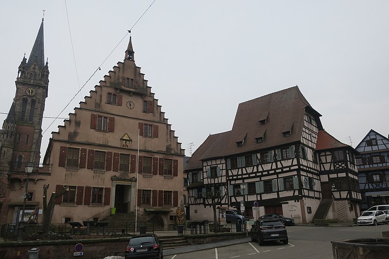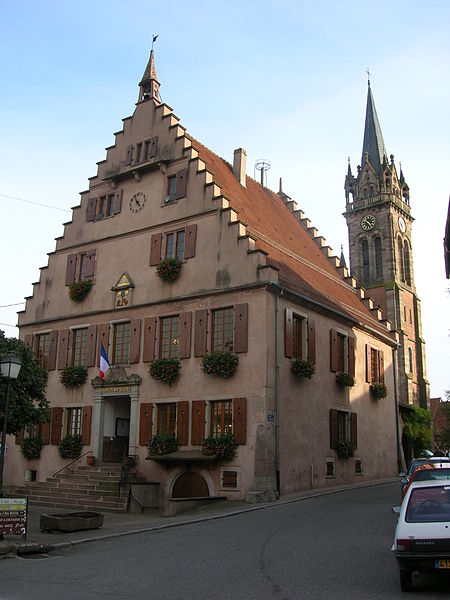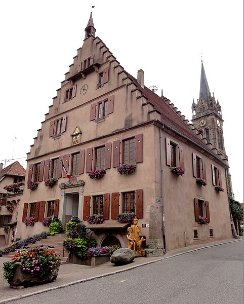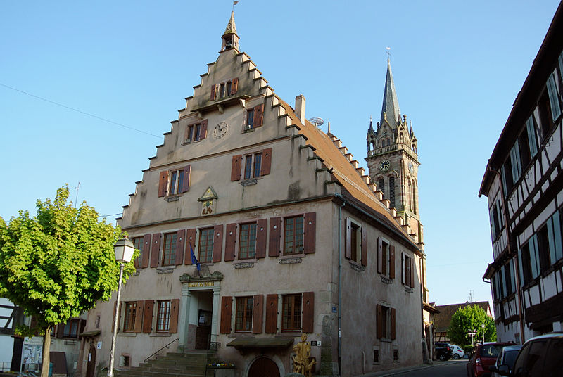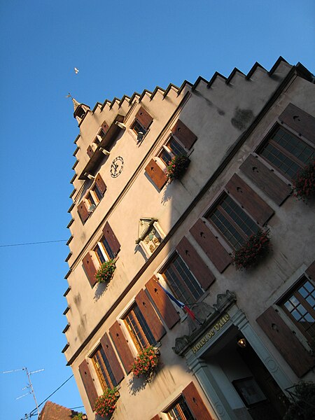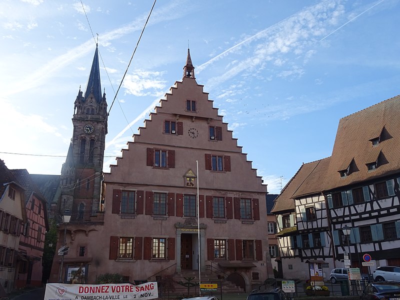 Situé 11, place du Marché à Dambach-la-Ville (Bas-Rhin), l'hôtel de ville actuel est, d'après deux inscriptions, daté de 1547. Il est adossé à une petite tour portant l'inscription de 1537, qui abrita à l'origine la prison municipale. Couvert en terrasse, cette tour était jusqu'au milieu du XIXe siècle couronnée d'un garde-corps gothique et d'une flèche portée par des poteaux. En 1848, l'architecte Antoine Ringeisen transforma la distribution intérieure et créa la porte principale actuelle au nord, précédée d'un perron. L'édifice est inscrit au titre des monuments historiques depuis 1930.