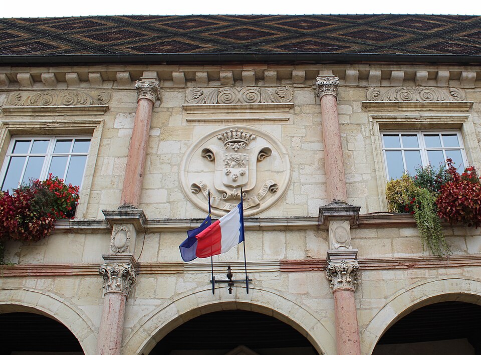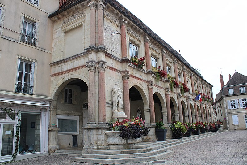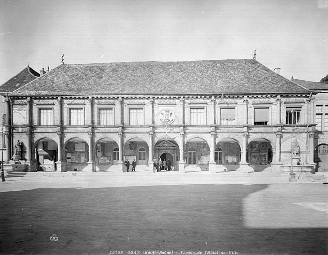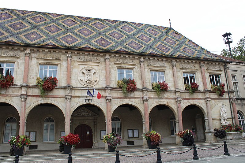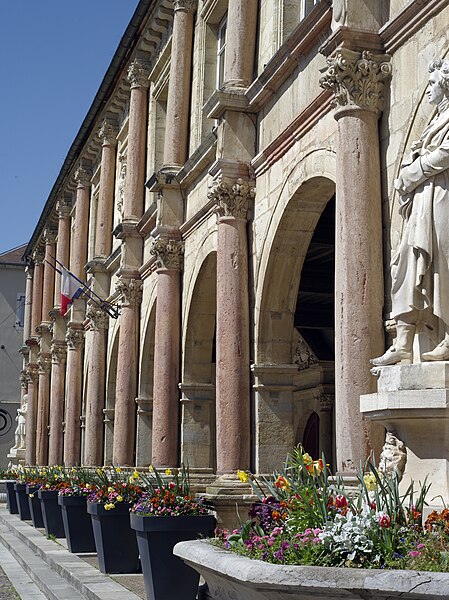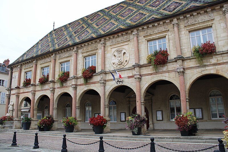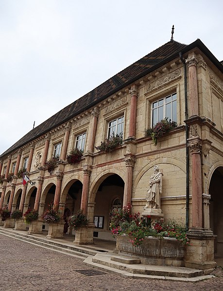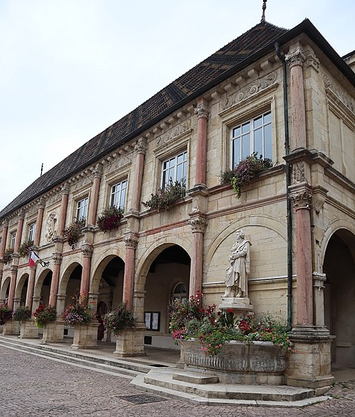 Un des plus prestigieux édifices de la Renaissance en Franche-Comté. En 1532 des terrains sont acquis pour construire un nouvel hôtel de ville. Les travaux débutent en 1567 sous la surveillance de l'architecte bisontin Richard Maire, avec pour maître d'œuvre François Moris, maçon. Les ornements en pierre de la façade sont exécutés par Jean Prévost. En 1571, des gargouilles sont réalisées par le sculpteur Pierre Symonin ; elles ont sans doute disparu en 1708 lors d'une restauration de la façade antérieure. En 1572, Jehan de Castille exécute des verrières et, la même année, l'édifice est béni par l'abbé de Corneux. La porte d'entrée porte la date 1568. Au milieu du XVIIIe siècle, des aménagements intérieurs modestes sont réalisés pour accueillir le présidial, avec des devis de Lerondelle en 1742, de Julien Marcel Vassaux en 1752 et de Jean Querret-du-Bois en 1754. En 1837, des travaux importants d'aménagement intérieur et de consolidation sont menés d'après un devis conjoint de l'architecte Christophe Colard et du peintre Charles Couché, qui dessine notamment les boiseries. Le grand escalier, figurant sur les plans de Lerondelle de 1742 comme un escalier tournant à retours sans jour à deux volées, est transformé à cette occasion en escalier tournant à retours avec jour à trois volées. En 1859, Constant Grandgirard sculpte sur la façade antérieure les armes de la ville en remplacement des anciennes armoiries ; un cadran solaire est vraisemblablement exécuté à la même époque. Entre 1858 et 1859, l'hôtel de ville est étendu pour l'installation d'une bibliothèque, incluant au rez-de-chaussée un local pour les pompes. Une fenêtre du premier étage porte le monogramme AR.