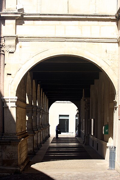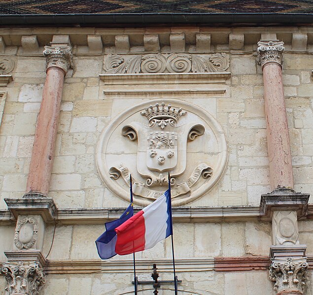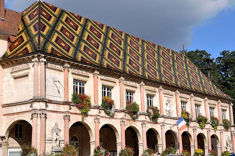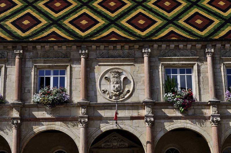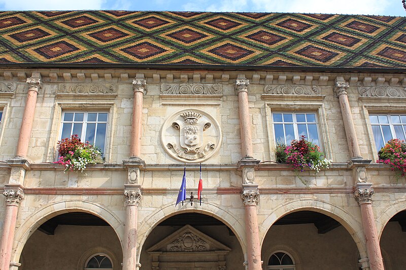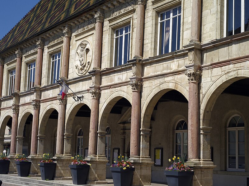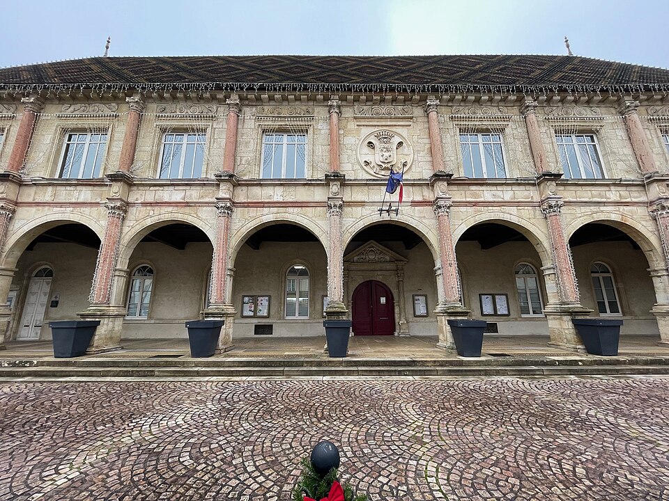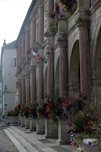 Un des plus prestigieux édifices de la Renaissance en Franche-Comté. En 1532 des terrains sont acquis pour construire un nouvel hôtel de ville. Les travaux débutent en 1567 sous la surveillance de l'architecte bisontin Richard Maire, avec pour maître d'œuvre François Moris, maçon. Les ornements en pierre de la façade sont exécutés par Jean Prévost. En 1571, des gargouilles sont réalisées par le sculpteur Pierre Symonin ; elles ont sans doute disparu en 1708 lors d'une restauration de la façade antérieure. En 1572, Jehan de Castille exécute des verrières et, la même année, l'édifice est béni par l'abbé de Corneux. La porte d'entrée porte la date 1568. Au milieu du XVIIIe siècle, des aménagements intérieurs modestes sont réalisés pour accueillir le présidial, avec des devis de Lerondelle en 1742, de Julien Marcel Vassaux en 1752 et de Jean Querret-du-Bois en 1754. En 1837, des travaux importants d'aménagement intérieur et de consolidation sont menés d'après un devis conjoint de l'architecte Christophe Colard et du peintre Charles Couché, qui dessine notamment les boiseries. Le grand escalier, figurant sur les plans de Lerondelle de 1742 comme un escalier tournant à retours sans jour à deux volées, est transformé à cette occasion en escalier tournant à retours avec jour à trois volées. En 1859, Constant Grandgirard sculpte sur la façade antérieure les armes de la ville en remplacement des anciennes armoiries ; un cadran solaire est vraisemblablement exécuté à la même époque. Entre 1858 et 1859, l'hôtel de ville est étendu pour l'installation d'une bibliothèque, incluant au rez-de-chaussée un local pour les pompes. Une fenêtre du premier étage porte le monogramme AR.