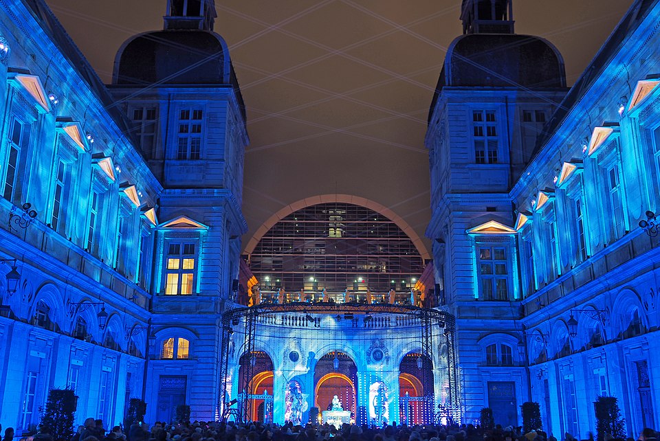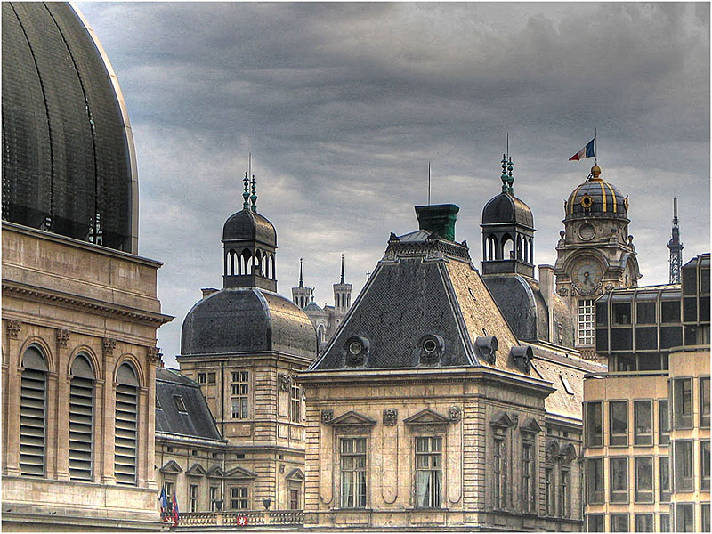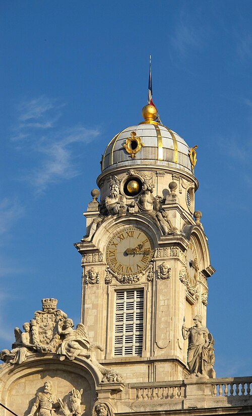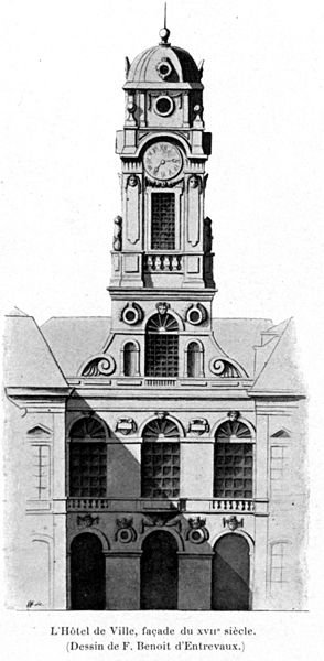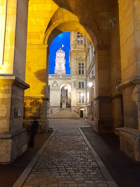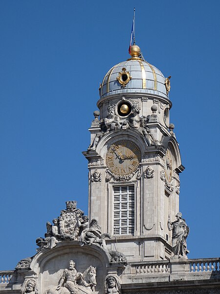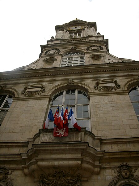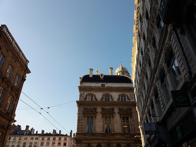 L'hôtel de ville de Lyon, édifice majeur du XVIIe siècle situé au 1 place de la Comédie dans le 1er arrondissement et faisant face à l'Opéra, est classé monument historique depuis le 12 juillet 1886 et accueille aujourd'hui le conseil municipal dix fois par an. Alors que la Presqu'île devient le centre-ville, le Consulat juge l'ancien hôtel de la Couronne trop exigu et vend ce bâtiment pour financer la construction d'un nouvel hôtel de ville. Les plans sont confiés à Simon Maupin en 1646 ; il consulte Jacques Lemercier à Paris et s'appuie sur Girard Desargues, auquel on attribue notamment deux escaliers. La première pierre est posée le 5 septembre 1646 et les travaux, marqués par des difficultés financières et des malfaçons, s'achèvent en 1672 après vingt-six ans de chantier. Thomas Blanchet, arrivé de Rome, est chargé à partir de 1655 des décors intérieurs : il réalise l'escalier d'honneur, le décor de la Grande Salle, le salon de la Conservation et le Salon de la Nomination entre 1661 et 1671. La pierre de construction provient de plusieurs carrières : Villebois, Seyssel, Cleyssy et Saint‑Cyr. Malgré sa splendeur, l'édifice est frappé par un incendie le 13 septembre 1674 qui détruit la Grande Salle et la chapelle et endommage le beffroi, les combles, l'escalier d'honneur, les archives et le Salon Henri IV. Le manque de fonds retarde les réparations ; Thomas Blanchet propose des projets de restauration en 1677, mais les travaux restent insuffisants et ses dessins auraient inspiré des interventions ultérieures de Mansart. Une campagne de restauration est finalement décidée en 1699 et conduite entre 1701 et 1703 selon des projets de Jules Hardouin‑Mansart et de Robert de Cotte pour réparer et moderniser l'édifice. L'hôtel de ville subit d'autres épreuves : bombardements en 1793 pendant la Révolution, un nouvel incendie le 14 juillet 1803 et des restaurations importantes à partir de 1850 sous la direction de Louis Cécile Flacheron, puis Tony Desjardins, ce dernier supervisant la restauration générale de 1854 à 1866 avec la collaboration de sculpteurs tels que Guillaume Bonnet et Joseph‑Hugues Fabisch. L'édifice a également une vie politique intense : pris d'assaut pendant la Commune de Lyon, il voit depuis son balcon la proclamation d'un Comité de salut public, et le 14 septembre 1944 le général de Gaulle y prononce un discours devant la place des Terreaux. L'organisation intérieure présente deux cours successives reliées par une galerie d'entrée et une arcade ; la cour d'honneur abrite un nymphée, une fontaine d'Amphitrite par Charles‑François Bailly et plusieurs statues du XIXe siècle — Neptune, Galatée, Polyphème et une Naïade — réalisées par divers artistes et remplacées au XIXe siècle par des exemplaires en pierre de Tarascon inspirés des originaux. L'escalier d'honneur, décoré par Thomas Blanchet entre 1658 et 1667, est remarquable par une iconographie évoquant le grand incendie de Lugdunum sous Néron, tandis que l'escalier ovale à puits central dit des Archives est attribué à Girard Desargues. Au premier étage, le bureau du maire, situé sur la façade est, est habillé de soieries, boiseries et emblèmes et orné de peintures de Louis Janmot et Joanny Domer ; la salle des anciennes archives, seule salle voûtée du premier étage, possède une cheminée monumentale de Nicolas Lefebvre datant de 1652 et des lustres hollandais. Le Salon de la Conservation porte un plafond peint par Blanchet en 1669 dont le médaillon central représente La chute des Vices, entouré de quatre médaillons consacrés à la Distinction du Bien et du Mal, la Sincérité, la Sagesse et le Génie de Lyon, rappelant la fonction juridictionnelle que tenait alors l'Hôtel de Ville pour les litiges du négoce. Le Salon du Consulat et le Salon Henri‑IV, salles de nomination et d'administration consulaire, témoignent du rôle des consuls ; la Grande Salle des fêtes, desservie par l'escalier d'honneur et longue de vingt‑six mètres sur douze mètres cinquante, a perdu ses décors d'origine lors de l'incendie de 1674 ; son modello de plafond est conservé au Musée des Beaux‑Arts de Lyon et les dessins des décors muraux au Nationalmuseum de Stockholm. Les salons dits « rouges » et la salle des armoiries conservent des éléments illustrant l'histoire du commerce lyonnais, notamment des médaillons sur la production de la soie et des armoiries remplaçant les portraits d'échevins détruits par l'incendie. Le beffroi, doté d'une horloge lunaire, abrite un carillon important : inauguré en 1919 par Édouard Herriot avec vingt‑neuf cloches, il compte depuis l'an 2000 soixante‑cinq cloches ; plusieurs cloches anciennes subsistent et le carillon est l'un des plus notables de France. L'hôtel de ville a inspiré et figuré dans des œuvres visuelles et cinématographiques ; il est accessible par la station de métro Hôtel de Ville - Louis Pradel.