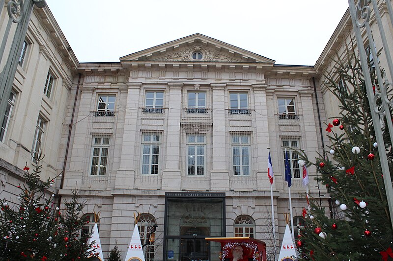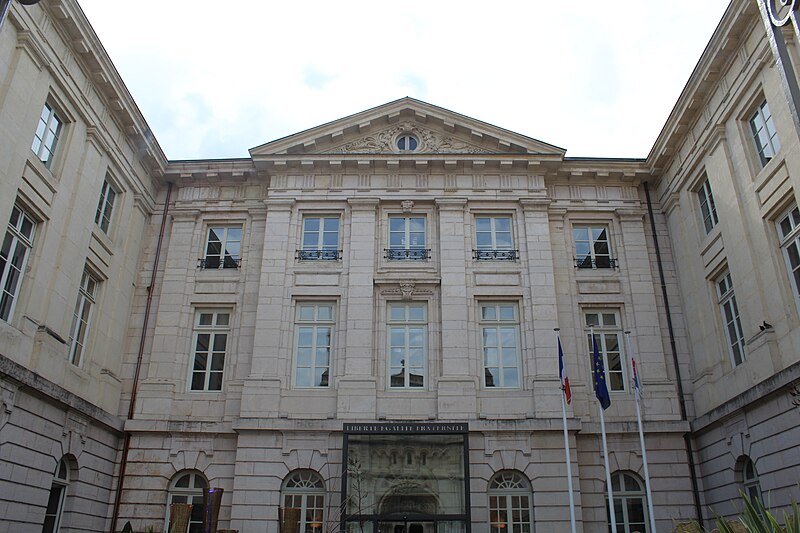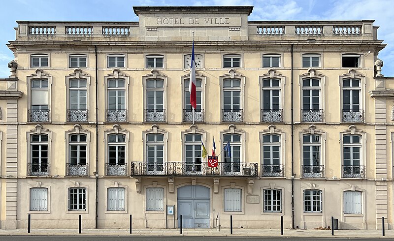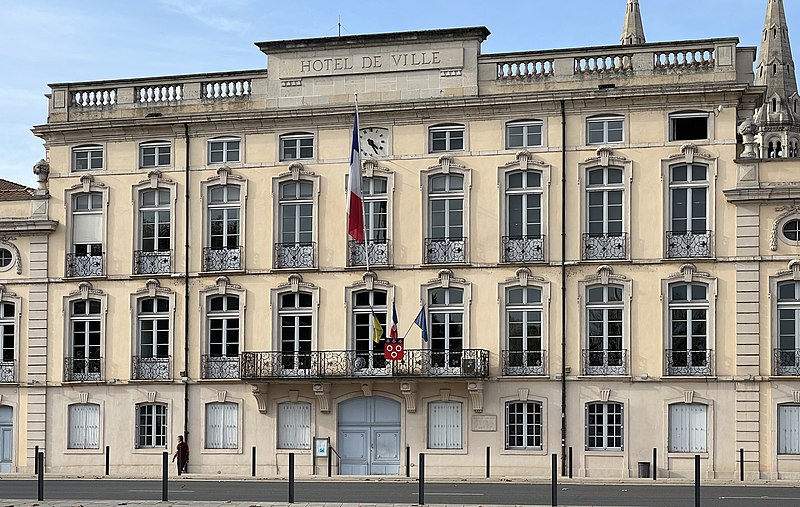 L'hôtel de ville de Mâcon, aussi appelé hôtel Montrevel, est un ancien hôtel particulier situé à Mâcon, en Saône‑et‑Loire, dans la région Bourgogne‑Franche‑Comté. Construit entre 1746 et 1751 par Abel‑Michel Chesnard de Layé, chevalier et baron, il fut transmis en 1753 à son fils Pierre‑Anne Chesnard de Layé, titulaire de plusieurs charges dont lieutenant général du bailliage de Mâcon (1746), conseiller au Parlement (1748) et président à mortier au parlement de Bourgogne (1751). Le 13 novembre 1767, Florent‑Alexandre‑Melchior de La Baume, dernier comte de Montrevel, l'acquit pour 75 000 livres et fit ajouter deux ailes, aménageant notamment la grande salle de la Comédie, aujourd'hui salle du conseil municipal, organisée avec un parterre, un orchestre, une scène et deux séries de loges. Par acte du 8 mars 1793, la ville de Mâcon l'acheta pour 162 500 livres et y installa son hôtel de ville. En 1880, le maire François Martin fit construire, du côté de la rue Carnot, deux autres ailes en retour qui encadrent une cour ouverte sur la place Saint‑Pierre. L'édifice a été inscrit au titre des monuments historiques le 29 décembre 1941. Il conserve de nombreux éléments d'origine : les boiseries du salon des mariages, des portraits en médaillons des grands philosophes de l'Antiquité dans l'ancienne bibliothèque, et une belle montée d'escaliers avec sa rampe en fer forgé donnant sur le hall d'entrée. Une notice consacrée à l'hôtel de ville figure dans la collection Les monuments de Mâcon publiée par le musée municipal des Ursulines, signée Jean‑François Garmier (1990).