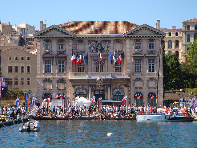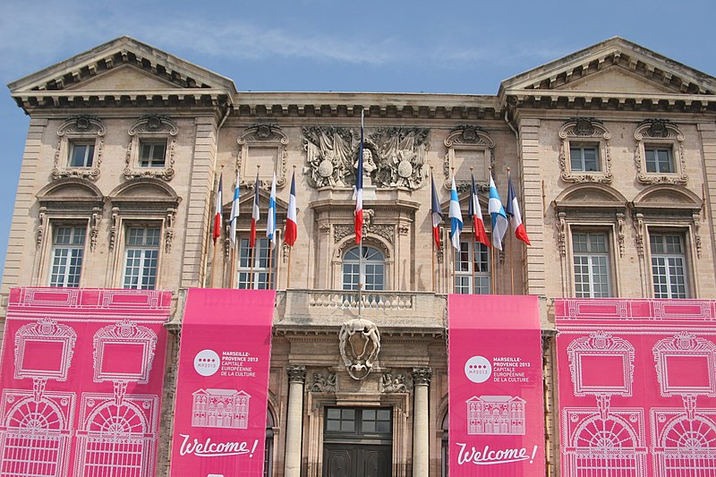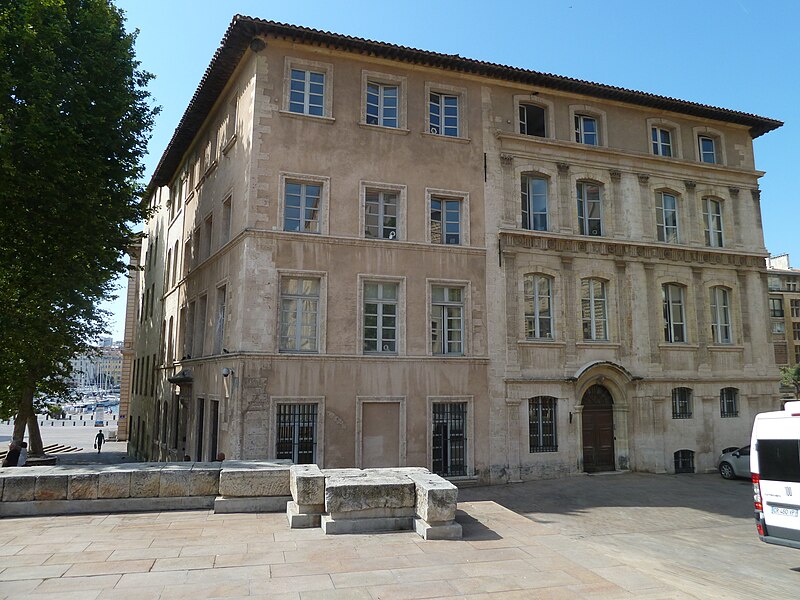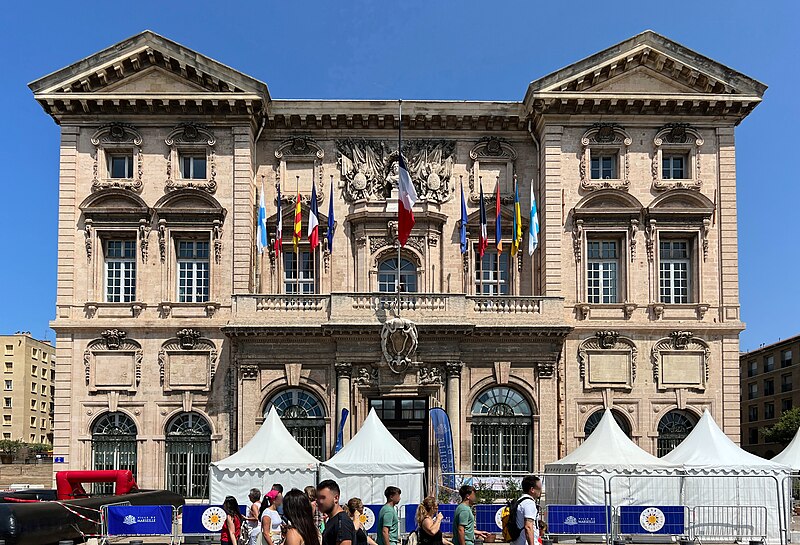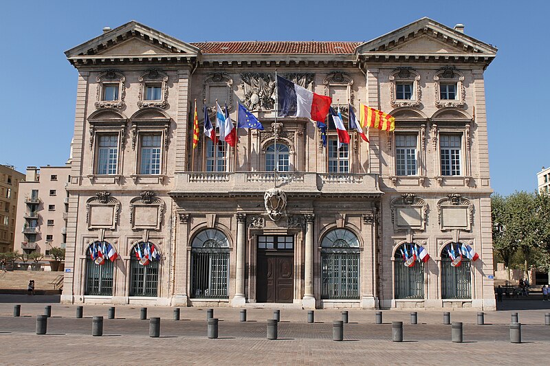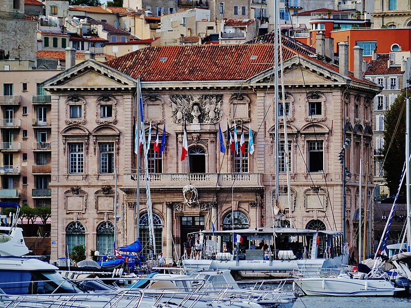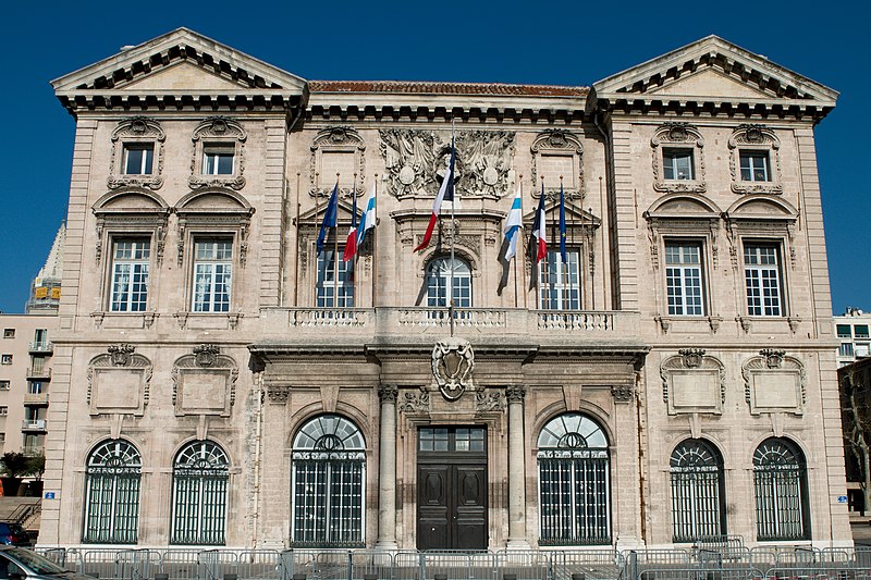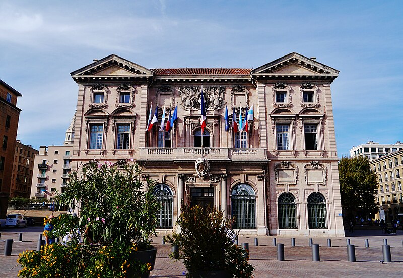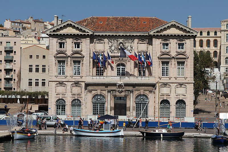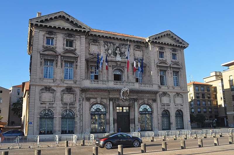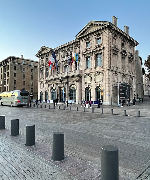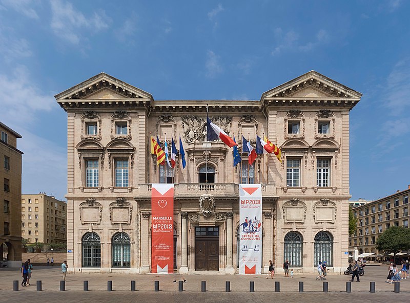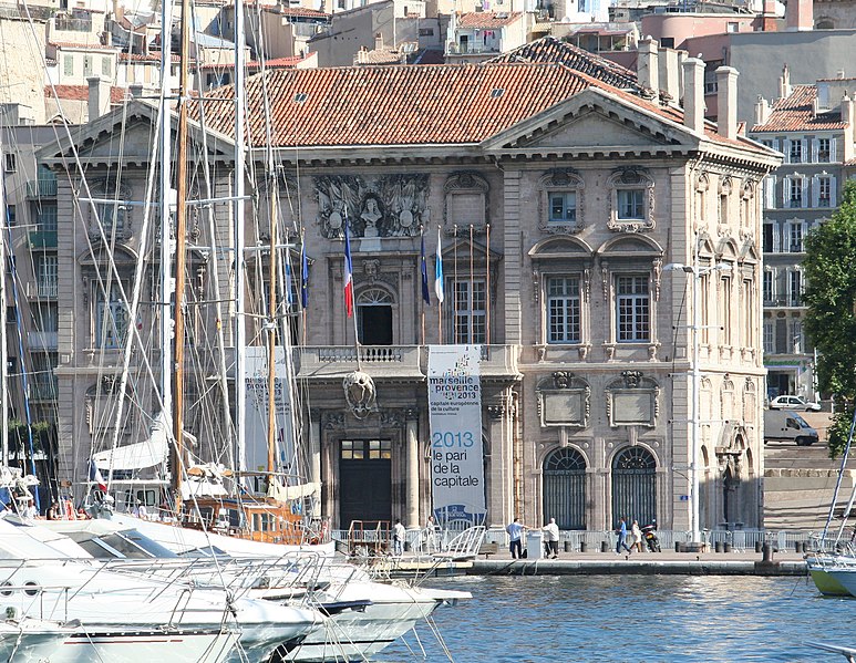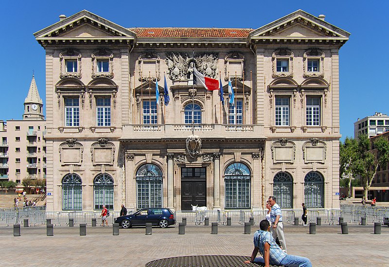 L'hôtel de ville de Marseille, situé quai du Port dans le 2e arrondissement, est un immeuble du XVIIe siècle qui abrite le bureau du maire. Il présente une particularité rare : l'accès du rez-de-chaussée au premier étage ne se fait pas depuis le bâtiment principal mais par l'immeuble situé derrière, les deux constructions étant à l'origine reliées par un pont suspendu couvert en bois. Cette organisation résultait de la réserve du rez-de-chaussée à la « loge » des marchands, comme l'évoque la rue de la Loge qui sépare les deux bâtiments. Le pont en bois a été remplacé par une galerie en pierre conçue par Esprit-Joseph Brun, réalisée entre 1782 et 1786. L'attribution des plans a fait l'objet de controverses : Pierre Puget n'aurait, selon plusieurs sources, sculpté que l'écusson aux armes de France, tandis qu'un architecte italien anonyme est parfois cité pour l'inspiration générale. Les sculptures de la façade sont l'œuvre notamment de François et Mathieu Pourtal, Martinet, Levaquery et Martin Grosfils ; l'écusson original exécuté par Pierre Puget se trouve aujourd'hui au musée des Beaux-Arts, remplacé sur la façade par une copie réalisée par Stanislas Clastrier.