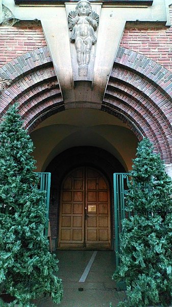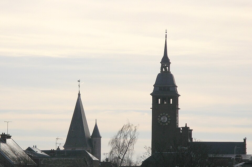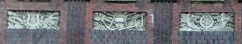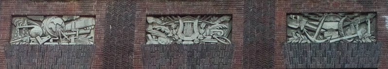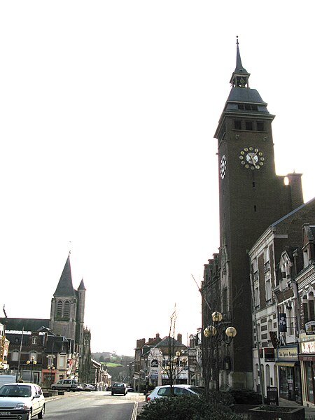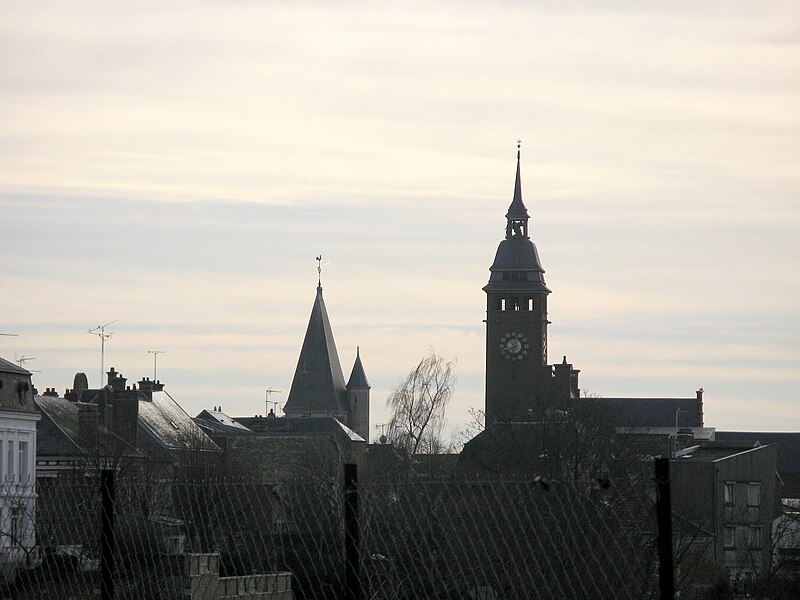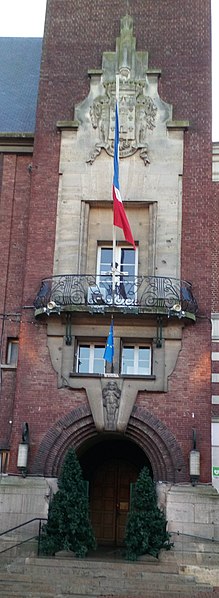 De style Art déco marqué par le néo-régionalisme flamand, l'édifice est construit en brique et orné de pignons à redents et de dessins réalisés en briques surcuites. La construction, conduite par les architectes Charles Duval et Emmanuel Gonse, s'est déroulée de 1927 à 1930 et repose sur des fondations atteignant dix-huit mètres de profondeur. La façade comporte quatre travées surmontées de lucarnes et quatre frises en ciment moulé dues à Raymond Couvègnes, qui représentent les sciences, les arts, l'industrie et le commerce. Au-dessus des fenêtres en plein cintre du rez-de-chaussée figurent des divinités symbolisant la richesse du Santerre, et les armoiries de la ville accompagnées de la devise latine "Urbs cultissima" surplombent la porte d'entrée. Le beffroi culmine à 48 mètres et abrite des jacquemarts.