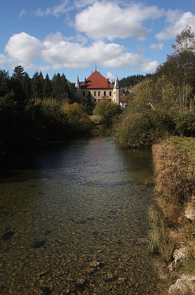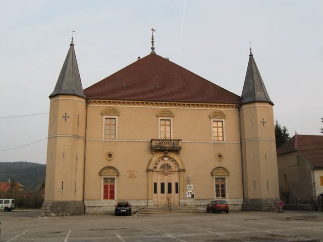 L'hôtel de ville de Mouthe, dans le Doubs, est un édifice protégé au titre des monuments historiques. Il occupe la Grande Rue (D. 437), au cœur du village. Les plans ont été dressés en 1846 par l'architecte bisontin Pierre Marnotte ; les travaux ont été adjugés en 1847, commencés après cette date et achevés après 1850. Le projet initial prévoyait des écoles avec pensionnat, une infirmerie, la mairie et une justice de paix, conformément à la loi de 1833 qui imposait aux communes d'assurer l'enseignement et la justice en plus de l'administration communale. Les façades et les toitures, la cage d'escalier et l'escalier, ainsi que l'ancienne salle de tribunal ont été inscrits aux monuments historiques par arrêté du 21 juin 1990. L'édifice adopte un vocabulaire de la Renaissance plutôt que le néo-classicisme ou le néo-gothique contemporains. Sa silhouette est massive et cubique, surmontée d'une haute toiture pyramidale et cantonnée de quatre tourelles coiffées de toits en poivrière. L'entrée est en plein cintre et la façade ouvre sur un balcon à balustres. L'escalier principal, inscrit dans un vaste volume, dessert l'ensemble des salles de l'étage.