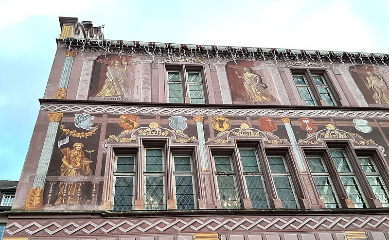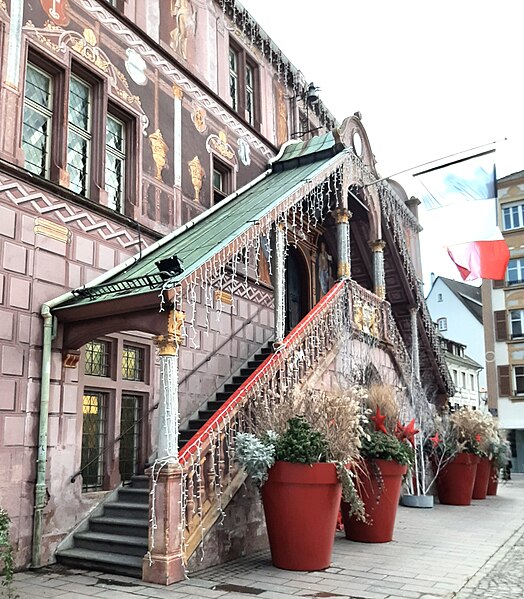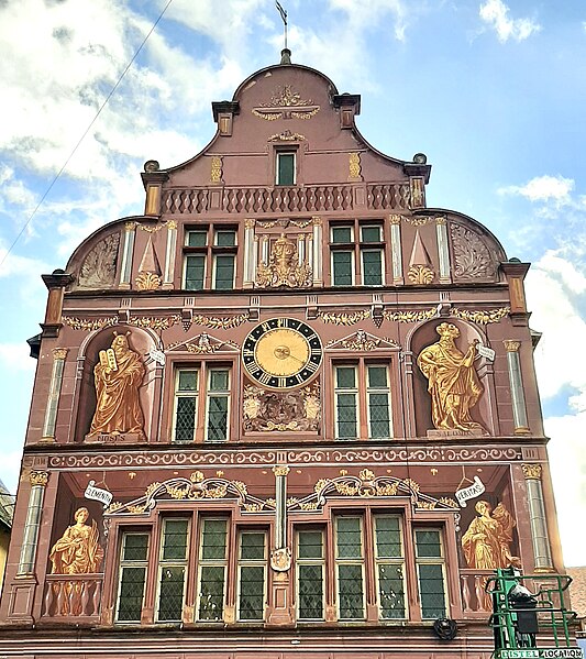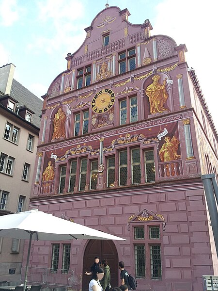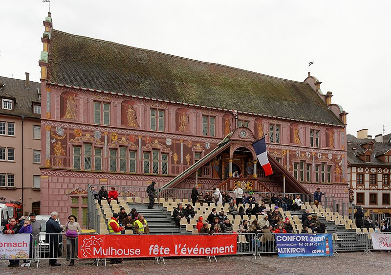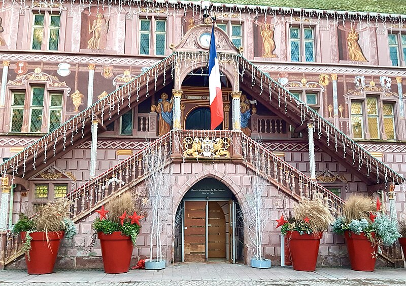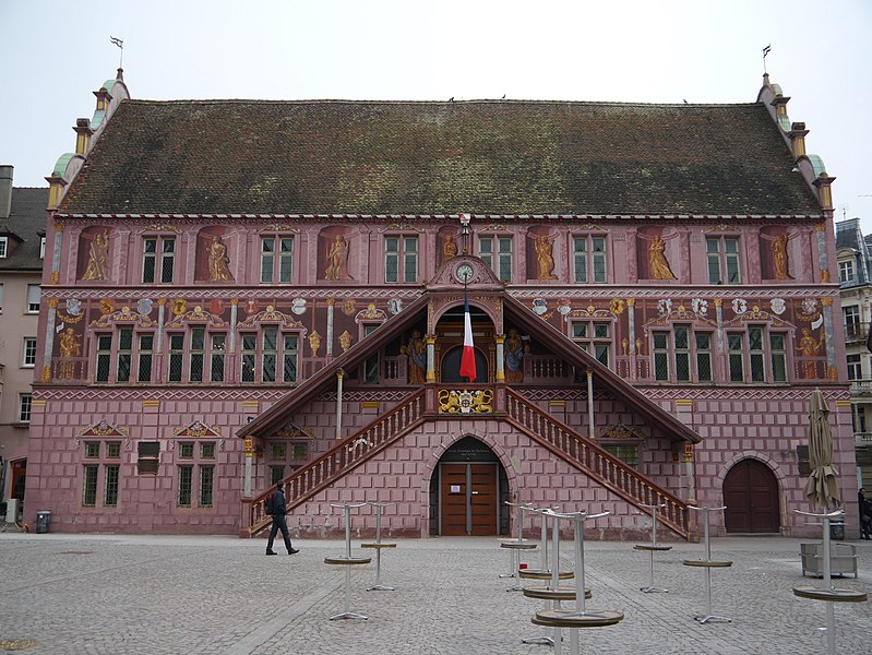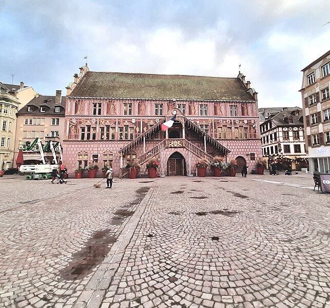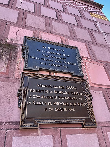 L'ancien hôtel de ville de Mulhouse, dit Rothüss en alsacien, est un bâtiment de style Renaissance situé au n°2 de la place de la Réunion ; il accueille depuis 1969 le musée historique et conserve la salle du Grand Conseil, encore utilisée pour cérémonies et séances du conseil municipal. Promue ville libre d'Empire en 1308, Mulhouse rejoignit la Décapole en 1354 et forma des alliances avec les treize cantons suisses en 1515, ce qui explique l'importance politique de l'édifice. Un second bâtiment, construit à l'arrière en 1510, abritait la cave dîmière, les archives et les bureaux du greffier syndic. Le premier hôtel de ville fut détruit par un incendie en 1551 et reconstruit sur ses fondations en 1552 sous la direction du tailleur de pierre bâlois Michel Lynthumer. Les pignons à volutes et l'escalier d'honneur couvert à double volée, orné d'un clocheton, témoignent du style de la Renaissance rhénane ; Christophe Bock peignit alors la façade en rouge et or. Montaigne, de passage en 1580, décrit l'édifice comme un "palais magnifique et tout dor". À l'arrière, une galerie de liaison fut construite en 1637 et surélevée en 1778, période durant laquelle un second étage fut ajouté et les décors retouchés par Théodore-André Genderich. En 1698, Jean Gabriel réalisa des décors en trompe-l'œil inspirés de gravures d'allégories. Plusieurs campagnes de restauration ont suivi au XIXe et au XXe siècle : Lachaise et Holfeld en 1846, Ferdinand Wagner en 1903, puis une restauration en 1988 visant à retrouver les teintes d'origine. La cérémonie de la réunion de la République de Mulhouse à la France fut présidée depuis le perron de l'escalier couvert à double volée le 15 mars 1798. Au XIXe siècle, des transformations intérieures furent réalisées, notamment l'escalier reliant le premier et le deuxième étage. Conservant la salle du conseil, les services municipaux quittèrent le bâtiment en 1958. Le rez-de-chaussée abrite la salle de la Décapole ; son accès se fait par une porte située sous l'escalier, aujourd'hui entrée du musée historique. L'escalier donne sur un vestibule au plafond peint de rinceaux et de figures d'empereurs romains ; on y trouve un buffet-dressoir, un lavabo en marqueterie du XVIe siècle et des portraits d'anciens bourgmestres. À gauche du vestibule s'ouvre la salle du Grand Conseil, où siégeaient autrefois les conseillers et les bourgmestres et où siège encore le conseil municipal ; la salle a conservé son plafond à caissons, ses fenêtres à meneaux, ses colonnes sculptées, ses vitraux, ses décors peints représentant les armoiries des cantons suisses et les blasons des bourgmestres, ainsi qu'un coffre-fort encadré de pierre. Le deuxième étage offre une salle au plafond peint de rinceaux qui abrite les collections permanentes du musée historique. Le dernier étage, aménagé sous les combles et anciennement appelé Grenier d'Abondance, accueille les expositions temporaires. Sur la façade droite se trouve une reproduction du Klapperstein ; l'original pèse 12 kg et est conservé au musée. Cette "pierre des bavards" était autrefois utilisée pour punir les personnes médisantes qui devaient traverser la ville avec la pierre pendue au cou en chevauchant un âne ; ce supplice a été pratiqué jusqu'à la réunion à la France, en remplacement symbolique de peines plus sévères naguère appliquées, comme la lapidation ou le pilori. Les décors extérieurs en trompe-l'œil illustrent les vertus prônées par la religion réformée — Justice, Courage, Tempérance, Foi et Charité — ainsi que les armoiries des cantons suisses, et s'inspirent d'une référence culturelle à la Rome antique. L'édifice est inscrit à l'inventaire des monuments historiques depuis le 18 juin 1929 et classé depuis le 21 juillet 1961.