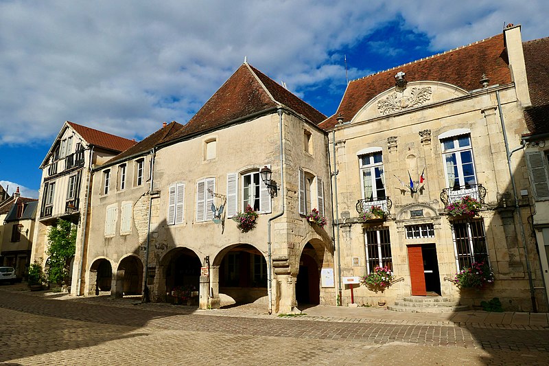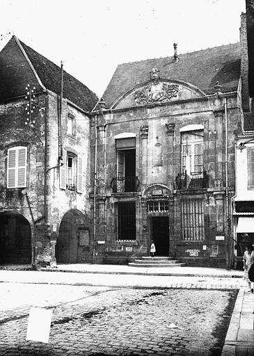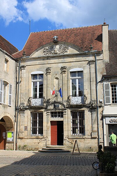 Situé à Noyers-sur-Serein (Yonne), l'hôtel de ville repose sur des fondations qui semblent remonter au XIIe siècle ; selon Marcel Terre, sa construction principale daterait toutefois de la fin du XIIIe siècle. Un incendie, survenu entre 1467 et 1470, détruisit une partie de la ville ; le bâtiment fut alors reconstruit sur les caves et anciennes fondations au troisième quart du XVe siècle et devint le siège de l'ancien bailliage, comme l'atteste la façade postérieure sur cour avec ses moulures croisées au rez-de-chaussée et son pan de bois à l'étage. Les prisons logées dans l'aile nord, côté cour, paraissent appartenir à la même campagne de construction. Une partie de l'édifice, notamment la façade en pierre de taille sur rue, fut reprise à la fin du XVIIe siècle ; avant la Révolution, un buste de Louis XIV daté de 1697 ornait l'entrée. D'autres remaniements ont eu lieu au milieu du XVIIIe siècle : Courtépée signale en 1765 des modifications telles que les grilles de la façade et l'escalier. L'aile sud, affectée aux archives, et le petit corps en retour à l'est, sur cour, sont des constructions en brique de la fin du XIXe siècle ou du début du XXe siècle. L'édifice a été inscrit au titre des monuments historiques en 1926.