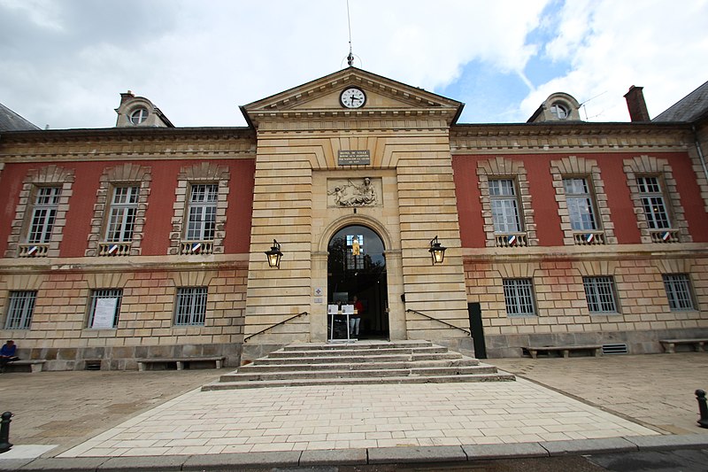 Construit en 1787 par Jacques-Jean Thévenin pour servir de bailliage de la juridiction de Rambouillet, l'hôtel de ville accueillait le bailli qui rendait la justice au nom du roi, alors propriétaire de la seigneurie. Donné à la commune en 1809 par Napoléon Ier, le bâtiment présente une grande aile principale encadrée de deux ailes plus courtes en retour. L'entrée s'ouvre sur un avant-corps central en pierre de Saint-Leu, surmonté d'un fronton et orné d'un bas-relief représentant la Justice. L'élévation se compose de deux niveaux : un rez-de-chaussée en pierre de taille, percé d'ouvertures relativement petites, et un étage noble en moellons enduits imitant la brique, éclairé par de hautes fenêtres à encadrement de pierre. L'intérieur conserve une grande carte de Rambouillet et des Yvelines, d'environ 20 m², exécutée sous Louis XVI, sur laquelle le souverain aurait lui-même travaillé.