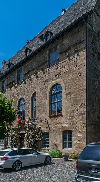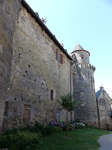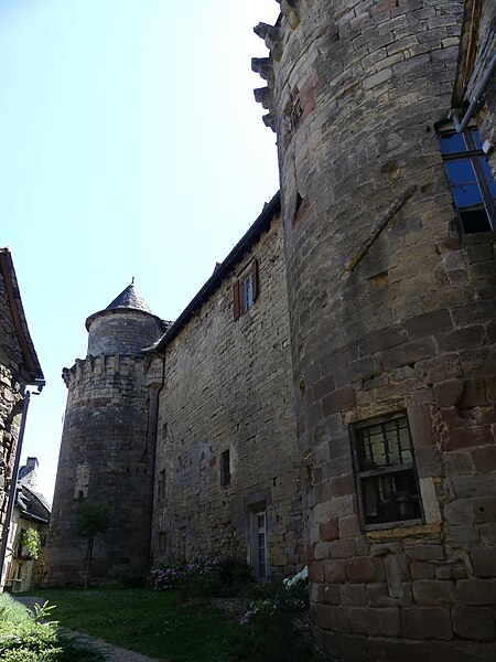 L'ancien château de la famille des Castelnau, aujourd'hui hôtel de ville de Saint-Côme-d'Olt (Aveyron), est un château médiéval du XIVe siècle bâti au cœur de l'enceinte de la ville, succédant à une première maison seigneuriale signalée en 1226. L'édifice, qui fut lieu de mémoire de la famille des Castelnau pendant au moins sept siècles, présente un aspect composite et conserve, notamment dans les intérieurs des tourelles et la chapelle, des vestiges décoratifs rares et intéressants. Ce massif logis rectangulaire est mentionné dès le XIIIe siècle comme aula des seigneurs de Calmont d'Olt et servit de résidence à la famille de Castelnau-Bretenoux aux XIVe et XVe siècles. Il passa ensuite aux Bourbon-Malauze puis fut acheté par Jean-Baptiste de Curières, marquis de Saint-Côme. L'édifice a subi de nombreuses transformations au fil des siècles : les angles nord furent flanqués vraisemblablement au XIVe siècle de deux tours cylindriques, et à partir du XVIe siècle de multiples percements et adjonctions modifièrent les façades. En 1891, la famille de Curières de Castelnau mit le château à la disposition des frères marianistes pour y créer le pensionnat Saint-Louis, établissement qui fonctionna jusqu'en 1963. Une plaque commémorative apposée en 1955 rappelle le souvenir du général Édouard de Curières de Castelnau, de ses frères et de leurs enfants et petits-enfants morts pour la France. La famille céda le château à la municipalité en 1970, qui y installa la mairie ; le bâtiment est actuellement occupé par les services municipaux. L'édifice est inscrit au titre des monuments historiques pour ses façades, ses toitures et ses tours d'angles par arrêté du 19 mai 1999. Les vues visibles montrent l'angle sud-est, le pignon est avec la tour d'angle nord-est, ainsi que la façade nord flanquée de ses deux tours d'angle.
