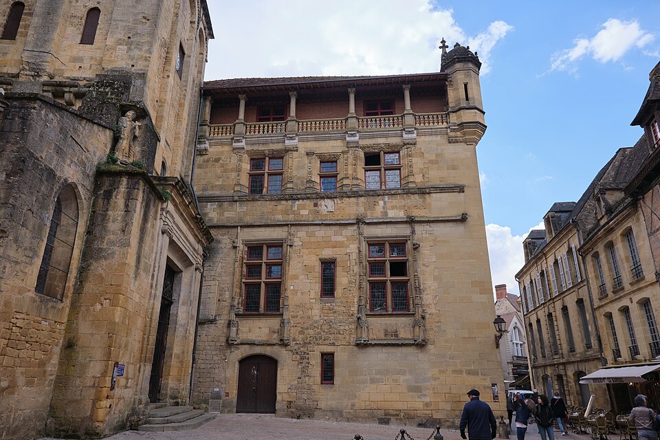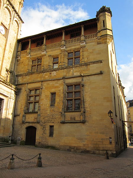 L'Hôtel de ville de Sarlat se situe sur la place de la Liberté à Sarlat-la-Canéda (Dordogne, Nouvelle-Aquitaine). La ville s'est développée autour de l'abbaye Saint-Sauveur, fondée au début du IXe siècle. Dès 1204, les bourgeois de Sarlat s'opposent à l'abbé pour obtenir des privilèges ; ils choisissent des représentants, les consuls, et instaurent le consulat en 1223. Au XIIIe siècle, la ville atteint environ 5 000 habitants et, en 1263, les consuls s'allient à ceux de Figeac, Périgueux et Brive. Pour disposer d'un lieu de réunion, les consuls achètent plusieurs maisons en 1273. Parallèlement, un conflit oppose abbés et moines depuis 1250 ; l'abbé Arnaud III de Stapon est assassiné lors d'un office en 1273 et l'indécision des moines en 1285 pousse l'évêque de Périgueux à désigner un nouvel abbé. En 1290, l'abbé demande l'appui du roi, et des officiers royaux s'installent en ville. Après un long conflit, le Livre de la paix de 1298 reconnaît le consulat : l'abbé admet leur droit de légiférer, de se réunir dans une maison commune, d'administrer et de défendre la ville, et partage avec eux la justice et les impositions. Cette charte est ratifiée par le roi Philippe IV en 1299 et reste en vigueur jusqu'en 1789. La ville est alors administrée par quatre consuls assistés de vingt-quatre jurats, chaque consul représentant un quartier — Lendrevie, la Boucarie, la Mellougane et la Rigaudie. Les consuls obtiennent aussi la direction des travaux publics et font construire l'enceinte en pierre entre la fin du XIIIe siècle et le XIVe siècle ; ils assurent la garde des murs, des portes et des fossés, tandis que des faubourgs se développent à l'extérieur.
