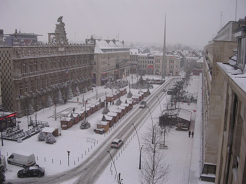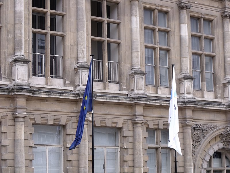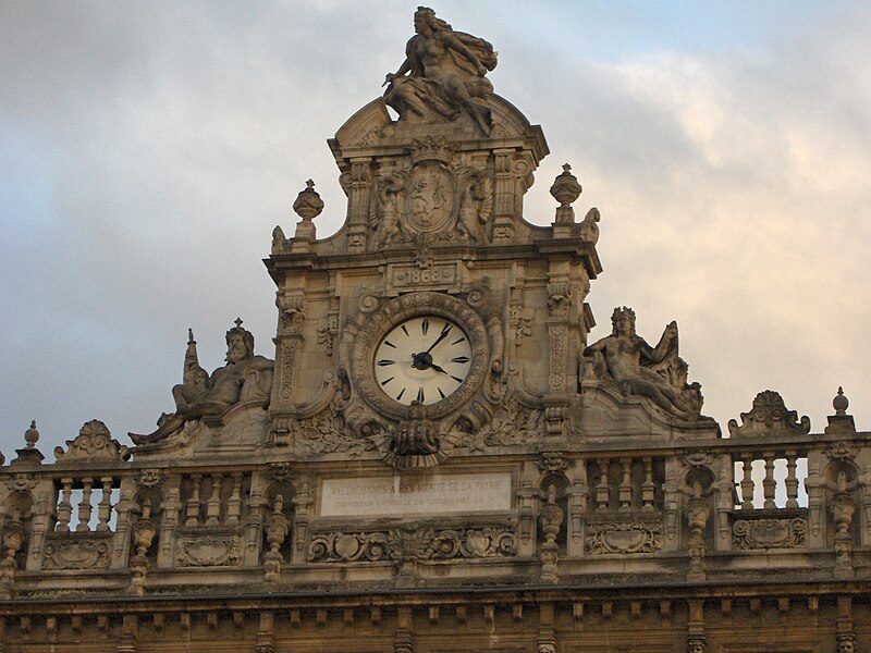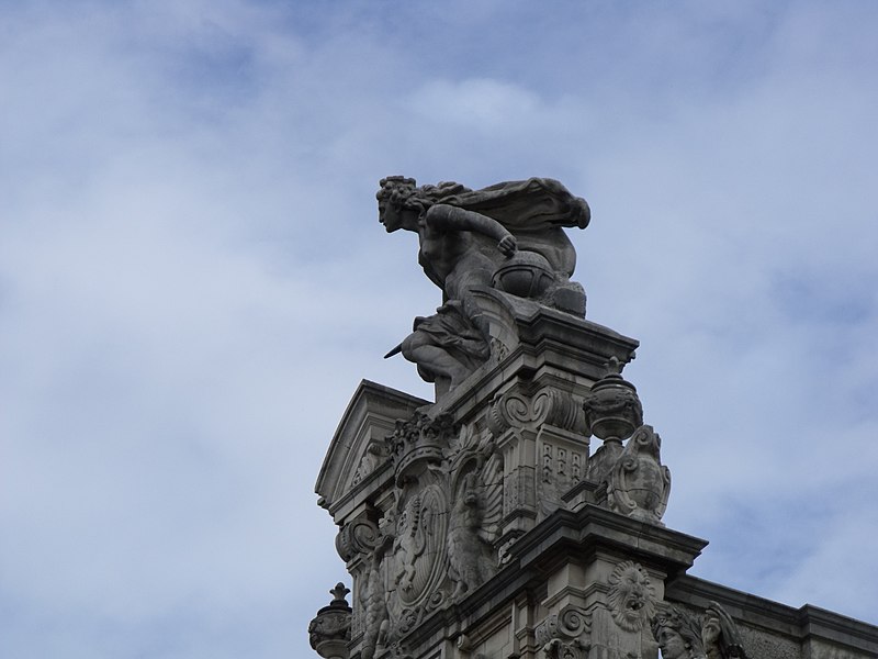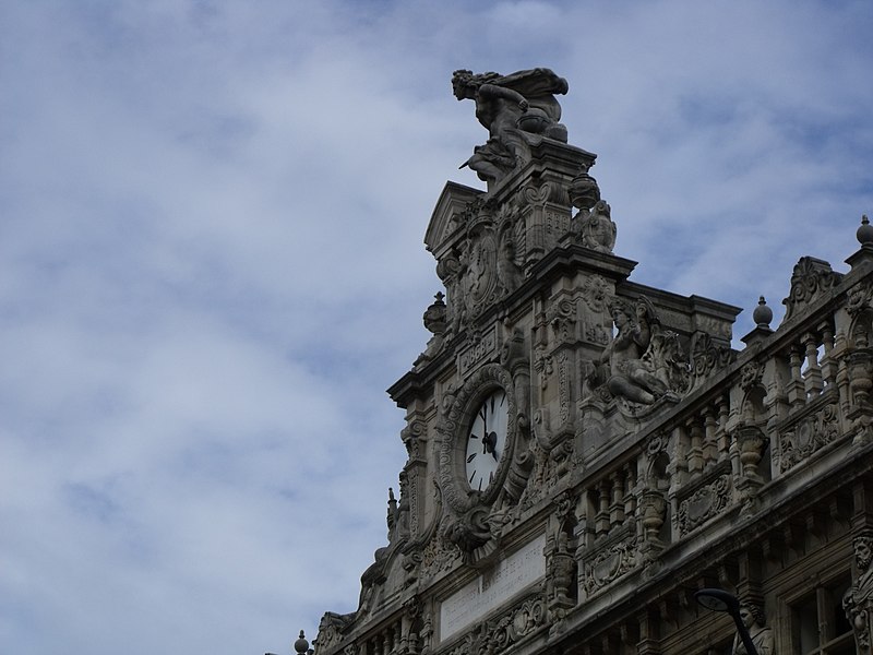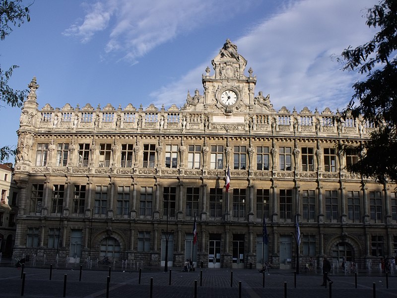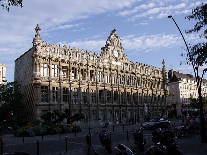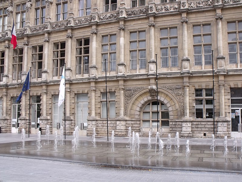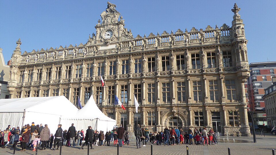 L'hôtel de ville de Valenciennes, situé place d'Armes et inscrit aux monuments historiques, abrite les institutions municipales depuis le Moyen Âge. Sa façade du XVIIe siècle est rattachée à un corps de bâtiment reconstruit dans les années 1950, l'original ayant brûlé pendant la Seconde Guerre mondiale. En 1611, le prévôt Jean Roisin ordonna la reconstruction de la maison échevinale ; les travaux durèrent trois ans et absorbèrent un cinquième du budget municipal, remplaçant l'édifice précédent par une bâtisse de style gothique propre aux Pays-Bas espagnols et au Nord de la France. Pendant la Révolution, l'hôtel de ville échappa à des destructions majeures, tandis que la chapelle Saint-Pierre fut désacralisée, transformée en marché aux grains puis démolie en 1828. Au XIXe siècle, l'architecte valenciennois Batigny restaura la façade originelle, y ajouta deux tourelles à chaque extrémité et confia un programme de statuaire à Carpeaux, enfant du pays ; celui-ci réclama un ensemble plus vaste que celui finalement retenu, limité au grand fronton personnifiant la ville et à quelques statues féminines entre les fenêtres. Les bombardements de 1940 dévastèrent une grande partie du centre et ne laissèrent de l'hôtel de ville que sa façade ; le beffroi s'effondra, entraînant la chute de l'horloge et de la sculpture « Valenciennes défendant ses remparts ». Le plan de reconstruction initial, confié à Albert Laprade, proposait une nouvelle perspective sur la place et l'introduction d'un axe visuel ; un changement d'architecte en chef fit évoluer le projet, Jean Vergnaud adoptant d'autres axes et renonçant au parti régionaliste de Laprade. Le programme ministériel pour la reconstruction des hôtels de ville exigeait des réponses fonctionnelles précises — accueil du public, bureaux administratifs, pièces officielles et salle du conseil — auxquelles Vergnaud répondit par un projet résolument moderne. Il conserva et consolida la façade, y adjoignit un volume restituant le gabarit ancien, multiplia par trois la parcelle d'implantation et prévît un grand hall public, des salles de réception à l'étage et une tour abritant des bureaux et symbolisant le beffroi. Les travaux débutèrent en 1953. La façade restaurée est devenue un élément du décor urbain et contraste volontairement avec les façades latérales et arrière, composées de blocs de pierre disposés en quinconce et formant un jeu de damier. Voir aussi la liste des monuments historiques de Valenciennes et les portails consacrés aux monuments historiques français et au Nord-Pas-de-Calais.