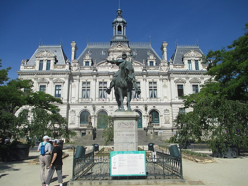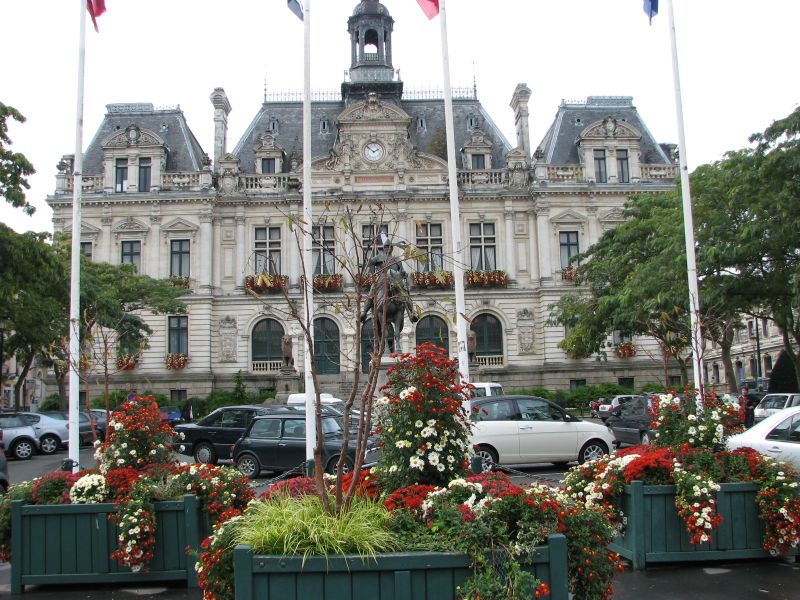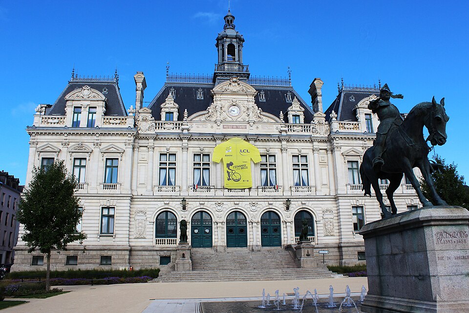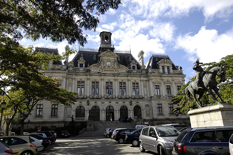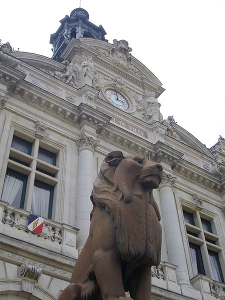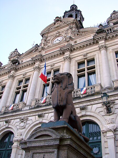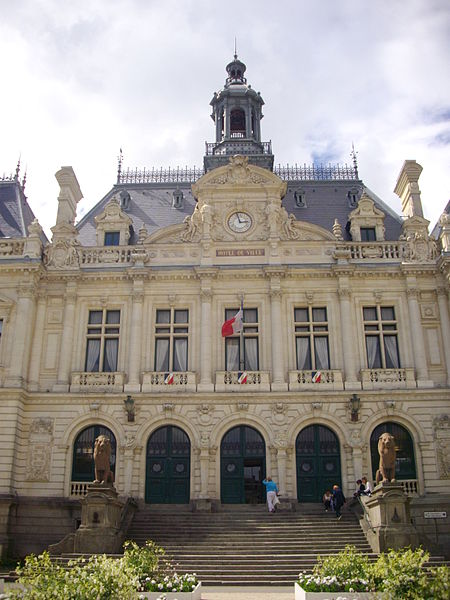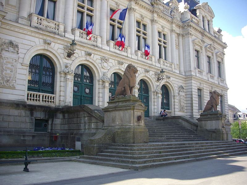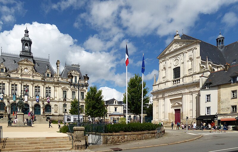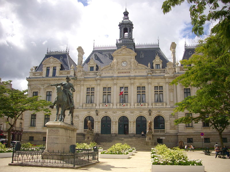 L'hôtel de ville de Vannes accueille une partie des services municipaux et se situe sur la place Maurice Marchais, anciennement place Napoléon et place du Marché. L'autre partie des services est installée au centre administratif municipal, rue Joseph Le Brix. Construit entre 1880 et 1886 pour remplacer une ancienne mairie en mauvais état, il illustre l'architecture des bâtiments publics édifiés sous la IIIe République. Le projet, dont les premiers fondements furent posés par le maire républicain Émile Burgault dès 1847 et mentionné dans des délibérations de 1861, fut relancé en 1878 lorsque le Conseil municipal fixa l'emplacement sur la place actuelle. La première pierre fut posée le 12 décembre 1880 et l'édifice inauguré le 11 juillet 1886 en présence du ministre des Postes Félix Granet, du maire Émile Burgault et du sous‑secrétaire d'État Jean Bernard. Estimé à 410 937,90 francs en juin 1880, le coût final atteignit 793 628 francs, un montant élevé qui fut invoqué lors des municipales de 1888. L'hôtel de ville est inscrit au titre des monuments historiques depuis le 2 décembre 1992. Les plans furent signés par l'architecte vannetais Charier ; le bâtiment, de style Renaissance italienne, est une adaptation à l'échelle de Vannes de l'Hôtel de Ville de Paris. La façade principale, encadrée par deux pavillons, se distingue par un frontispice muni d'une horloge et surmonté du blason de la ville, ainsi que par un grand campanile à carillon rappelant l'ancien beffroi. L'ornementation comporte de grands pilastres aux pavillons, des colonnes engagées à chapiteaux corinthiens, des frontons triangulaires et cintrés alternés, des cartouches, des bustes, des supports de frontispice et des volutes. De nombreux artistes parisiens et nantais ont contribué à un décor intérieur très soigné, parfaitement sauvegardé dans son ensemble. L'ancienne mairie, située sur la place des Lices et de style breton, fut partiellement préservée : son escalier fut installé dans les années 1960 dans la cour de l'Hôtel de Limur. Une campagne de restauration lancée en juin 2010 a concerné le clocheton, la toiture du corps central et des ailes, les éléments décoratifs en zinc et les cheminées ; cette intervention, estimée à trois millions d'euros sur une durée initiale de quatre ans, visait à remédier à la dégradation progressive de l'édifice.