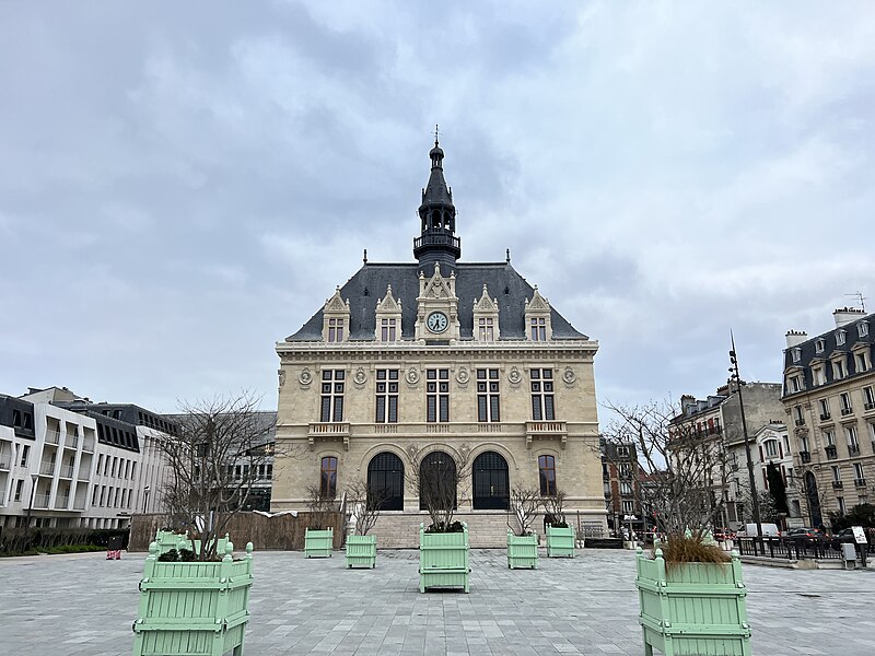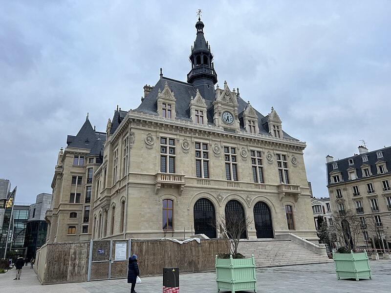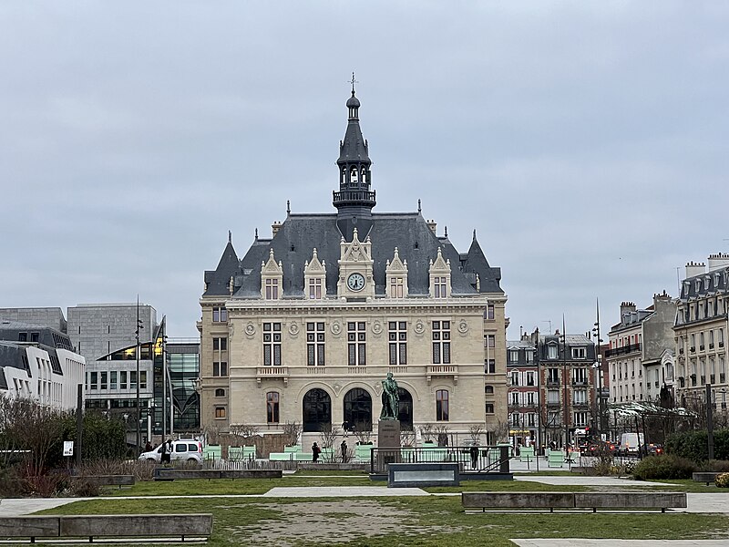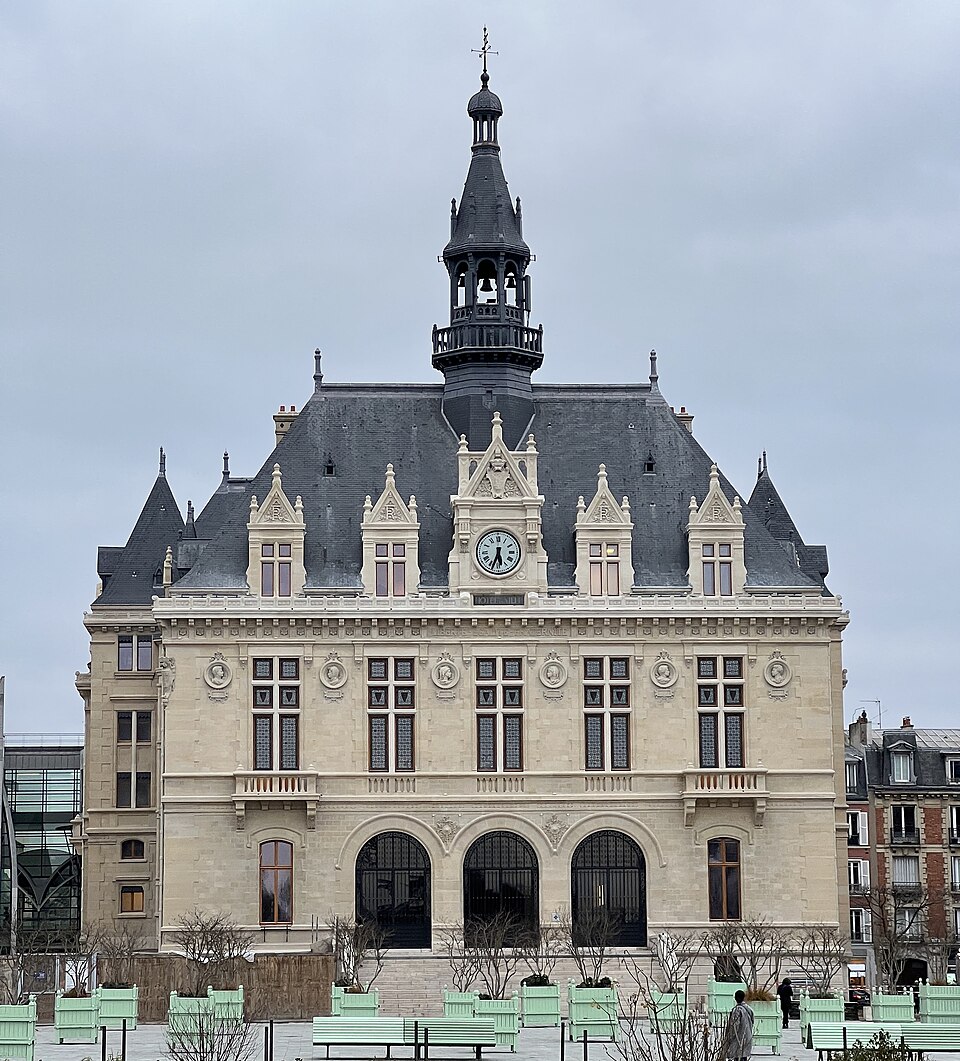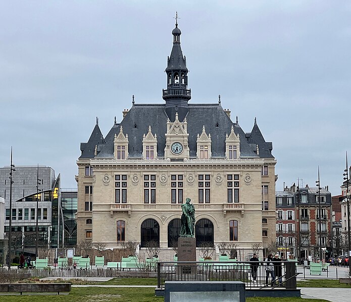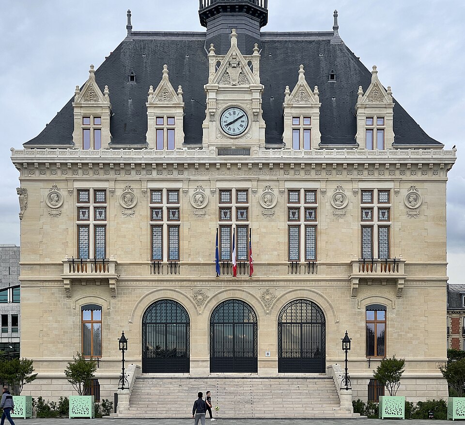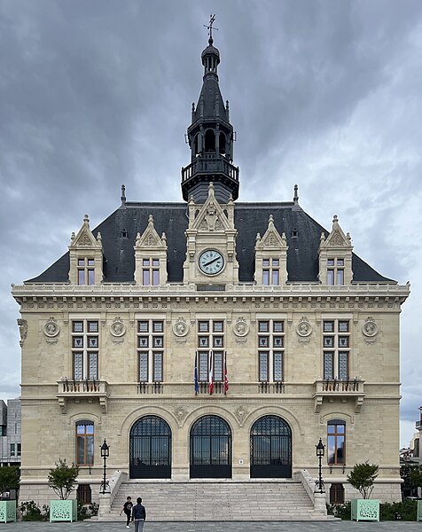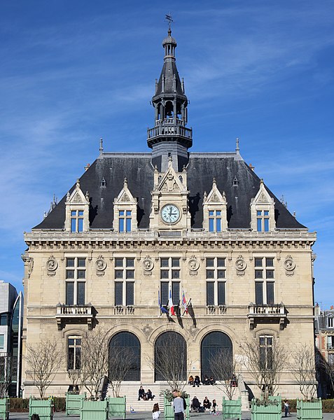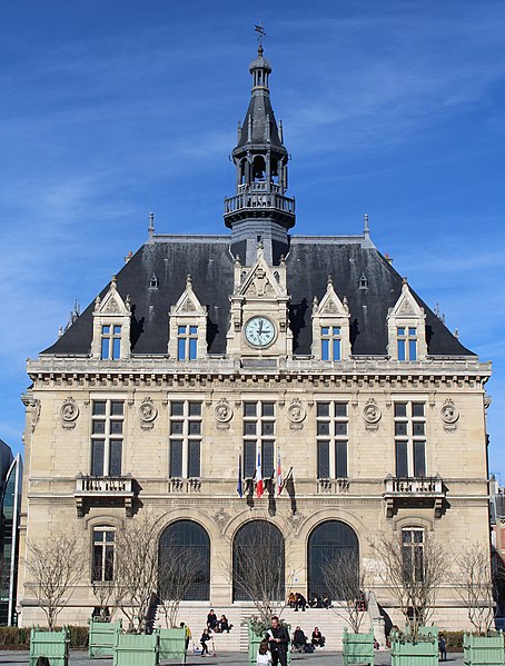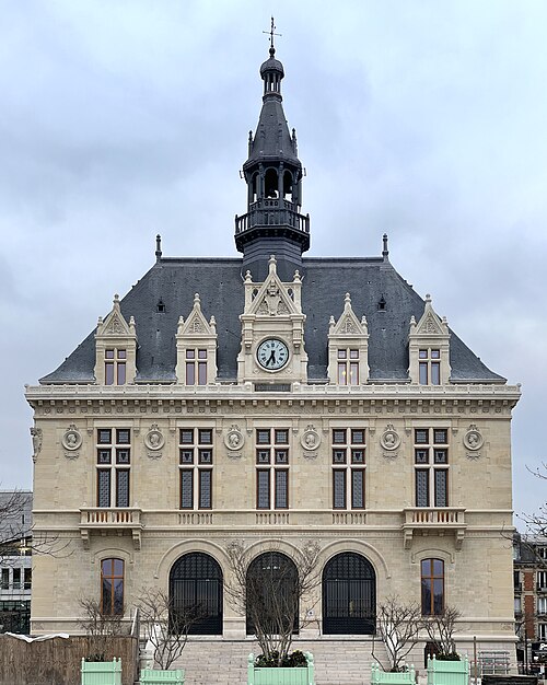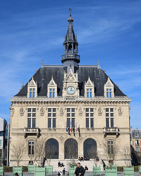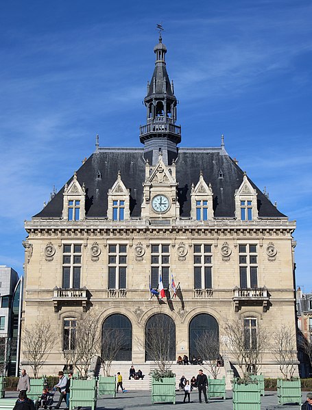 L'hôtel de ville de Vincennes, situé au 53 bis rue de Fontenay (Val‑de‑Marne), abrite les bureaux du maire et de ses adjoints, le service des archives et sert de lieu de réception. Le premier hôtel de ville de la commune fut édifié en 1847 par Jacques‑Jean Clerget. L'accroissement de la population entraîna, après un concours public lancé en 1887 auquel participèrent plusieurs architectes, le choix du projet d'Eugène Calinaud, lauréat du premier prix. L'édifice conçu par Calinaud, de style néo‑Renaissance et inspiré de celui de Paris, porte la date 1889 et fut inauguré le 25 octobre 1891. La salle des mariages présente des fresques peintes par Maurice Chabas en 1902, consacrées à l'histoire de Vincennes, qui ont été classées au titre des monuments historiques en 1982. Dès 1924, l'agrandissement de la mairie fut décidé et confié à l'architecte municipal Henri Quarez, assisté de Gustave Lapostolle ; les travaux commencèrent en 1932 et l'inauguration eut lieu en 1935. L'extension respecte l'architecture de Calinaud à l'extérieur, tandis que le décor intérieur reflète le style des années 1930. L'escalier d'honneur est éclairé par une coupole en béton translucide de plus de douze mètres de diamètre réalisée par la maison Dindeleux. La nouvelle salle des fêtes fut décorée par un ensemble d'artistes et d'ateliers renommés : le sculpteur Georges Saupique, les peintres Alexandre Urbain, Georges d'Espagnat, Jean‑Jacques Rigal, Paul Delormoz et Fernande Cormier, ainsi que les établissements Brandt pour les ferronneries. Cet ensemble décoratif est toujours en place aujourd'hui. En 1981, un nouveau centre administratif prit place à proximité immédiate de l'ancien hôtel de ville, qui conserve toutefois les bureaux municipaux, les archives et sa vocation de lieu de réception. La façade sud est ornée de six tableaux évoquant des épisodes et des lieux liés à l'histoire de Vincennes — le donjon, la porte du village, l'obélisque du bois, le polygone d'artillerie, la vallée de la Marne et l'hôtel de ville — tandis que la façade nord comporte un décor mural de vingt‑cinq mètres illustrant le lac Daumesnil. L'édifice a été inscrit au titre des monuments historiques en 1999 puis classé en 2000.