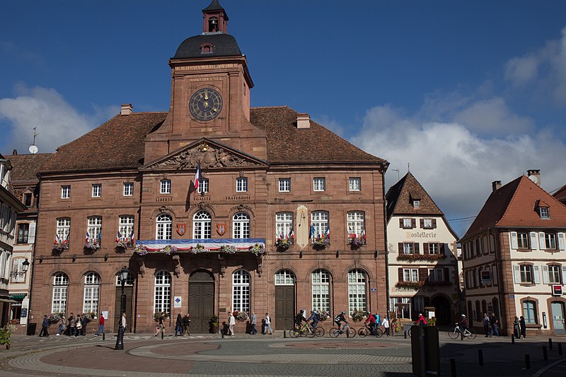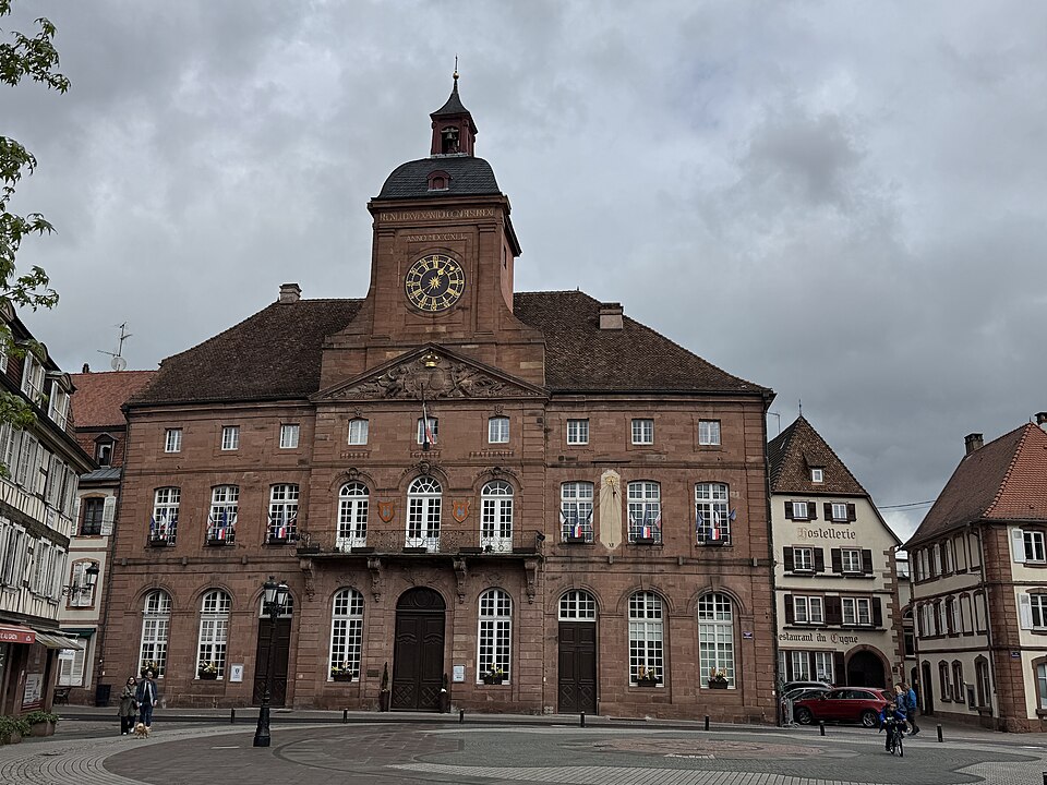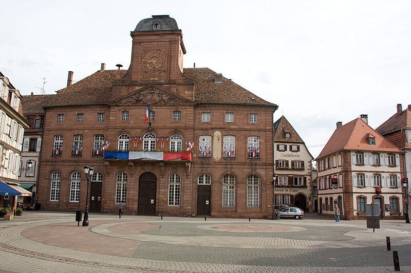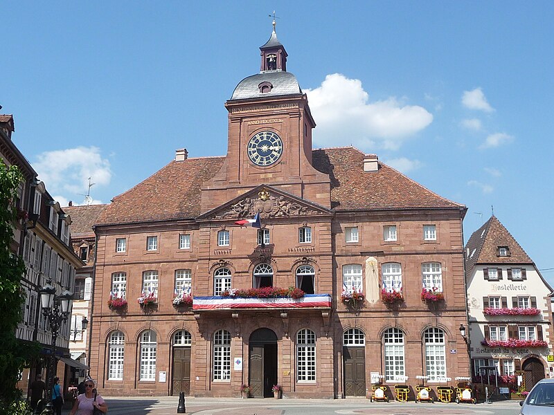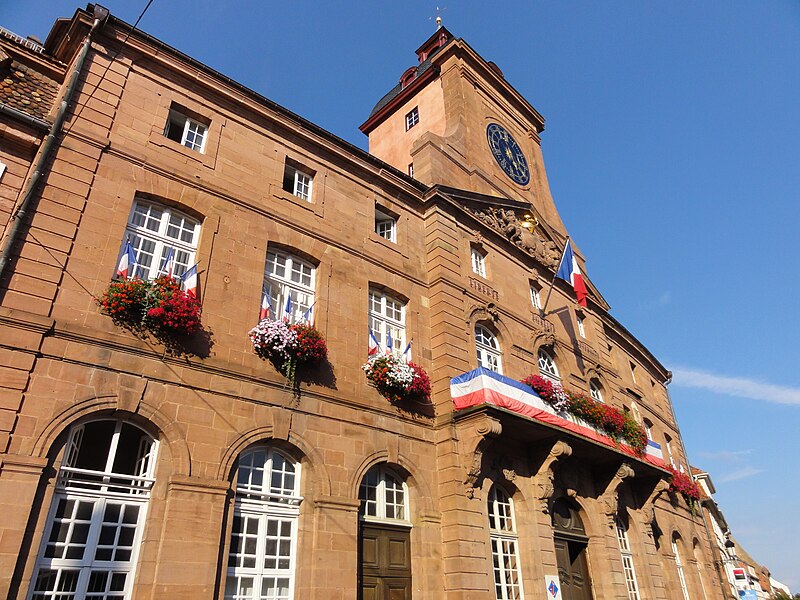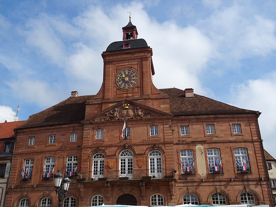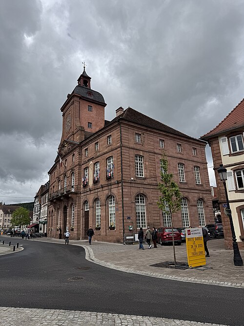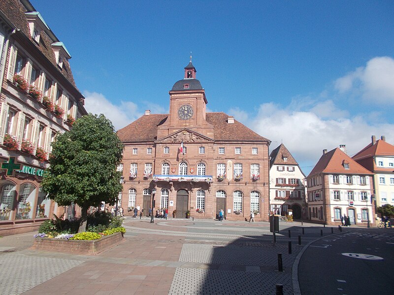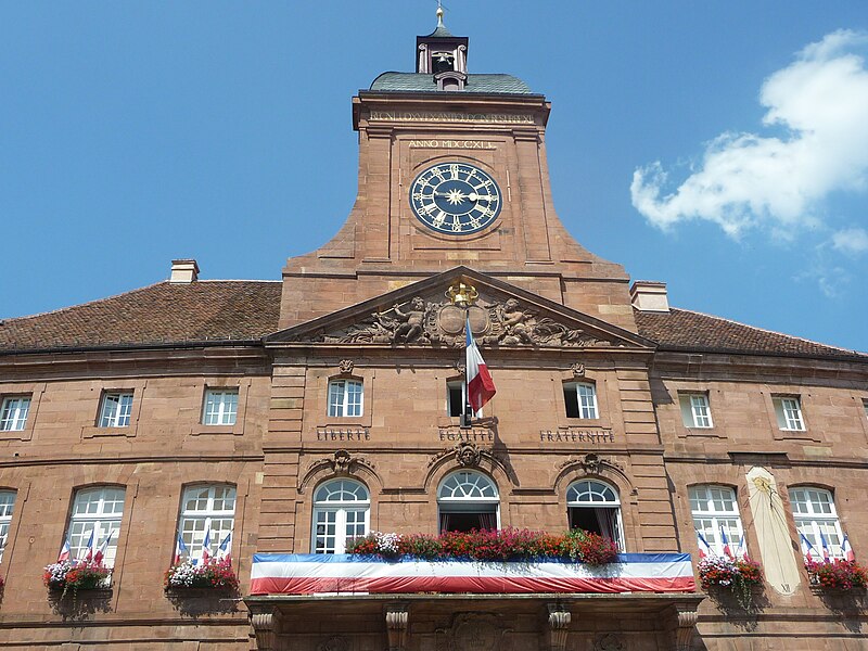 Situé place de la République à Wissembourg, l'hôtel de ville constitue un témoignage de l'architecture publique du milieu du XVIIIe siècle. Construit d'après les plans de l'architecte Joseph Massol, la première pierre fut posée le 26 juin 1741 et l'édifice fut achevé et inauguré le 27 juin 1752. Le niveau supérieur de la tour porte la date MDCCXLI et l'inscription REGNLUDXVEXANTIQUOCINLRESURREXI (Sous le règne de Louis XV, je me suis relevé de mes cendres). L'ancienne maison communale, peut‑être datée de 1396, succomba lors de l'incendie de la ville en 1677 et apparaît sur des vues gravées de Wissembourg des XVIe et XVIIe siècles. Les menuiseries de l'hôtel de ville sont en grande partie d'origine. Pendant la Révolution, le maître maçon Klauer fit enlever les portraits sculptés des rois qui ornaient la salle des séances ; les médaillons stuqués de cette salle ont été ornés en 1988 par Vincent Thiébaut de peintures allégoriques. Une maison imbriquée à l'arrière, dans l'angle nord‑est, fut détruite après la guerre, permettant l'agrandissement du bâtiment selon le plan rectangulaire actuel. L'édifice a été inscrit au titre des monuments historiques en 1929 puis classé en 1932.