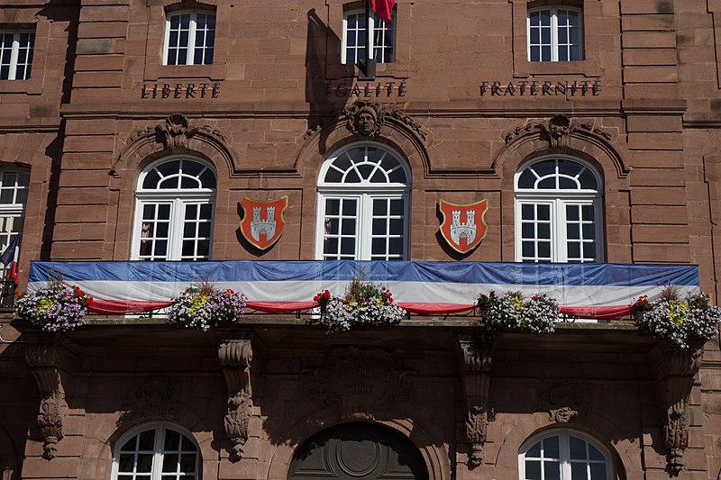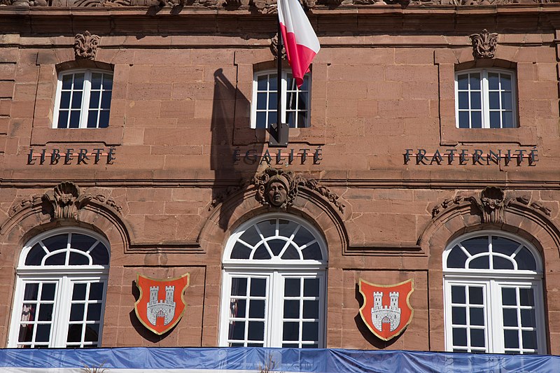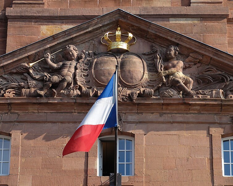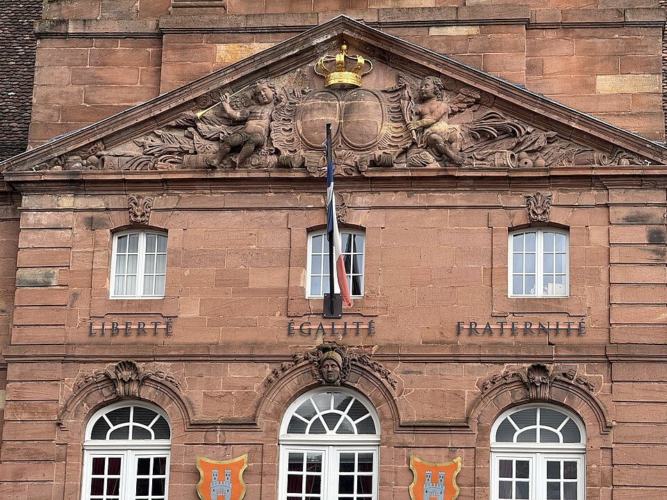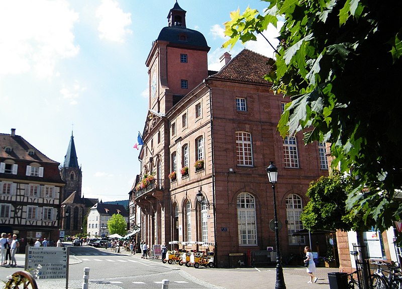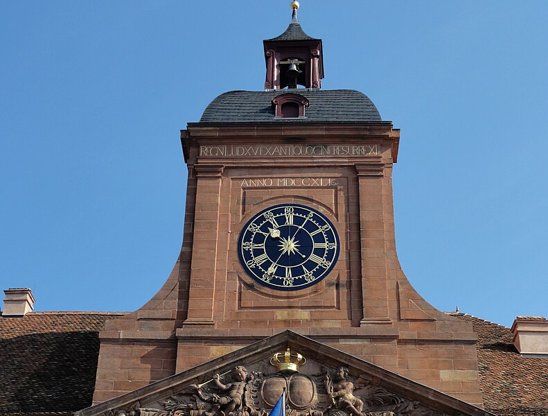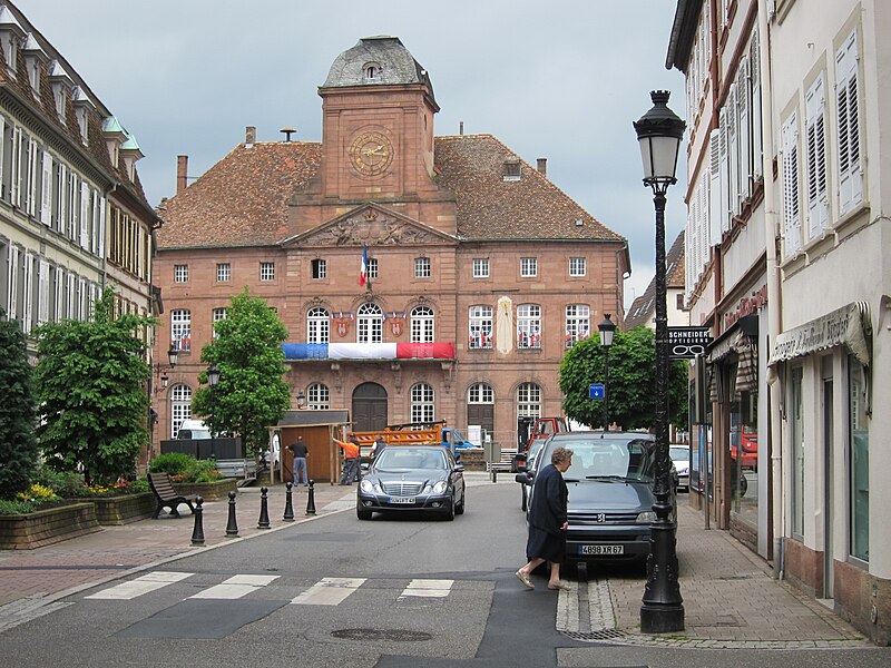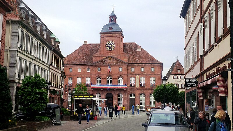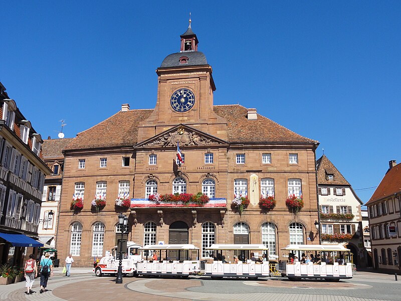 Situé place de la République à Wissembourg, l'hôtel de ville constitue un témoignage de l'architecture publique du milieu du XVIIIe siècle. Construit d'après les plans de l'architecte Joseph Massol, la première pierre fut posée le 26 juin 1741 et l'édifice fut achevé et inauguré le 27 juin 1752. Le niveau supérieur de la tour porte la date MDCCXLI et l'inscription REGNLUDXVEXANTIQUOCINLRESURREXI (Sous le règne de Louis XV, je me suis relevé de mes cendres). L'ancienne maison communale, peut‑être datée de 1396, succomba lors de l'incendie de la ville en 1677 et apparaît sur des vues gravées de Wissembourg des XVIe et XVIIe siècles. Les menuiseries de l'hôtel de ville sont en grande partie d'origine. Pendant la Révolution, le maître maçon Klauer fit enlever les portraits sculptés des rois qui ornaient la salle des séances ; les médaillons stuqués de cette salle ont été ornés en 1988 par Vincent Thiébaut de peintures allégoriques. Une maison imbriquée à l'arrière, dans l'angle nord‑est, fut détruite après la guerre, permettant l'agrandissement du bâtiment selon le plan rectangulaire actuel. L'édifice a été inscrit au titre des monuments historiques en 1929 puis classé en 1932.