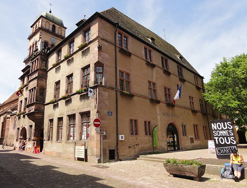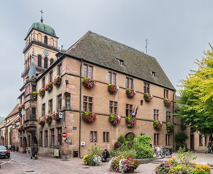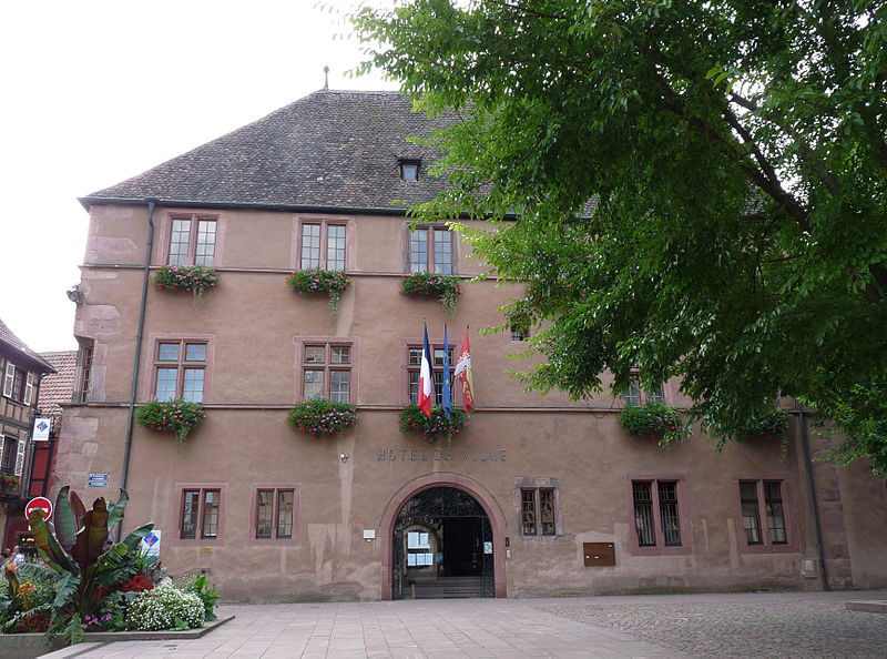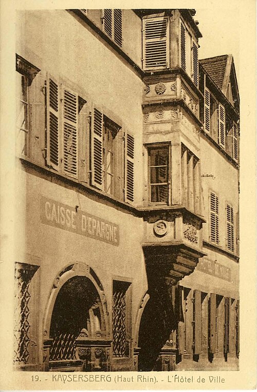 L'hôtel de ville, situé au 39, rue du Général-de-Gaulle à Kaysersberg (Haut-Rhin), est classé au titre des monuments historiques depuis 1990. Construit en 1604 par le charpentier, dit aussi Werkmeister, Dominique Haecher, il servait de centre administratif et judiciaire. Du décor du premier étage subsistent des portes marquetées datées de 1605. Une dalle datée de 1604, initialement placée sur l'oriel, a été déplacée dans le hall du rez-de-chaussée en 1848; elle porte les armoiries bûchées de la ville et de l'Empire ainsi qu'une inscription commémorative en allemand. Un nouvel escalier a été installé en 1715, et une importante restauration est attestée en 1727 par une inscription sur un claveau d'arc. Lors de la restauration menée par Bleicher entre 1844 et 1848, les lambris de la salle du conseil ont été remplacés et les dalles armoriées actuelles de l'oriel et de la tourelle d'escalier mises en place. En 1897, l'ancien puits a été remplacé par un puits daté de 1521, provenant de la rue Principale. La restauration de 1926, conduite par Schoffit, a laissé les vitraux armoriés de Bartholomé et les peintures murales de la salle de justice et de la tourelle d'escalier réalisées par Ad. Zilly de Strasbourg, copies des œuvres de 1618 attribuées à Matthias Wuest pour la maison 54, rue du Général-de-Gaulle. Après l'incendie de la salle du conseil en 1929, les lambris ont été refaits en sapin et le plafond restauré. La destruction des maisons accolées pendant la guerre a permis la création de la place de la Mairie et a entraîné le remaniement et le réaménagement du bâtiment d'après les plans de l'architecte des Monuments historiques Arnhold. La grande salle du rez-de-chaussée a été restaurée lors des travaux de 1983 à 1986. Seize marques de tâcherons, relevées sur l'édifice et datées du début du XVIIe siècle, correspondent à autant de tailleurs de pierre ayant participé à sa construction. L'édifice figure par ailleurs dans les listes des monuments historiques de Kaysersberg et du Haut-Rhin.