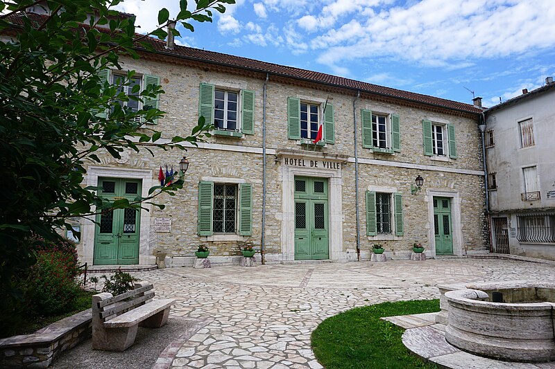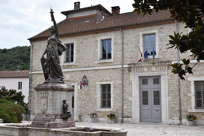 En 936, Raymond Pons, comte de Toulouse et duc d'Aquitaine, fonda à Thomières le monastère bénédictin de Saint-Pons. L'autorisation de construire des murailles autour du couvent date de 1171, mais la tour ne semble pas appartenir à cette campagne de travaux ; sa construction est plus vraisemblablement postérieure à l'érection de l'abbaye en évêché en 1318, ce que confirment les caractères de la voûte de la salle basse. L'hôtel de ville occupe l'ancien emplacement de l'évêché : les anciennes constructions ont été conservées dans la partie sud et prolongées au nord par des bâtiments nouveaux. De l'ensemble primitif, la tour seule présente un intérêt architectural marqué. Il s'agit d'une puissante construction sur plan barlong qui défendait l'angle sud-ouest des remparts, non loin des rives du Jaur et située entre deux décrochements de l'enceinte. Placée en angle saillant, elle était dotée de mâchicoulis sur les deux faces exposées à l'extérieur de la ville. Les merlons et créneaux de la partie supérieure sont des réfections ou des additions récentes. À l'intérieur, l'étage inférieur, qui servait de cachot, est voûté en berceau ; au-dessus se trouve une salle voûtée d'ogives, de plain-pied avec la rue. Les sculptures conservées permettent de dater cette partie du XIVe siècle. Les étages sont desservis par un degré de pierre situé dans l'aile voisine des bâtiments.