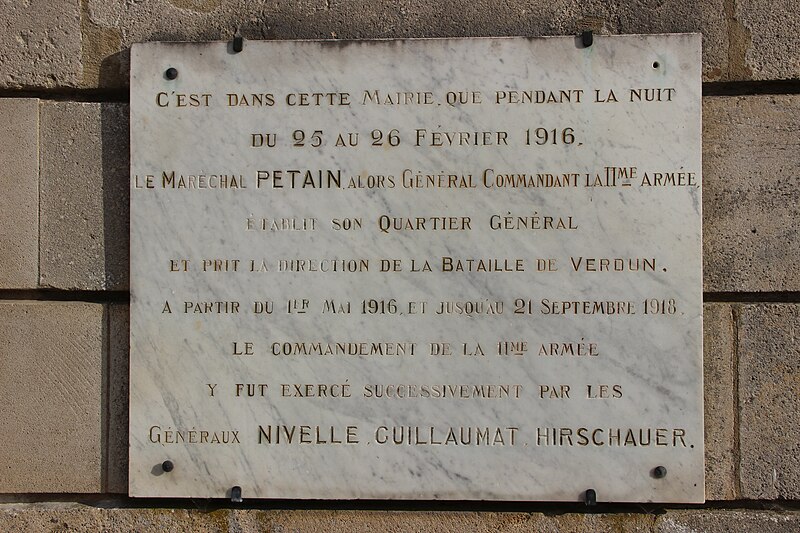 L'hôtel de ville a servi de poste de commandement du général Pétain durant la bataille de Verdun.