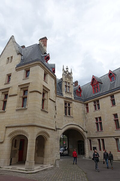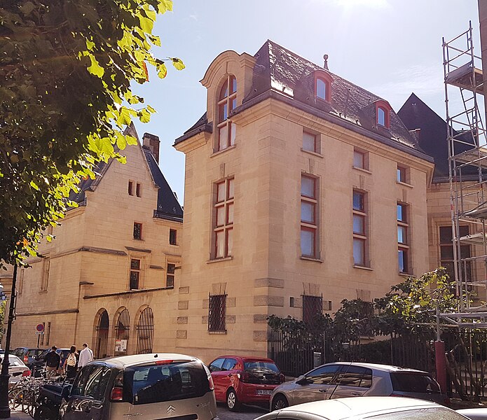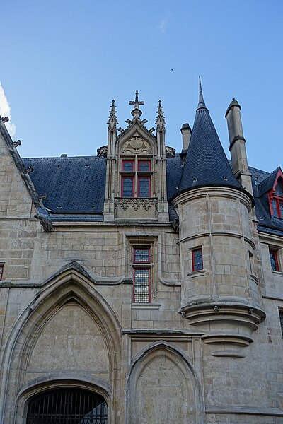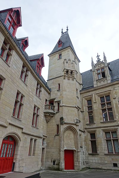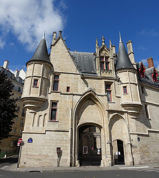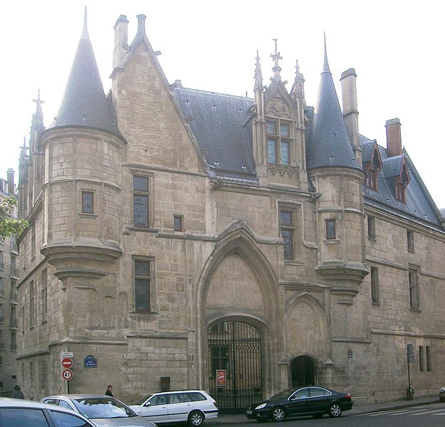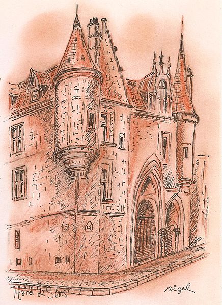 L'Hôtel de Sens est un hôtel particulier du XVe siècle, situé dans le 4e arrondissement de Paris, classé aux monuments historiques et abritant aujourd'hui la bibliothèque Forney, consacrée principalement à l'affiche et à la publicité. Jusqu'en 1622 Paris dépendait de l'archevêché de Sens; l'archevêque Guillaume de Melun, primat des Gaules et de Germanie, acquit l'hôtel de Jean d'Hestomesnil bâti en 1345. Entre 1361 et 1366 le roi réunit des demeures du Marais pour former l'Hôtel Saint-Pol et donna en 1366 à l'archevêque l'ancien hôtel d'Hestomesnil rue du Figuier. Tristan de Salazar, archevêque de Sens de 1474 à 1519, fit reconstruire l'hôtel de 1495 à 1519 et rasera l'ancien bâtiment pour édifier l'actuel. La nouvelle demeure, achevée au moment de sa mort, évoque un château fort médiéval avec trois échauguettes d'angle, une tour engagée et un porche gothique aux ogives fines. De hautes fenêtres ornées de blasons et une voûte d'entrée à arcatures ogivales annoncent l'allure d'une résidence de plaisance de la Renaissance. Par la suite, l'hôtel hébergea plusieurs prélats illustres, parmi lesquels Antoine Du Prat, Louis de Bourbon-Vendôme, Louis de Guise, Jean Bertrandi, Nicolas de Pellevé — qui y mourut — ainsi que Jacques Davy du Perron et Jean Davy du Perron. Certains successeurs ne l'occupèrent pas et le louèrent à des seigneurs, puis l'édifice fut également mis en location à des particuliers et des entreprises. En 1555 Nostradamus y fut logé et l'on rapporte qu'il y souffrit d'une grave crise de goutte ; Marguerite de Valois y résida de 1605 à 1606 et la légende lui attribue la coupe d'un figuier devant la porte, geste parfois évoqué pour expliquer le nom de la rue. À partir de 1689 des fermiers des messageries louèrent des parties du bâtiment puis quittèrent les lieux en 1743, laissant l'hôtel très délabré. Devenu bien national en 1790, l'hôtel fut vendu le 1er ventôse an V (19 février 1797) et, au XIXe siècle, transformé par de multiples activités commerciales et industrielles : entreprise de roulage, blanchisserie, fabrique de conserves, coupeur de poils de lièvres, opticien, confiturerie Saint-James (1864-1886) et dépôt de la verrerie Haroux, qui recouvrit la cour d'une verrière. Les commerces occupaient le rez-de-chaussée et le grand appartement au-dessus du porche; les autres pièces furent partagées en garnis où cohabitaient artisans, ouvriers et artistes. Lors des Trois Glorieuses de 1830, un boulet tiré contre les bâtiments resta fiché dans la façade et porte une date gravée au-dessous ; il est encore visible dans la cour. En 1911 la ville de Paris racheta l'édifice pour l'affecter aux conseils des prud'hommes; il avait déjà été inscrit sur la liste des monuments historiques en 1862 et classé en 1912. L'hôtel fut évacué de ses derniers locataires en août 1928 et, en 1929, la décision fut prise d'y transférer la bibliothèque Forney. Des travaux de restauration engagés dans les années 1930 se poursuivirent jusque dans les années 1950 ; pendant cette période l'hôtel demeura enclavé par des constructions déclarées insalubres, dont la démolition est rappelée par une maquette au musée Carnavalet. La bibliothèque Forney, dédiée aux beaux-arts, aux métiers d'art, aux arts appliqués et aux arts décoratifs, s'installa officiellement à l'Hôtel de Sens le 7 avril 1961. L'édifice se situe au 1 rue du Figuier ; il est bordé à l'est par la rue du Figuier, au sud par la rue de l'Hôtel-de-Ville et à l'ouest par la rue des Nonnains-d'Hyères, tandis que la rue de l'Ave-Maria aboutit face à son entrée principale. Au-dessus de la porte d'entrée une meurtrière discrète est ménagée sous la pointe du portail, et la cour intérieure conserve le boulet des Trois Glorieuses encastré dans un mur. L'Hôtel de Sens, ses tourelles, ses lucarnes gothiques, ses fenêtres et ses toitures figurent parmi les éléments architecturaux et mémoriels souvent représentés en gravures et photographies anciennes. Le site a aussi inspiré des œuvres : Nedim Gürsel y situe une immense bibliothèque imaginaire dans sa nouvelle Le cimetière de livres non écrits, et des séquences de l'émission Secrets d'Histoire ont été tournées sur place en 2017 pour un numéro consacré à Marguerite de Valois.