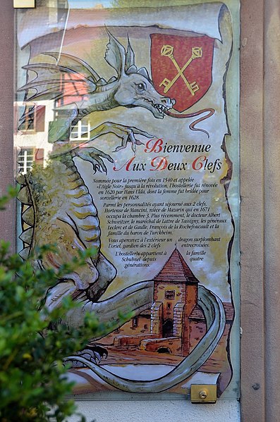 L'Hôtel des Deux-Clefs, situé 3 rue du Conseil à Turckheim (Haut-Rhin), est un édifice inscrit au titre des monuments historiques depuis 1930. À l'origine auberge municipale, il est cité en 1540 sous le nom Statthof et apparaît en 1613 comme « À l'Aigle Noir ». L'immeuble fut reconstruit en 1620 par le charpentier lorrain Hans Uda, qui avait également œuvré à la restauration de la chapelle Saint-Symphorien ; la date est gravée sur l'oriel et sur une fenêtre. Au XVIIe siècle, la ville vendit l'auberge à la famille Fischer, qui la conserva ensuite en propriété privée. Elle prit le nom d'Auberge Aux Deux-Clefs au XIXe siècle, moment où les ouvertures du rez-de-chaussée furent repercées. Les dépendances ont été détruites et remplacées par des bâtiments modernes ; dans la cour se trouve un puits daté de 1632. L'enseigne actuelle paraît récente mais le porte-enseigne conserve un motif en fer découpé et peint représentant le chargement de tonneaux, rappelant l'activité liée au vin pratiquée par l'aubergiste. Au XXe siècle, la famille Schubnel fit un agrandissement à l'arrière, portant le nombre de chambres à une quarantaine. Durant la Seconde Guerre mondiale l'enseigne fut remplacée par « Alt Deutsche Weinstube » jusqu'à la libération de Turckheim le 10 février 1945, date à laquelle l'établissement retrouva son nom historique. La maison à colombages, richement ornée d'oriels et de linteaux sculptés, était destinée à recevoir des hôtes de marque, notamment des délégués de la Décapole et de riches marchands de vin, souvent d'origine suisse.