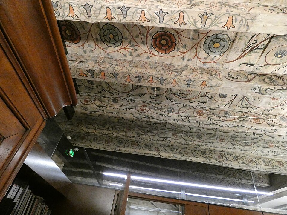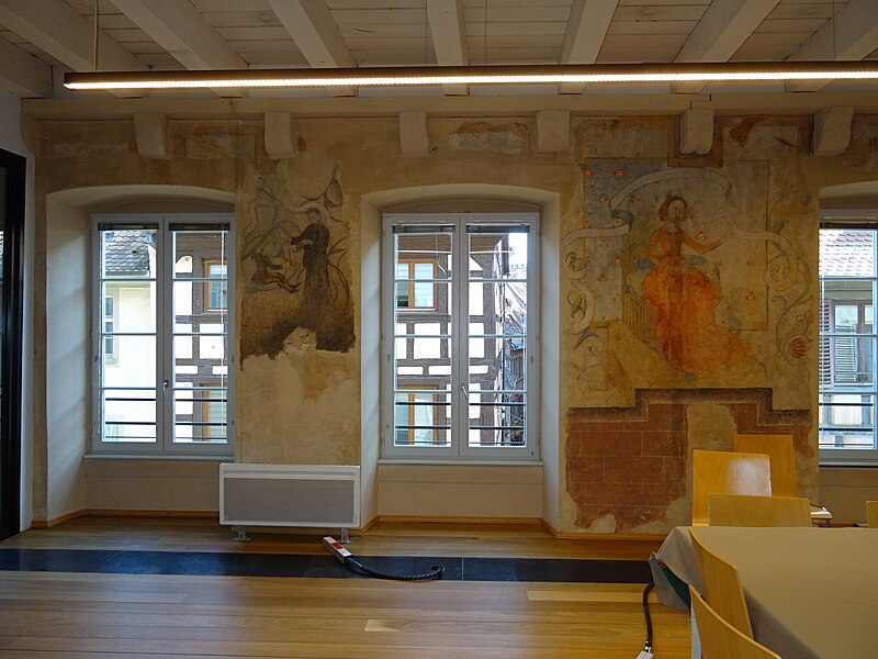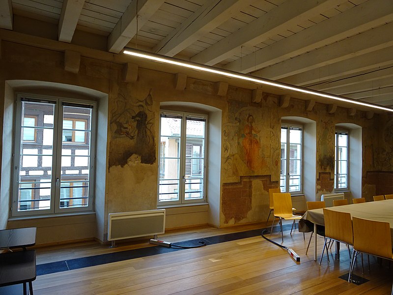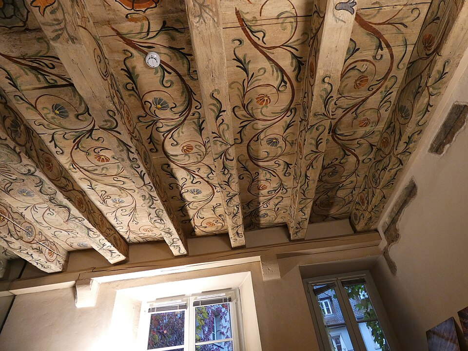 Murs-pignons à redents ; porte cochère à intrados sculpté côté cour ; escalier intérieur à balustres, poteau sculpté attenant ; colonnette ionique à l'intérieur du rez-de-chaussée ; façade sur la rue des Juifs à l'exclusion du rez-de-chaussée ; cave voûtée (cad. 64 59 22) : inscription par arrêté du 15 novembre 1985 ; Ensemble des peintures polychromes du Moyen-Age ou de la Renaissance ainsi que les plafonds et les murs les supportant (cad. 64 59 22) : classement par arrêté du 1er mars 1989
