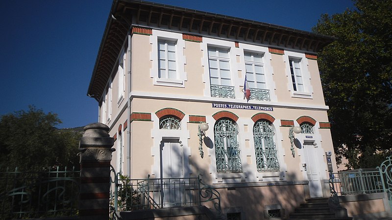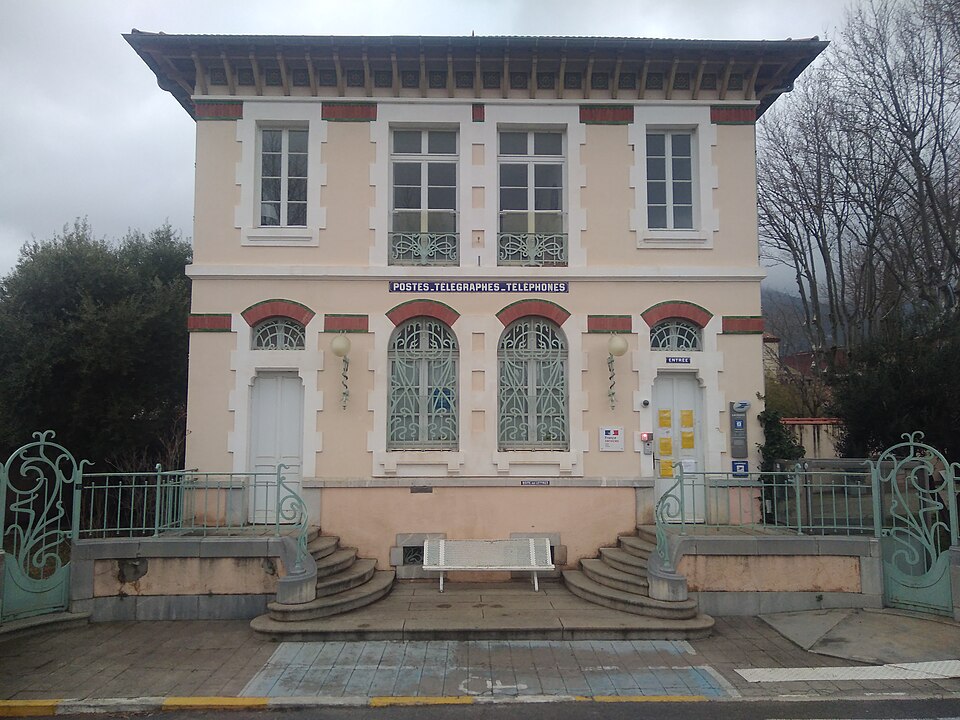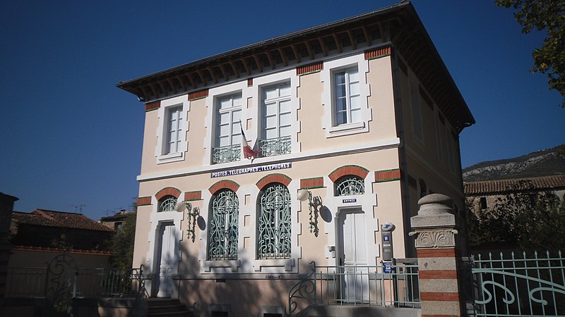 Après la fusion de l'administration des Postes et du télégraphe en 1879, les bâtiments postaux, tant en ville qu'en milieu rural, se singularisent à partir des années 1880-1890 et adoptent des décors marqués par des symboles républicains ; la Poste de Tuchan illustre ce renouveau et constitue un exemple typique de ce phénomène. L'édifice, situé à Tuchan dans l'Aude, est de plan carré, élevé d'un étage sur un rez-de-chaussée surélevé. Il est couvert d'une toiture à une seule croupe, de sorte que la façade arrière se présente comme un mur pignon aveugle. Sur la façade principale, le rez-de-chaussée abrite le bureau de poste, éclairé par deux baies en plein cintre encadrées par deux portes dotées d'impostes cintrées, et l'accès se fait par deux volées d'escalier divergentes. L'étage, qui correspond au logement du receveur, est percé de deux portes-fenêtres à balcons, encadrées de part et d'autre par deux baies plus petites. L'ensemble des ouvertures reçoit un encadrement saillant en harpe. Les façades latérales sont percées au rez-de-chaussée de trois ouvertures cintrées et d'ouvertures rectangulaires à l'étage. La toiture déborde largement et l'avant-toit est porté par une rangée de consoles en bois entre lesquelles s'insère une frise en céramique bleue et jaune agrémentée de roses. À la hauteur des cintres des baies du rez-de-chaussée et sous les consoles, les façades sont animées par deux rangs de briques enchâssées entre deux bandeaux de céramique vernissée verte. Le bâtiment est bordé au nord et au sud par deux petits jardins clos, protégés par des grilles ornées d'arabesques caractéristiques du "modern style". Des dessins différents mais issus du même parti décoratif ont été retenus pour les grilles qui bordent les volées d'escalier et protègent les fenêtres du rez-de-chaussée. Devant la façade principale se dressent deux piliers carrés polychromes, alternant grès et brique, ornés sur chacune de leurs faces d'une palmette sculptée. L'édifice est inscrit au titre des monuments historiques en 1992.