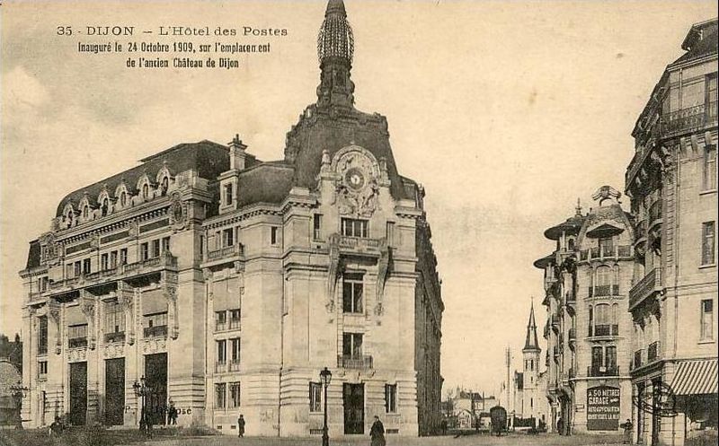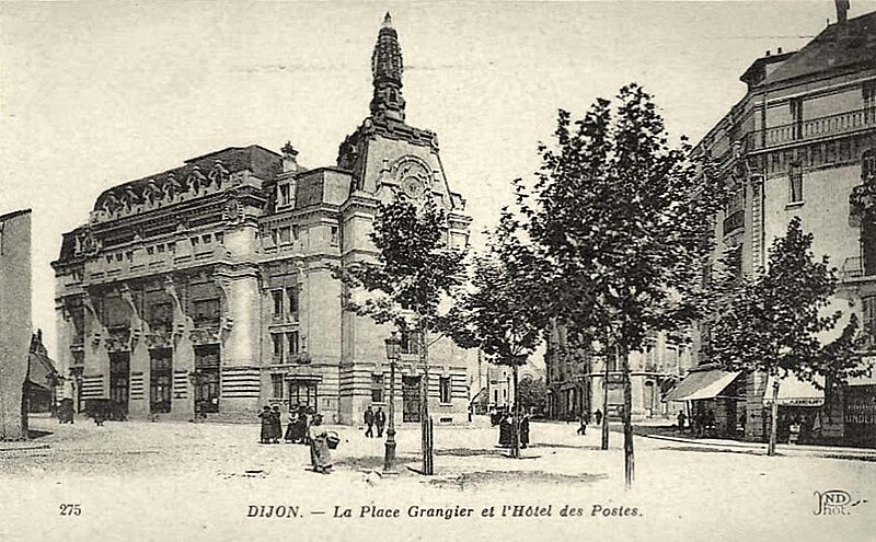 L'Hôtel des Postes, aussi appelé Postes Grangier, est un ensemble immobilier situé aux 8-12 place Grangier, 1-7 rue du Temple, 15 boulevard de Brosses et 2-10 rue Jean-Renaud à Dijon. Construit à partir de 1907 par l'architecte Louis Perreau sur l'emplacement du château de Dijon, démoli à la fin du XIXe siècle, il a été inauguré en 1909. L'immeuble occupe un quadrilatère et suit un plan en grille composé de cinq corps entourant deux cours, et se compose de deux phases distinctes : une partie datant de 1909, avec un bâtiment d'angle, et une extension réceptionnée en 1932. La façade principale, de style néo-Louis XVI, est ornée de sculptures et de mosaïques ; le pan coupé d'angle porte un cadran d'horloge encadré par une sculpture de Paul Gasq représentant Le Jour et la Nuit, et deux médaillons ovales au sommet renferment chacun une mosaïque figurant un coq, symbole des P.T.T. La tourelle métallique abritait un central téléphonique et un télégraphe, tandis que le corps nord est desservi par un hall et un escalier monumental. Au rez-de-chaussée du corps principal se trouve la salle dite du public, dont les quatre travées sont couvertes par un plafond à caissons et entablements, et le local de la chaufferie conserve le puits de l'ancien château fortifié de Dijon. L'extension réalisée à partir de 1927 et réceptionnée en 1932 est de style Art déco et a été conçue par Charles Danne et Gilles Delavault. Jusqu'aux années 2010, l'édifice a été utilisé uniquement comme hôtel des Postes. Un permis de construire accordé en 2013 a permis la restructuration, la rénovation et la mise aux normes du bâtiment ; après ces travaux, les services postaux accessibles place Grangier n'occupent plus qu'une partie de l'édifice. Le reste des locaux accueille un centre dentaire Dentego, une agence de la MGEN et un espace Startway de coworking et d'innovation. Une partie des bâtiments a été aménagée en hôtel Aloft Dijon, ouvert en mai 2024 avec quatre étoiles, 94 chambres, deux salles de séminaire, des espaces de restauration et de concert, un bar, des équipements de fitness et de bien-être incluant piscine intérieure, jacuzzi, hammam et sauna, ainsi qu'un parking ; certaines chambres donnent sur les balcons de la façade place Grangier et la « suite de l'Horloge » prend jour par le cadran de l'horloge du pan coupé. Depuis le 2 décembre 2013, certaines parties du bâtiment sont inscrites aux monuments historiques : les façades sur cours et sur rues, la grille du portail d'entrée donnant sur la rue Jean-Renaud, la salle du public sur la place Grangier, le hall d'entrée et l'escalier d'honneur boulevard de Brosses, ainsi que l'ancien puits du château de Dijon.