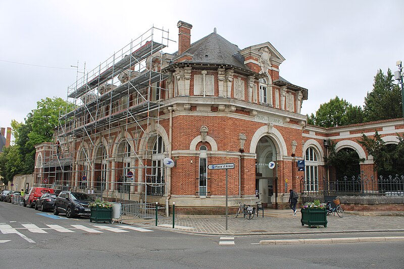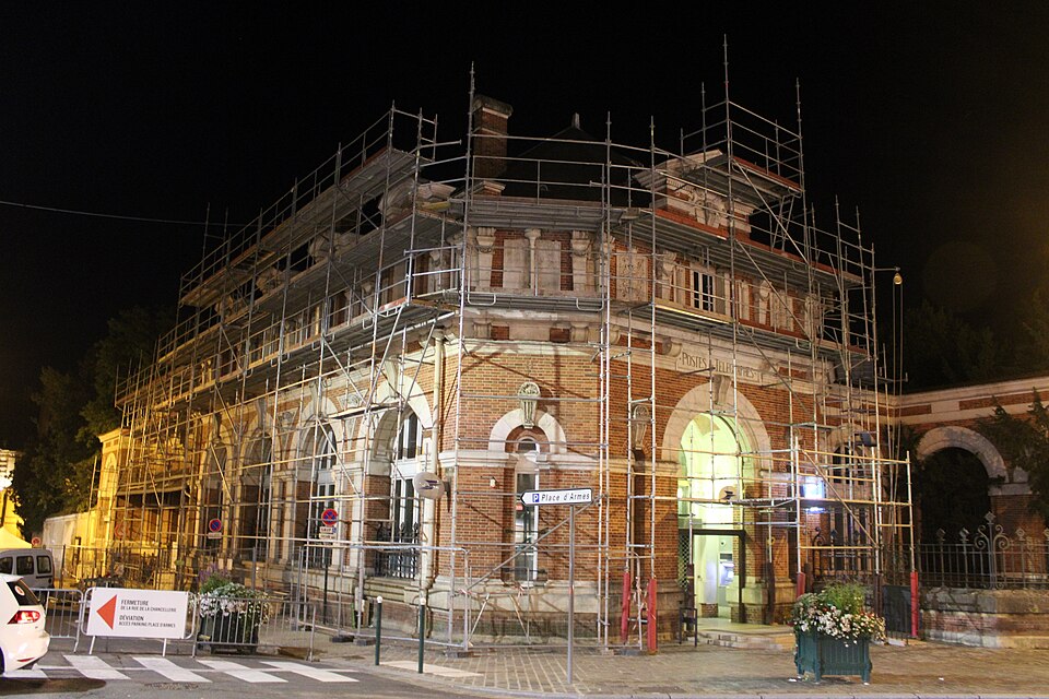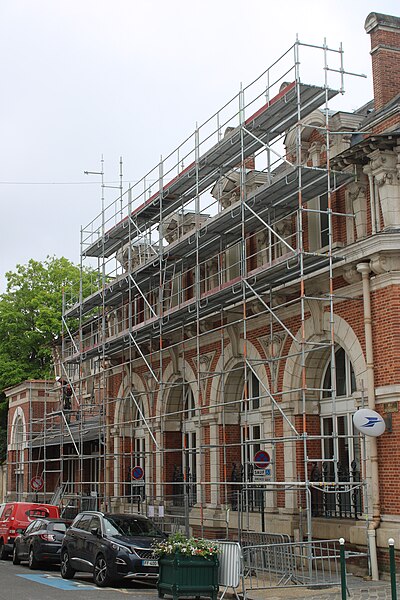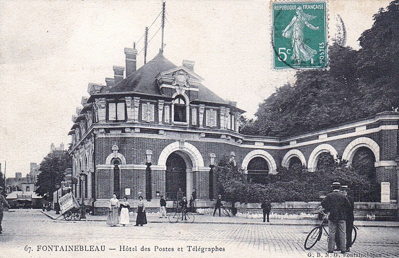 L'hôtel des Postes de Fontainebleau, anciennement désigné hôtel des Postes et Télégraphes, est un bâtiment de la fin du XIXe siècle qui abrite le bureau de poste principal de la ville. Il se trouve au croisement de la rue Denecourt et de la rue de la Chancellerie, dans le quartier du Centre, et un repère de nivellement près de la porte d'entrée indique une altitude de 78,305 mètres. Le projet de construction fut lancé à la suite d'échanges entre les autorités nationales et municipales, avec un décret signé par le président de la République et la remise prochaine du terrain annoncée par l'administration des Postes et Télégraphes. Une convention du 22 février 1893 confia à la ville la réalisation de l'édifice sur une parcelle du jardin de Diane, à l'angle de la place Dennecourt et de la Chancellerie, selon des plans et devis approuvés. L'architecte Jean Boussard fut chargé des plans et de la direction des travaux, le montant du devis fut fixé à 169 459 francs 31, et l'administration des Postes s'engagea à rembourser la dépense en quarante annuités ; la convention prévoyait également l'achèvement des travaux au 1er janvier 1894 au plus tard et le transfert de propriété à l'État à compter de la réception. Les travaux commencèrent le 28 août 1893 et le terrain, anciennement partie du jardin de Diane, fut dégagé fin août par l'abattage des arbres ; la terrasse et les fondations furent rapidement établies. À l'automne 1893, le mur de clôture était avancé et la façade entamée, mais la cérémonie posant la première pierre ne fut pas organisée par le conseil municipal, qui réserva les célébrations pour l'inauguration. À la fin du printemps 1894 la couverture était presque achevée, la sculpture en cours et trois poteaux en fer destinés aux fils téléphoniques et télégraphiques avaient été installés sur le toit. Les boîtes aux lettres furent ouvertes en novembre 1894 et l'édifice fut remis à l'État le 29 novembre en présence d'élus locaux, de responsables des Postes et Télégraphes et de l'architecte Jean Boussard. Contrairement à d'autres bâtiments similaires dotés de tourelles, l'hôtel de Fontainebleau s'équipa uniquement de trois poteaux en fer pour les lignes télégraphiques et téléphoniques, qui ont par la suite été retirés. La question d'une horloge extérieure fut soulevée à plusieurs reprises par l'hebdomadaire local L'Abeille de Fontainebleau, qui proposa de placer un cadran dans le tympan d'une lucarne ; malgré les relances répétées jusqu'aux années suivantes, aucune horloge n'a été installée. En 1910, la presse locale relaie diverses critiques et suggestions du public concernant l'état et l'équipement du bureau : revêtement usé dans la salle d'attente, murs noircis par la fumée et la poussière, éclairage insuffisant le soir et par endroits dans la journée, mauvaise isolation et chauffage, courants d'air, installation inadéquate des cabines téléphoniques et absence de confidentialité dans le bureau du receveur. Une importante extension vers l'arrière de l'édifice fut réalisée en 1925 sous la direction de l'architecte Albert-Louis Bray. À partir du 19 avril 2017, le bureau ferma pour des travaux de modernisation d'environ sept mois, avec un investissement annoncé de 1 070 000 euros pour adapter le lieu au nouveau modèle d'accueil du réseau La Poste ; il rouvrit le 16 novembre 2017 avec un intérieur plus ouvert et lumineux et une salle d'attente dédiée pour La Banque postale, l'entreprise ayant indiqué un investissement de 857 000 euros pour la modernisation de l'accueil. Pendant ces travaux, certains services furent transférés au bureau d'Avon et à la poste des Maréchaux ; cette dernière, transformée en relais après une faible fréquentation, devint en 2020 la galerie d'art urbain Fontaineblow. En 2020 furent programmés l'aménagement de six logements et la réfection de la toiture, travaux qui commencèrent en 2021. Le bâtiment est essentiellement construit en briques et pierres. En avril 2020, l'artiste Thierry Hellouin de Ménibus a représenté la Poste dans un pastel montrant une file d'attente depuis le trottoir d'en face, probablement liée aux mesures de distanciation durant la pandémie de Covid-19.