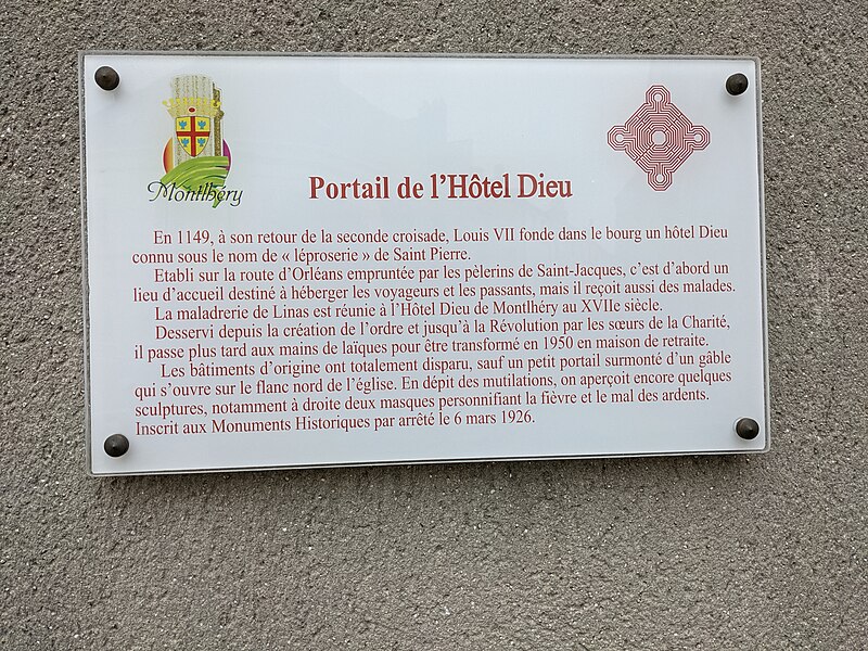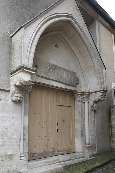 L'Hôtel‑Dieu a été fondé par Louis VII en 1149 sous le nom de léproserie Saint‑Pierre, le long de la route d'Orléans empruntée par les pèlerins de Saint‑Jacques. De cette époque ne subsiste que le porche, dont la partie supérieure a été restaurée au XIXe siècle. L'établissement fut desservi jusqu'à la Révolution par les sœurs de la Charité, puis, à partir de 1867, par les religieuses du Sacré‑Cœur de Saint‑Aubin. En 1950, il a été promu hospice départemental civil.