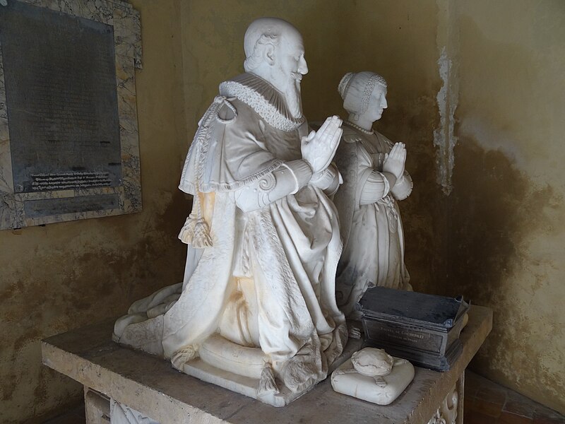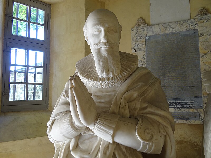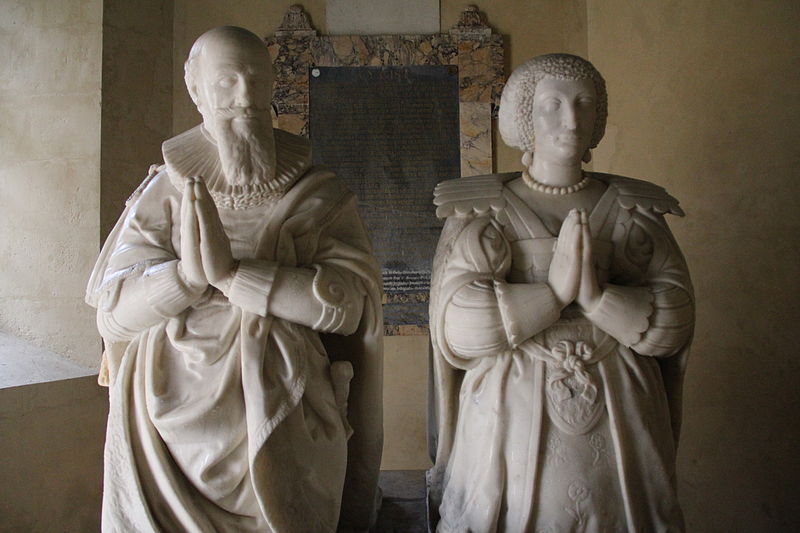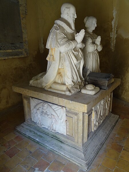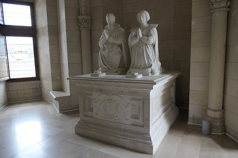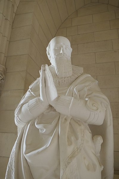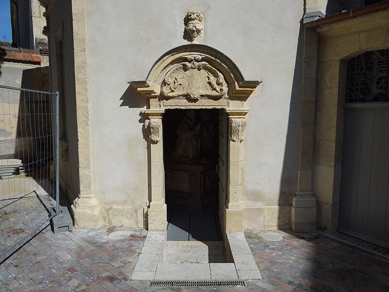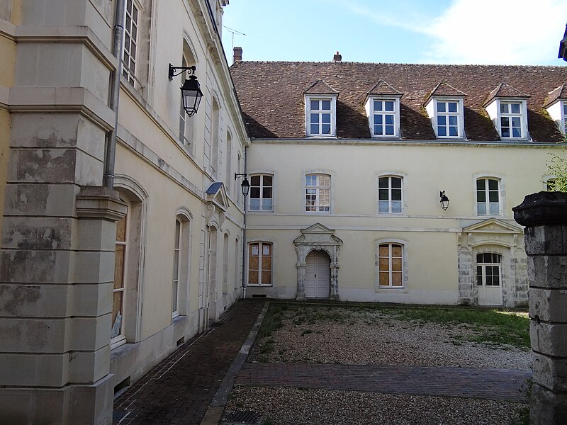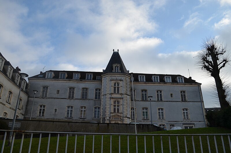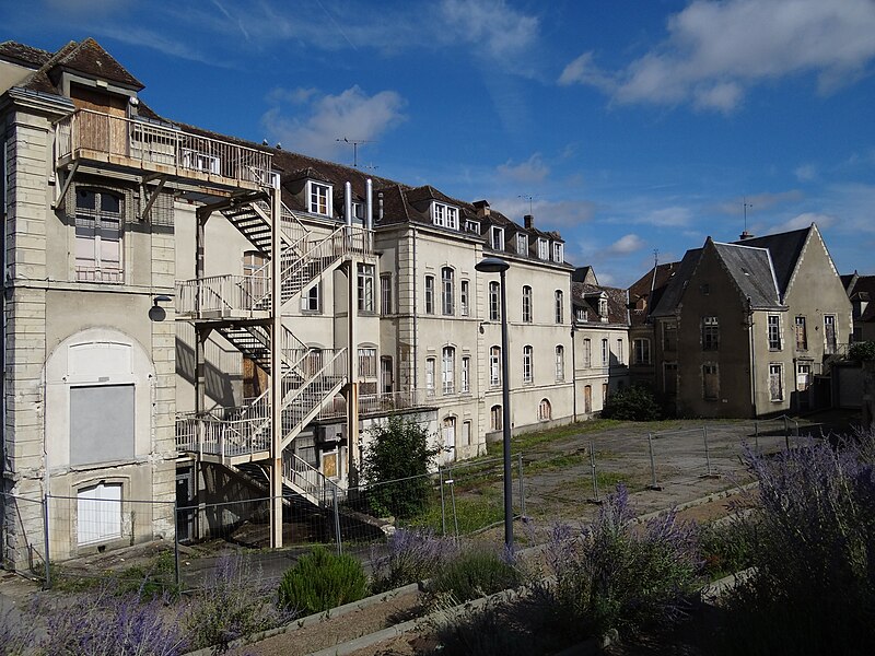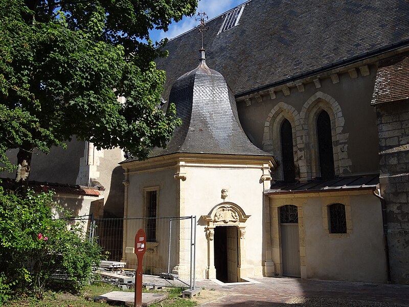 L'hôtel-Dieu fut fondé en 1182 à Nogent-le-Rotrou, lieu de passage sur le chemin de Compostelle. Au XVIIe siècle, il se composait d'une agglomération de petites maisons indépendantes disposées autour de la chapelle. En 1641, Sully choisit d'y être inhumé en dehors de l'église en raison de sa confession réformée. Sa veuve, Rachel de Cochefilet, fit élever un mausolée couvert d'ardoise et orné d'une branche de lys ; il abrite le tombeau et les priants sculptés par Baudin. En 1643 fut commandée la construction du portail donnant accès au tombeau. Entre 1728 et 1732, la salle des hommes fut construite à l'emplacement de la maison des Voûtes, puis, à partir de 1772, la salle des femmes fut élevée en continuité ; c'est dans ce bâtiment principal que fut aménagé l'oratoire particulier de l'hôtel-Dieu. Le bâtiment B, sur cour, accueillait la pharmacie et le dortoir des sœurs de Saint-Vincent-de-Paul, qui dirigeaient l'établissement depuis 1672 ; ce bâtiment fut modifié et agrandi en 1861. En 1818 fut créé un hospice pour vieillards, dit "hôpital des Bonshommes" (emplacement du bâtiment C), entièrement reconstruit en 1861. Les travaux se poursuivirent jusqu'en 1866 sous la direction de l'architecte Lebart : on rehaussa le corps principal d'un étage et l'on édifia un avant-corps à l'est pour des salles de bain alimentées en eau courante. En 1868, une tourelle d'escalier fut élevée sur la façade ouest. Un hôpital militaire fut créé en 1878, en partie dans l'aile D et dans l'aile sur rue, et l'établissement s'agrandit encore en 1933 par la création de la maternité. L'édicule fut endommagé pendant la Révolution et restauré en 1897, en même temps que l'ensemble du portail.