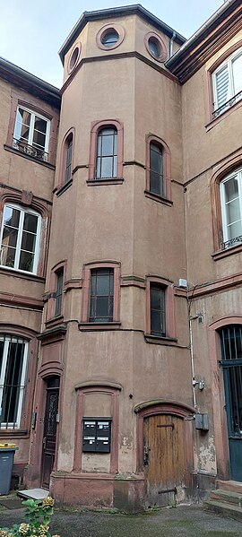 Façades et toitures des quatre ailes en totalité, à l'exclusion des adjonctions plus récentes dans la cour (tourelle d'escalier polygonale, construction dans l'angle Sud-Est) ; escalier à balustres en bois dans l'aile entre cour et jardin (cad. 3/AD 7) : inscription par arrêté du 30 décembre 1985