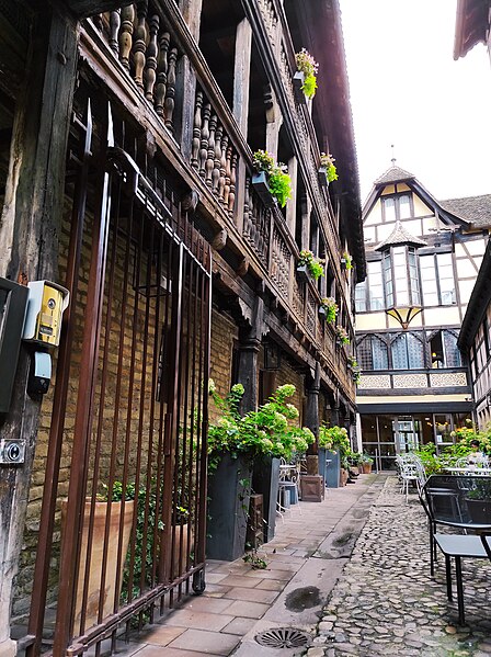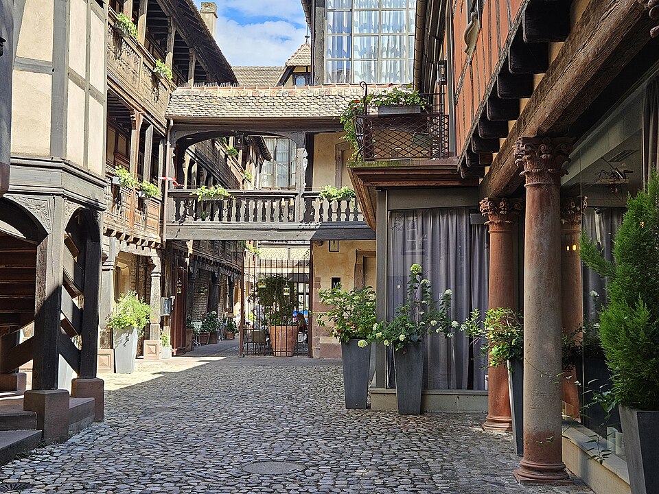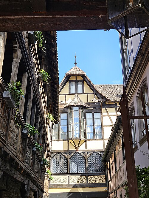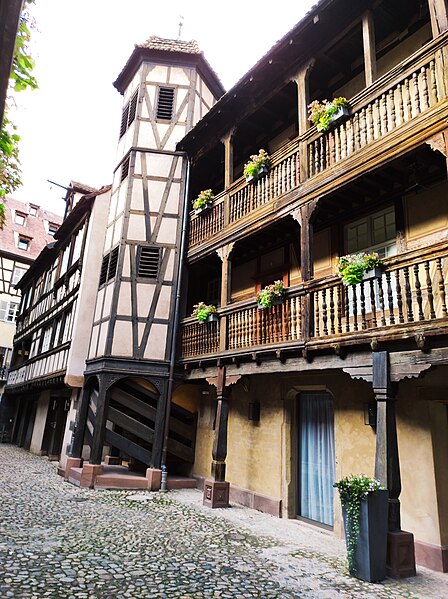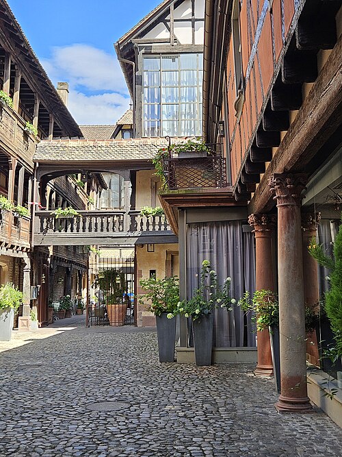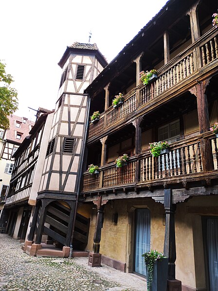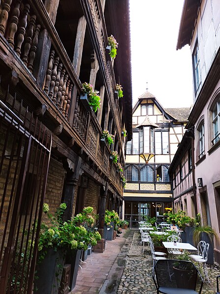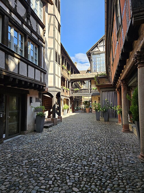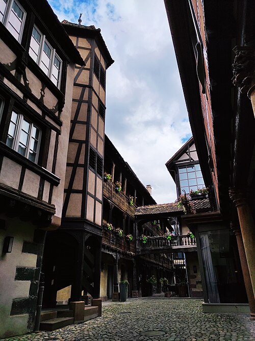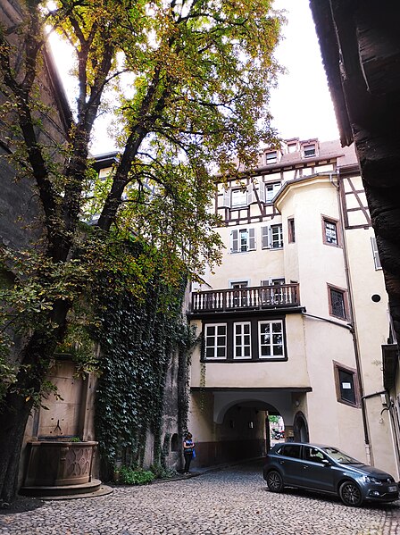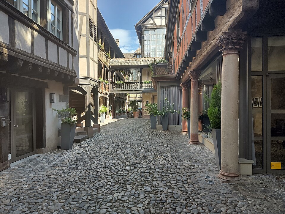 L’hôtel particulier dit Cour du Corbeau est un monument historique situé à Strasbourg, dans le Bas-Rhin, au 1 quai des Bateliers, à proximité de la place du Corbeau et de la cathédrale. L’ensemble, profondément intégré au tissu urbain de la vieille ville, a abrité une hostellerie déjà mentionnée en 1306 et connue sous le nom alémanique « Zum Rabe » depuis 1528. Plusieurs voyageurs et personnages de marque y ont séjourné, parmi lesquels figurent des souverains et militaires tels que le duc de Bavière (1570), le prince Auguste de Saxe-Lauenbourg (1622), le duc Charles IV de Lorraine (1631), le général suédois Gustaf Horn (1632), le chancelier suédois Axel Oxenstierna (1635), Henri de La Tour d'Auvergne, vicomte de Turenne (1647), Antoine III de Gramont (1657), le duc de Chevreuse accompagné du voyageur Balthasar de Monconys (1664), Jean II Casimir Vasa, roi de Pologne (1669), Frédéric II de Prusse sous le nom de comte Dufour (1740), ainsi que l’empereur d’Autriche qui fit halte deux jours en 1776, voyageant sous le nom de comte de Falkenstein et accompagné du prince-archevêque Colloredo et du comte de Cobenzl. Un incendie est signalé à l’hôtel en 1668. Aux XVIIIe et XIXe siècles, la Cour du Corbeau, toujours en activité comme auberge, accueillait également la Poste aux chevaux, les lieux étant déjà adaptés à l’accueil des véhicules et des chevaux avec des communs occupés par postillons et palefreniers. Au milieu du XIXe siècle l’hostellerie ferme ses portes (1854) et les ateliers de vitraux de la maison Ott s’y installent dès 1852 ; cette maison deviendra la plus importante d’Alsace et demeure sur place jusqu’en 1982, avec une apogée de la fin du XIXe siècle jusqu’à l’entre-deux-guerres. De nombreux aménagements et reconstructions ont été réalisés pour les activités de verrerie, tandis qu’une partie des bâtiments était louée à des artisans et servait de logements et dépendances ; un atelier de passementerie s’y installe en 1871 et y reste jusqu’en 1990. En 1950, l’ensemble est acquis par le docteur Schuh qui y installe des laboratoires médicaux proches de l’entrée, la maison Ott devenant locataire des bâtiments situés au fond de la cour ; en 1981 l’atelier de vitrail quitte la Cour du Corbeau et la ville de Strasbourg achète l’ensemble, à l’exception des bâtiments d’entrée qui demeurent des laboratoires. La Cour du Corbeau se compose d’une suite de bâtiments bordant, de part et d’autre, une succession de cours étroites s’étendant sur cent dix mètres de longueur pour une largeur moyenne de seize mètres, avec un seul accès sur la place du Corbeau au bord de l’Ill. Les constructions, hétérogènes quant à l’architecture, au style et à l’époque de construction, forment cependant une unité par leur mode d’implantation et offrent un ensemble au pittoresque marqué, très visité par les touristes. L’intérêt historique et archéologique pour le site s’est affirmé au début du XXe siècle ; des sondages de 1999 ont mis au jour des vestiges des XVe et XVIe siècles et la dendrochronologie a daté au milieu du XVIIIe siècle la construction d’un bâtiment comportant des galeries intérieures. Les plans-reliefs de Strasbourg de 1725 et 1836 montrent une disposition générale semblable, excepté une dernière cour plus vaste autrefois, avec des écuries, qui fut réduite à la fin du siècle dernier lors du percement de la rue Klein. À partir du milieu du XIXe siècle, la quasi-totalité des bâtiments a été modifiée pour de nouvelles affectations, notamment par la maison Ott : création d’appentis pour remises et ateliers (forge, four, sablage), surélévations et grandes verrières orientées au nord pour l’atelier de montage et de peinture des vitraux, ainsi que reprises en sous-œuvre et remaniements de maçonnerie pour l’implantation d’un métier volumineux pour le passementier. Les travaux de restauration des façades et des toitures se sont appuyés sur les dispositions relevées dans les plans-reliefs de 1725 et 1836. L’approche de « conservation intégrée » recommandée par le Comité du patrimoine culturel du Conseil de l’Europe a été mise en œuvre ici, visant une réutilisation respectueuse de l’histoire du monument et l’insertion de la dimension patrimoniale dans la vie économique, aboutissant à la réouverture sous la forme d’un hôtel 4 étoiles et d’un restaurant gastronomique. L’ensemble des façades et toitures de la Cour du Corbeau est classé au titre des monuments historiques depuis 1930 et le puits de la cour est classé depuis 1933. La bibliographie comprend notamment le Dictionnaire des monuments historiques d’Alsace de Dominique Toursel-Harster, Jean-Pierre Beck et Guy Bronner, un article de Maxime Werlé sur la Cour du Corbeau à l’époque de la guerre de Trente Ans, ainsi qu’un suivi photographique du chantier de rénovation réalisé par Nathalie Savey entre 2007 et 2009.