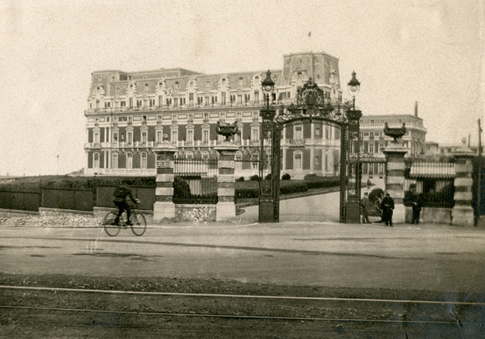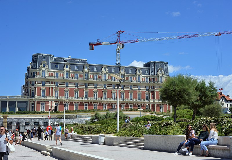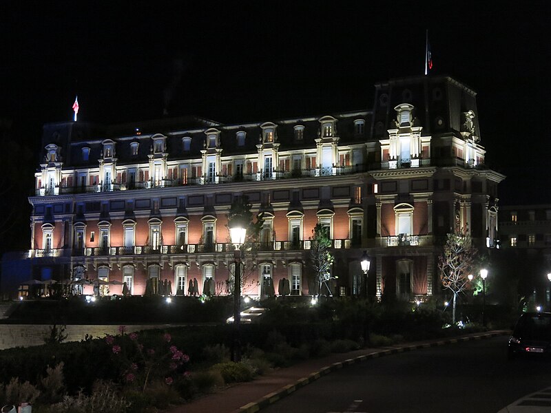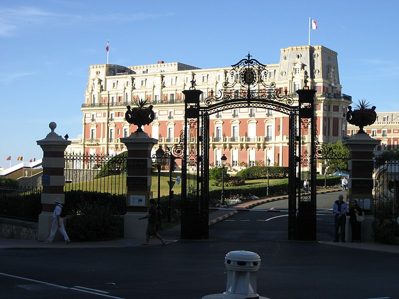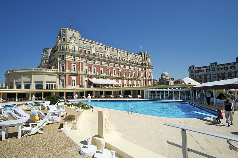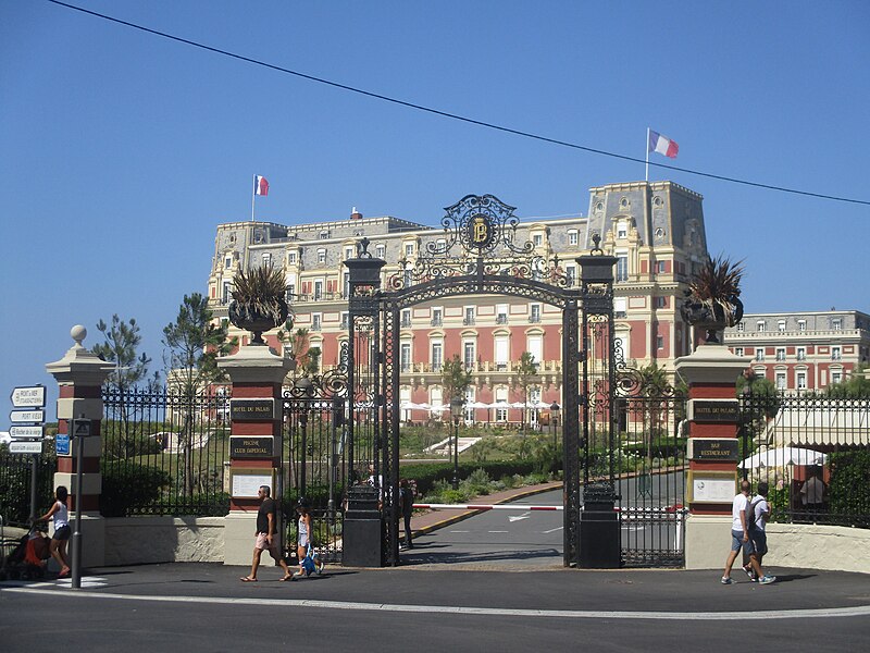 L'Hôtel du Palais, situé à Biarritz (Pyrénées‑Atlantiques, Nouvelle‑Aquitaine), est un établissement de luxe dont les façades et toitures sont inscrites au titre des monuments historiques par arrêté du 24 décembre 1993. Il occupe l'emplacement de la Villa Eugénie, résidence estivale commandée par l'empereur et l'impératrice Eugénie et construite à partir de 1854 sur un domaine de dunes aménagé en parc, bois, prairies, potager, étang et dépendances. Les travaux de la villa commencèrent en 1854 sous la direction de Louis‑Auguste Couvrechef et de l'inspecteur Bertrand; après le décès de Couvrechef en 1857, Gabriel‑Auguste Ancelet puis Oscar Tisnès prirent le relais. La villa présentait un long corps principal et trois ailes perpendiculaires formant une cour d'honneur; elle fut rehaussée d'un étage et transformée en 1867. Après la mort de l'empereur, l'impératrice Eugénie vendit le domaine à la Banque de l'Union Parisienne et la villa fut transformée en hôtel‑casino puis en hôtel, prenant le nom d'Hôtel du Palais en 1893. Un incendie ravagea l'édifice en février 1903; Édouard‑Jean Niermans le releva en conservant les murs extérieurs et en reconstruisant l'ensemble selon un programme prévoyant trois cents chambres, appartements, salons et une salle de restaurant. La reconstruction, réalisée de 1903 à 1905, utilisa le béton armé et un chaînage entre parties anciennes et nouvelles, sur lequel furent plaqués des décors en brique, pierre et ardoise, donnant aux façades un style néo‑Louis XIII inspiré de la villa d'origine. Le plan général adopta la forme d'un E en référence au prénom de l'impératrice, mais la villa impériale d'origine n'est presque plus conservée, la chapelle voisine constituant l'unique vestige complet. À l'intérieur, la rotonde du restaurant et ses peintures murales sur le thème de Jason et la Toison d'or, réalisées par Paul Gervais, furent conçues lors de la reconstruction par Niermans. L'hôtel devint un lieu de prestige accueillant têtes couronnées et personnalités, et il fut agrandi et modernisé au fil du XXe siècle, notamment par l'ajout en 1957 d'une piscine dite « californienne » remplie d'eau de mer. Divers films y ont été tournés, parmi lesquels La Banquière (1980), Mes nuits sont plus belles que vos jours (1988) et Hors de prix (2006). Classé cinq étoiles en 2011, l'établissement a reçu la distinction française de « palace » en mai 2011, renouvelée en 2016; en 2024 il a obtenu deux Clefs du Guide Michelin dans la catégorie « séjour exceptionnel ». D'importants travaux de rénovation et de modernisation ont été engagés ces dernières années : des négociations avec le groupe Four Seasons ont été rompues en 2017, puis des travaux estimés à près de 70 millions d'euros ont eu lieu entre octobre 2018 et juin 2019 pendant une fermeture de l'établissement. L'hôtel a rouvert après restauration le 26 mars 2021; la ville de Biarritz reste propriétaire majoritaire (57 %), aux côtés du groupe JCDecaux (37 %) et de la Caisse des dépôts (2,74 %), la gestion étant confiée au groupe Hyatt. Des travaux complémentaires se sont déroulés entre novembre 2021 et juin 2022, et l'établissement a finalement rouvert le 3 juin 2022. Depuis la rénovation, l'hôtel dispose de 86 chambres et 56 suites, dont les suites Édouard VII (152 m²) et Alphonse XIII (177 m²) avec vue sur l'océan Atlantique, deux restaurants — la Villa Eugénie et l'Hippocampe — deux bars et un spa impérial en partenariat avec Guerlain. Le spa comprend un espace fitness, une piscine d'eau de mer, sauna, cabines de soin et un institut du cheveu; le domaine comprend également des installations de golf. La gestion de l'hôtel est assurée par une société communale mixte, la Socomix, créée en 1962 pour exploiter l'établissement sous un bail emphytéotique de 75 ans, dont le président est le maire de Biarritz. En mars 2017 le chiffre d'affaires annuel s'élevait à 21 586 300 €, le résultat net à 821 300 € et l'effectif à 183 personnes. L'histoire et l'architecture de l'Hôtel du Palais sont documentées dans plusieurs ouvrages et ressources, notamment l'étude de Marie‑France Lecat et Jean‑Michel Leniaud consacrée à Eugénie et à la villa impériale.