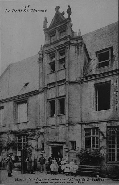 L'hôtel du Petit-Saint-Vincent, maison de ville des moines de l'abbaye bénédictine de Saint-Vincent, se situe au 1 rue Saint‑Martin à Laon, avec une cour à l'arrière. Les moines acquièrent des maisons au début de la rue en 1527, qui sont démolies pour laisser place à l'édifice construit de 1529 à 1534 ; la charpente de l'aile sur cour date de 1531-1532 et la chapelle est achevée en 1537. Conçu comme maison de refuge urbaine pour l'abbaye, il conserve sur rue deux tourelles encadrant deux niveaux et trois fenêtres à meneau ; une arcade surbaissée marque une porte décalée. Sur la cour se dresse une tour octogonale abritant un escalier en colimaçon et une porte sculptée. Le bâtiment en retour d'angle, d'une grande élégance, comporte deux étages et une avancée centrale sur quatre niveaux surmontée d'un pignon triangulaire décoré de deux statues : un homme tenant une coupe et une cruche, et une femme tenant une épée et une tête humaine. Les baies, modifiées aux XVIIIe et XIXe siècles, ont retrouvé meneaux et croisillons lors de la restauration du troisième quart du XXe siècle. À la fin du XVIIIe siècle l'hôtel est loué comme pensionnat, notamment par Blondelas, puis il sert d'auberge jusqu'au milieu du XXe siècle ; il est aujourd'hui occupé par l'agence des Monuments historiques et abrite le siège de l'office de tourisme de l'Aisne. Pendant les guerres de Religion, l'hôtel fut un centre des ligueurs, l'abbé y portant la cuirasse aux côtés du capitaine Farsin. Sous la Révolution il accueille des réunions célèbres avant d'être acquis par le citoyen Quesnel, à une époque où la rue s'appelait Rue de la Réunion. Le corps principal du bâtiment a été classé au titre des monuments historiques en 1964.