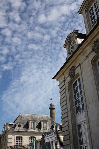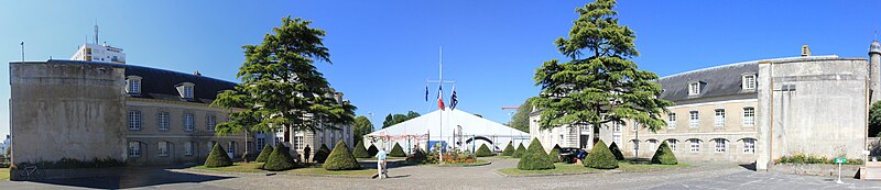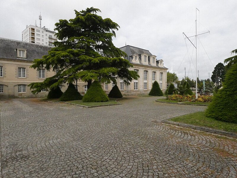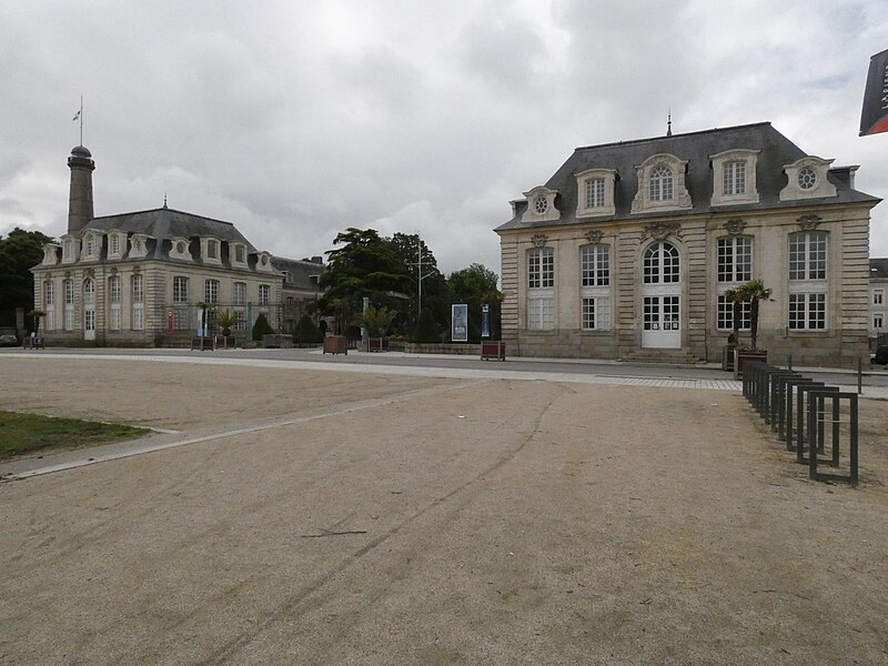 La préfecture maritime occupe l'hôtel Gabriel, ensemble du XVIIIe siècle élevé pour la Compagnie perpétuelle des Indes et conçu par Jacques Gabriel. Deux pavillons symétriques encadrent une grille ouvrant sur une cour d'honneur ; ils présentent une ordonnance architecturale Louis XV et communiquent avec un jardin par une clôture en pierre et une galerie ajourée reliant les bureaux. Chaque pavillon comporte cinq grandes ouvertures cintrées sur les façades principales, couronnées de clés en forme de mascarons, et quatre sur les façades latérales. Le cabinet de travail de l'amiral préfet maritime conserve des boiseries. La construction répondait au transfert des ventes de la Compagnie des Indes de Nantes à Lorient et au besoin d'installations pour accueillir les acheteurs. Jacques Gabriel, assisté de Louis de Saint-Pierre, élabora plusieurs projets à partir de 1732 ; après des réductions, les deux pavillons furent finalement édifiés entre 1740 et 1742 et les ventes s'y tinrent dès la fin des travaux. L'hôtel servit aux activités de la Compagnie jusqu'à la disparition de celle-ci en 1769, date à laquelle il cessa d'être utilisé pour les ventes. La Marine royale récupéra les pavillons en 1770 et y installa son état-major ; ils accueillirent notamment le conseil de guerre de 1783–1784 et des ventes eurent lieu en 1790. En 1808 la préfecture maritime y établit son siège ; l'aile est abrita les appartements et salles de réception du préfet tandis que l'aile ouest accueillait l'état-major et les services. Pendant la Seconde Guerre mondiale, les Allemands occupèrent le site, y aménagèrent des ouvrages en sous-sol et l'édifice fut incendié lors des bombardements de 1943. Le bâtiment fut restauré à l'identique entre 1956 et 1959, avec des aménagements intérieurs adaptés pour la Marine nationale, qui y installa son État-Major et ses directions de 1959 à 2000. La ville de Lorient acquit l'hôtel en 2000 ; depuis 2008 il abrite le service de l'animation de l'architecture et du patrimoine, les archives municipales s'y installant en 2010 au premier étage de l'aile ouest, tandis que le rez-de-chaussée accueille salles d'accueil, documentation, ateliers et expositions, rejoints en 2014 par la galerie « Le Lieu ». Le site reçoit également des manifestations ponctuelles telles que le Festival interceltique de Lorient et le championnat national des bagadoù. L'ensemble est protégé au titre des monuments historiques depuis le 22 septembre 1930 ; le classement concerne les toitures et façades des deux pavillons encadrant la grille d'entrée ainsi que la salle du Conseil. L'entrée est marquée par une grille en fer entre les pavillons, flanquée de deux canons, l'un fondu à Douai en 1751 et l'autre pris à San Juan de Ulúa en 1838. Au sud s'étend un jardin à la française de deux hectares, articulé autour d'un axe nord-sud et d'une pièce d'eau circulaire, bordé d'allées et d'alignements d'arbres et limité au sud par une terrasse surélevée. Les bâtiments, en pierre de taille — granit en rez-de-chaussée et calcaire à l'étage — comprennent les deux pavillons prolongés vers le sud par deux ailes latérales ; à l'origine un corps de logis central prévu entre les pavillons ne fut pas réalisé. Les façades nord présentent une composition rythmée par cinq baies alignées sur trois hauteurs et ornées de motifs végétaux ; les façades intérieures côté cour et jardin reprennent ces hauteurs de baie mais de façon plus sobre. Deux mascarons figurant des divinités ornent les accès centraux : Athéna, sur le pavillon ouest, est représentée avec des attributs guerriers et navals, et Hermès, sur le pavillon est, porte le pétase ailé et les caducées.