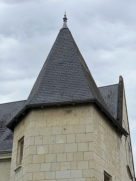 L'hôtel, situé 28 rue Hoche à Chinon (Indre-et-Loire), se trouve près de l'angle avec la rue Jean-Jacques-Rousseau, dans le quartier canonial lié à Saint-Mexme. Ses façades principales, orientées vers l'est et le sud, donnent respectivement sur la rue et sur la cour. La plus grande partie de l'édifice daterait de la fin du XVe siècle et surtout du XVIe siècle ; à cette époque l'hôtel se présentait comme un bâtiment élevé d'un étage sur rez-de-chaussée avec combles, doté d'une tourelle en encorbellement à l'angle sud-est et d'une tour carrée à l'est. Au XVIIe siècle, la construction d'un pavillon a prolongé l'hôtel vers l'ouest, tandis que la façade orientale semble avoir été remaniée au XIXe siècle. Les façades sud et est ainsi que leurs toitures ont été inscrites au titre des monuments historiques par décret du 27 octobre 1967. L'édifice est composé de plusieurs corps de bâtiments reliés entre eux par des tourelles d'escalier. Le corps de logis donnant sur la rue Hoche, en pierre de taille, présente un étage sur rez-de-chaussée et une échauguette en encorbellement à son angle sud-est ; la toiture est en ardoise. Le décor se distingue par des éléments de la fin du XVe siècle sur le corps de logis donnant sur la rue Jean-Jacques-Rousseau, un décor de première Renaissance sur le logis de la rue Hoche et une grille de balcon en fer forgé du XVIIIe siècle. Le corps de logis de l'échauguette paraît avoir été remanié au XIXe siècle.