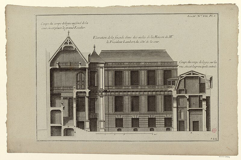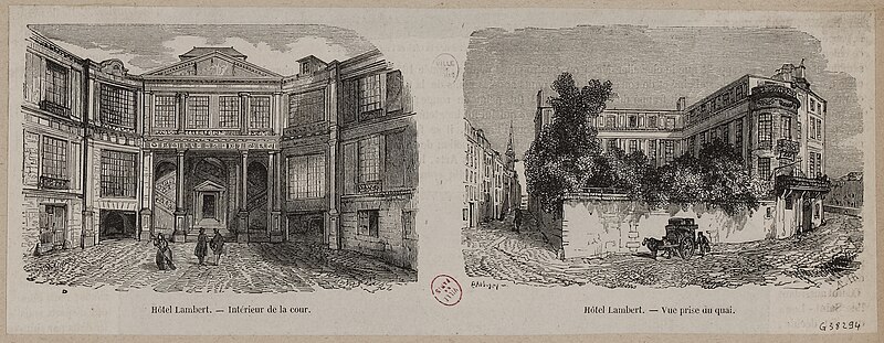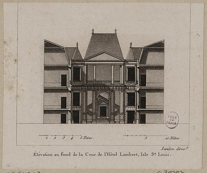 L'hôtel Lambert, situé au 2 rue Saint-Louis-en-l'Île, dans l'île Saint-Louis du 4e arrondissement de Paris, a été construit par Louis Le Vau entre 1642 et 1644 pour Jean-Baptiste Lambert, conseiller et secrétaire du roi. Le décor intérieur a été confié à Charles Le Brun et à Eustache Le Sueur : Le Brun y réalise notamment la galerie d'Hercule, et Le Sueur les cabinets de l'Amour, des Muses et des Bains. L'édifice figure parmi les derniers hôtels privés à conserver une galerie peinte. À la mort de Jean-Baptiste Lambert, la demeure revient à son frère Nicolas Lambert de Thorigny, président à la Chambre des comptes, qui y rassemble une importante fortune et y fait compléter les décors par plusieurs artistes, dont Gianfrancesco Romanelli, Herman Swanevelt et Jan Asselyn. Des œuvres dispersées ou sorties de l'hôtel figurent aujourd'hui au musée du Louvre, parmi lesquelles des panneaux de Le Sueur et des paysages dont un tableau de Pierre Patel.