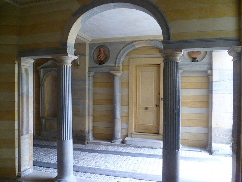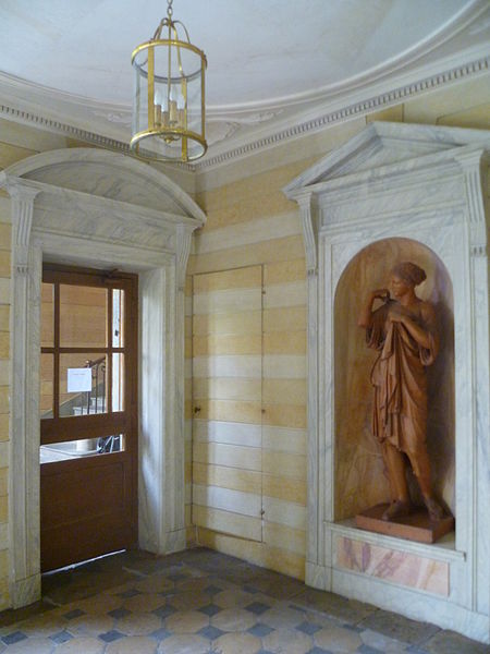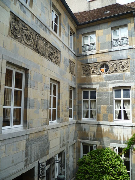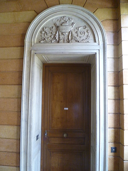Les dessus-de-porte du rez-de-chaussée, sculptés en stuc par J.-M. Marca, présentent de puissantes guirlandes de fruits et légumes parmi lesquelles apparaît un tubercule de pomme de terre, motif inspiré par l'actualité scientifique et locale de l'époque. Ceux du bel étage sont cintrés et sculptés en bois, ornés de trépieds delphiques et de rinceaux d'acanthe qui font écho aux panneaux en stuc de la cour d'honneur. Les intérieurs sont presque entièrement restés intacts ; seules de petites transformations sont à signaler, comme la création à la fin des années 1970 d'un escalier intérieur reliant le premier et le second étage sur la rue, et l'ouverture de l'alcôve de l'ancienne chambre de Madame de Lavernette vers le dégagement et l'ancien boudoir. Les boiseries du grand salon et de la chambre de Monsieur au second étage sont documentées par les dessins de l'architecte, et les décorations peuvent être aisément attribuées grâce aux factures conservées.