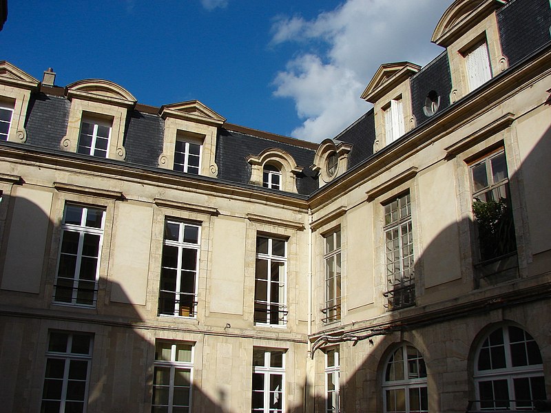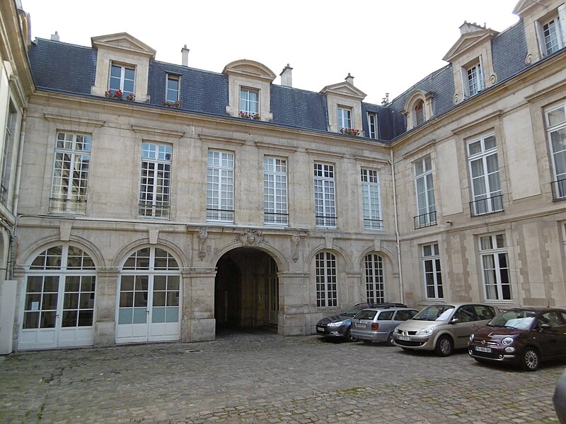 L’hôtel Le Rebours est un hôtel particulier situé au 12, rue Saint-Merri, dans le 4e arrondissement de Paris ; il est bordé à l’ouest par la rue Pierre‑au‑Lard et à l’est par le passage privé du cul‑de‑sac du Bœuf. L’architecte Claude Monnard fit construire l’édifice en 1624 pour Jean Aubery, maître des requêtes. Thierry Le Rebours acquit la maison en 1672 et fit transformer la façade et l’escalier en 1695. L’hôtel est inscrit au titre des monuments historiques depuis le 31 juillet 1990. Il est accessible gratuitement au public du lundi au samedi de 8 h à 20 h et le dimanche de 8 h à 14 h. Autour d’une vaste cour s’alignent quatre façades sobres de style Louis XV, conçues dans une symétrie rigoureuse. Chacune comporte un rez‑de‑chaussée, un premier étage éclairé par cinq hautes fenêtres, et un second étage mansardé posé sur une corniche moulurée et puissante. Les cinq mansardes présentent des formes différentes : celle du centre porte un fronton circulaire, celles qui l’entourent un fronton triangulaire, et les deux extrêmes sont percées d’auxiliaires œils‑de‑boeuf arrondis. L’entrée du porche côté cour est surmontée d’un mascaron de femme, probablement ajouté lors des remaniements de la façade sur rue. Cette façade sur rue, remaniée à la fin du XVIIe siècle ou au début du XVIIIe siècle par l’architecte Victor‑Thierry Dailly, est plus ornée et se compose de trois niveaux comportant chacun onze fenêtres. Les fenêtres du premier étage sont très élevées et dotées de beaux appuis en fer forgé, tandis que celles du second sont moins hautes et pourvues d’un simple appui de bois. Le centre de la façade forme un avant‑corps en légère saillie dont la porte cochère en boiserie simple est surmontée d’une clef sculptée représentant une tête de faune barbu entourée d’ornements et de fleurs, et couronnée, sous le toit, par un œil‑de‑boeuf circulaire dans un fronton triangulaire mouluré. Le passage menant à la cour abrite le vestibule et l’escalier d’honneur dont la rampe en fer forgé, au dessin riche, est conservée intacte jusqu’au second étage. Au premier étage, le grand salon de l’aile occidentale a gardé un plafond à poutrelles apparentes peintes de guirlandes, de rinceaux, de chiffres et d’armoiries.