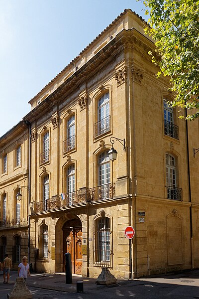 L'ancien hôtel Maynier d'Oppède, dit aussi hôtel Thomassin de Saint-Paul, est un hôtel particulier situé à Aix-en-Provence. Depuis 1490, il appartenait à la famille provençale des Maynier d'Oppède, qui a fourni, de 1507 à 1671, quatre des vingt-deux premiers Présidents, dont Jean de Maynier. En 1730, la famille Thomassin de Saint-Paul, également issue des parlementaires, acheta l'hôtel et le rebâtit quasi intégralement. De 1846 à 1950, il servit d'annexe à l'Université d'Aix en accueillant la faculté des Lettres; il abrite aujourd'hui divers instituts de recherche et d'études. Depuis 1982, le monument fait l'objet de mesures de protection au titre des monuments historiques, sous la forme d'inscriptions et de classements partiels ainsi que d'une protection totale. La façade visible, aux proportions harmonieuses, relève du classicisme provençal et date des années 1740-1760. Les fenêtres comportent des mascarons : des visages humains au rez-de-chaussée et des motifs en « relief de colonne » aux premier et second étages. À partir du premier étage s'élèvent quatre pilastres à refends qui délimitent les ouvertures jusqu'au troisième étage, étage destiné aux domestiques aux XVIIe et XVIIIe siècles. Les chapiteaux de ces pilastres sont qualifiés de « composites », car ils ne reproduisent pas fidèlement le style d'une époque antique particulière. La porte cochère, en anse de panier, est taillée dans la pierre de Bibémus et présente un arrondi plus doux que celui de la plupart des bâtiments voisins. Les boiseries de la porte sont remarquables et ornées de décors de feuillage d'acanthe et de coquilles asymétriques, typiques de l'époque Louis XV. Pour compléter, on peut consulter la liste des monuments historiques d'Aix-en-Provence, la liste des hôtels particuliers d'Aix-en-Provence et des ressources en ligne telles que Mérimée, Kunstenpunt, le Portail de l'architecture et de l'urbanisme, le Portail d'Aix-en-Provence et le Portail des monuments historiques français.